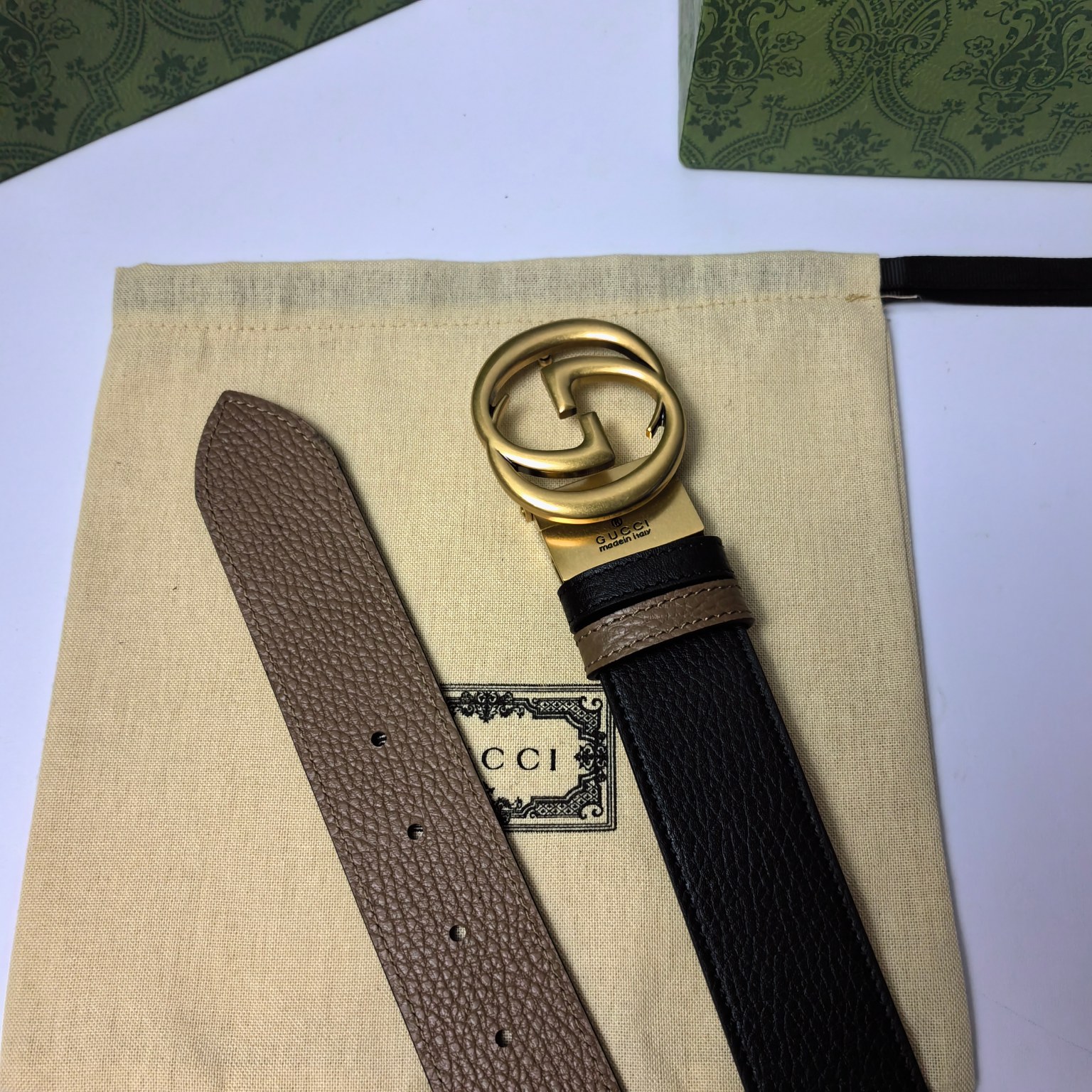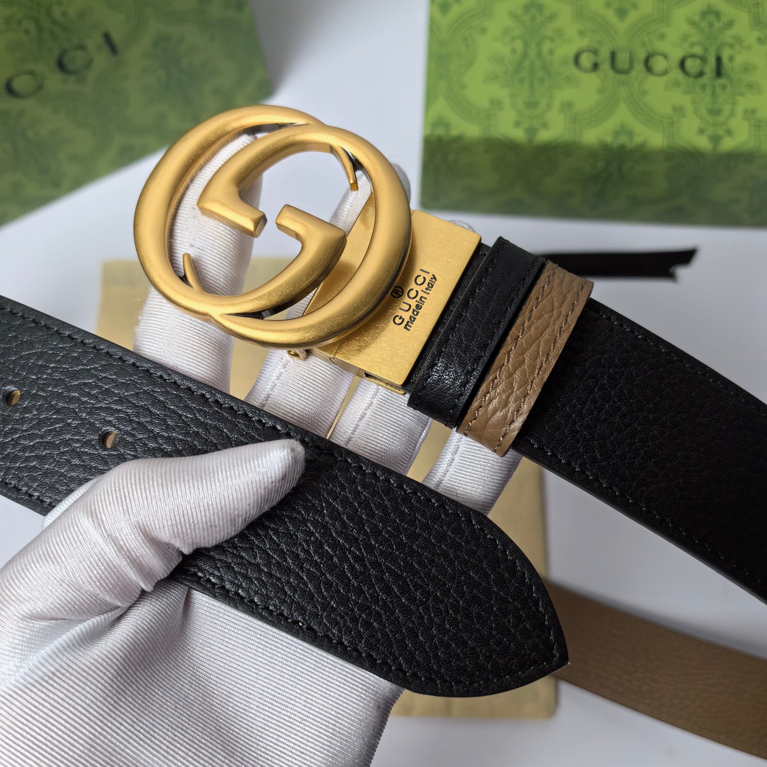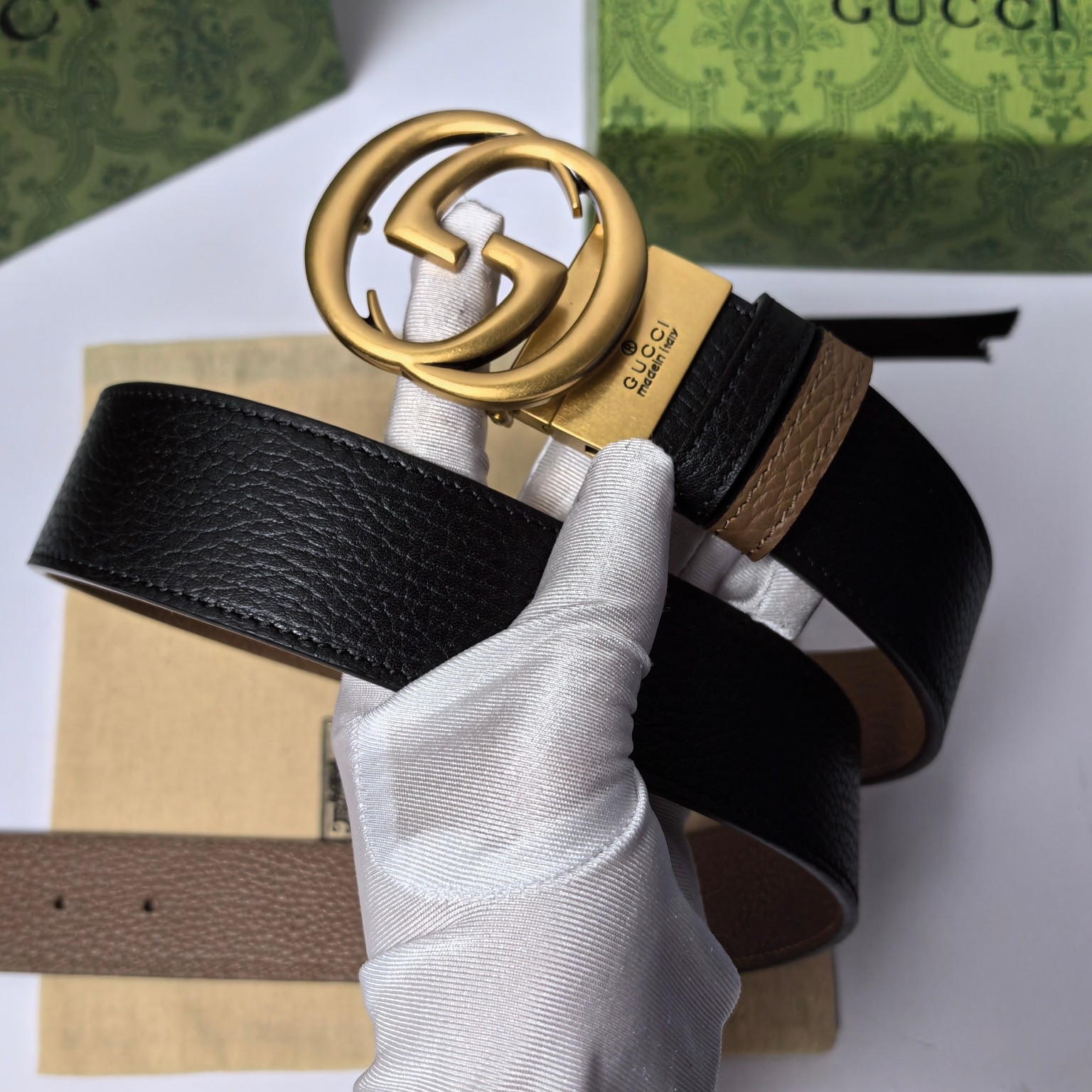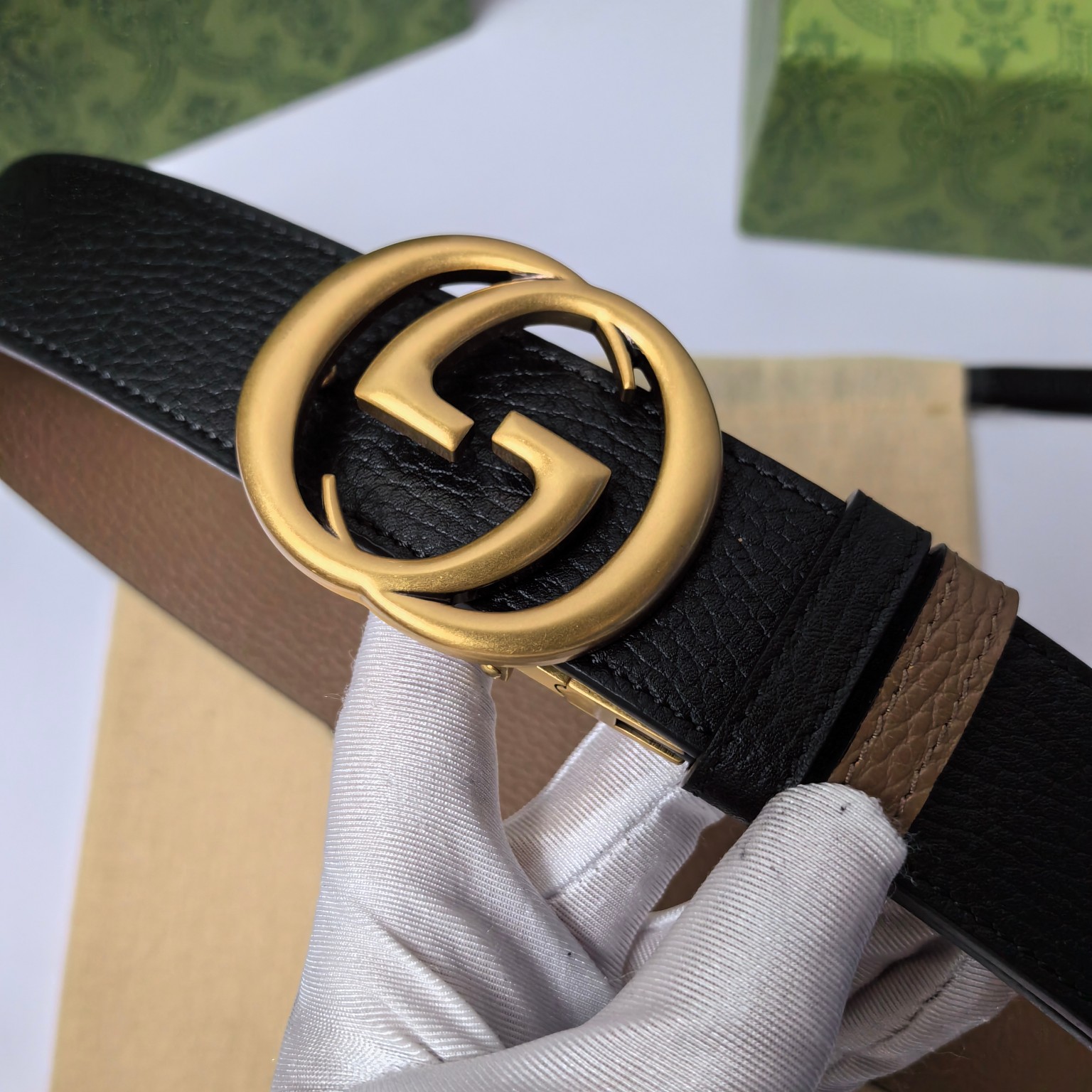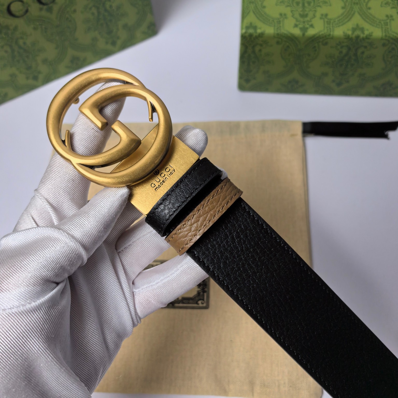 这款皮带是AAAAA 1:1 质量 (非常棒). 使用了和原版一模一样的材料. 商标部分也保持了和古奇/Gucci一样. 图片拍摄是实物皮带拍摄, 您所收到的实物保证和我们图片一模一样.