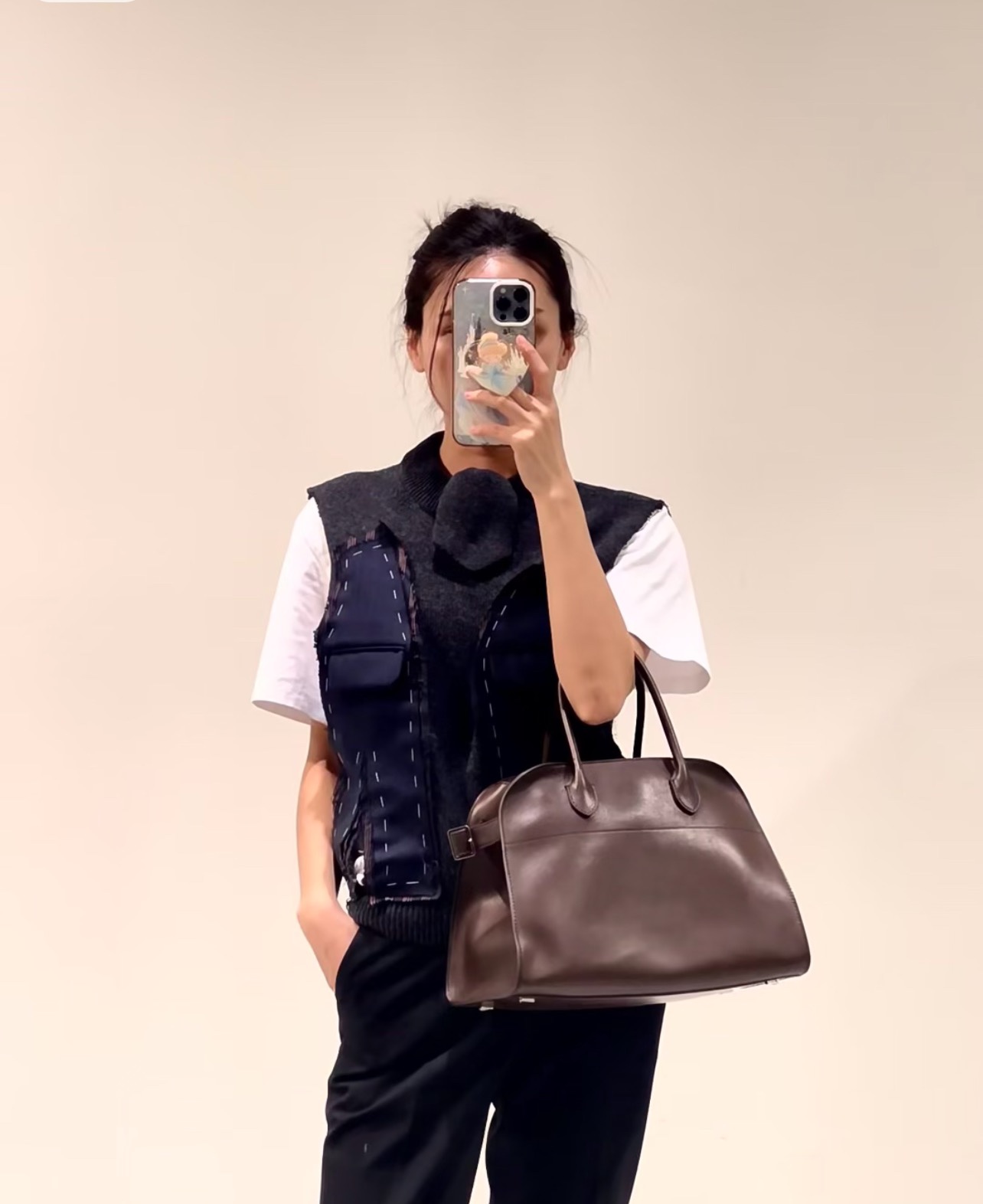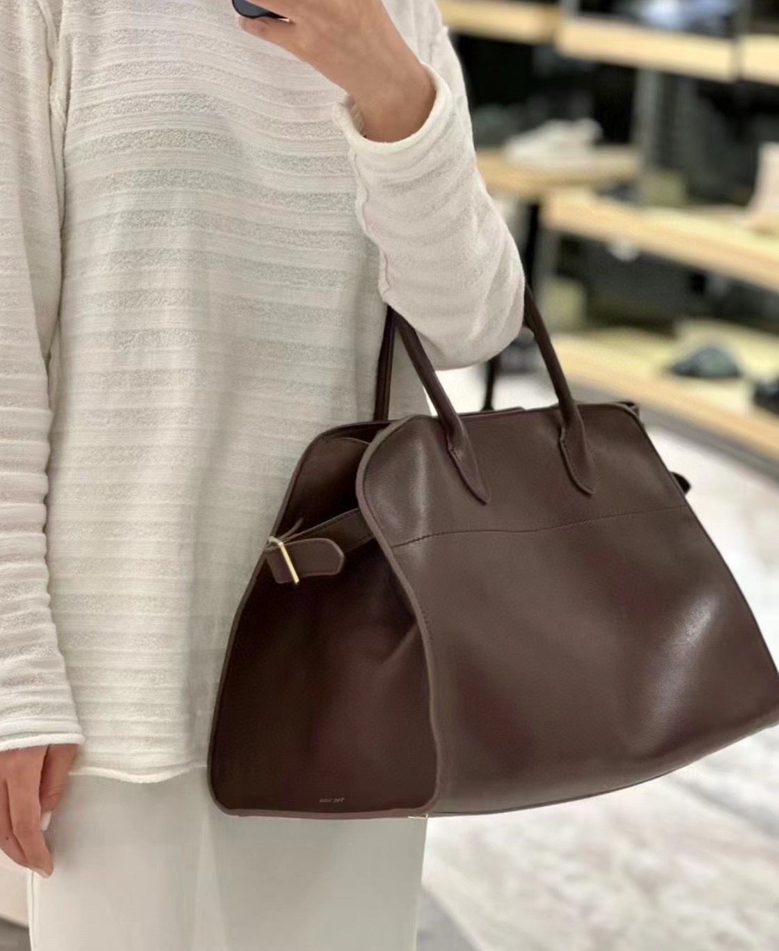 这款包包是AAAAA 1:1 质量 (非常棒). 使用了和原版一模一样的材料. 商标部分也保持了和The Row一样. 图片拍摄是实物包包拍摄, 您所收到的实物保证和我们图片一模一样.