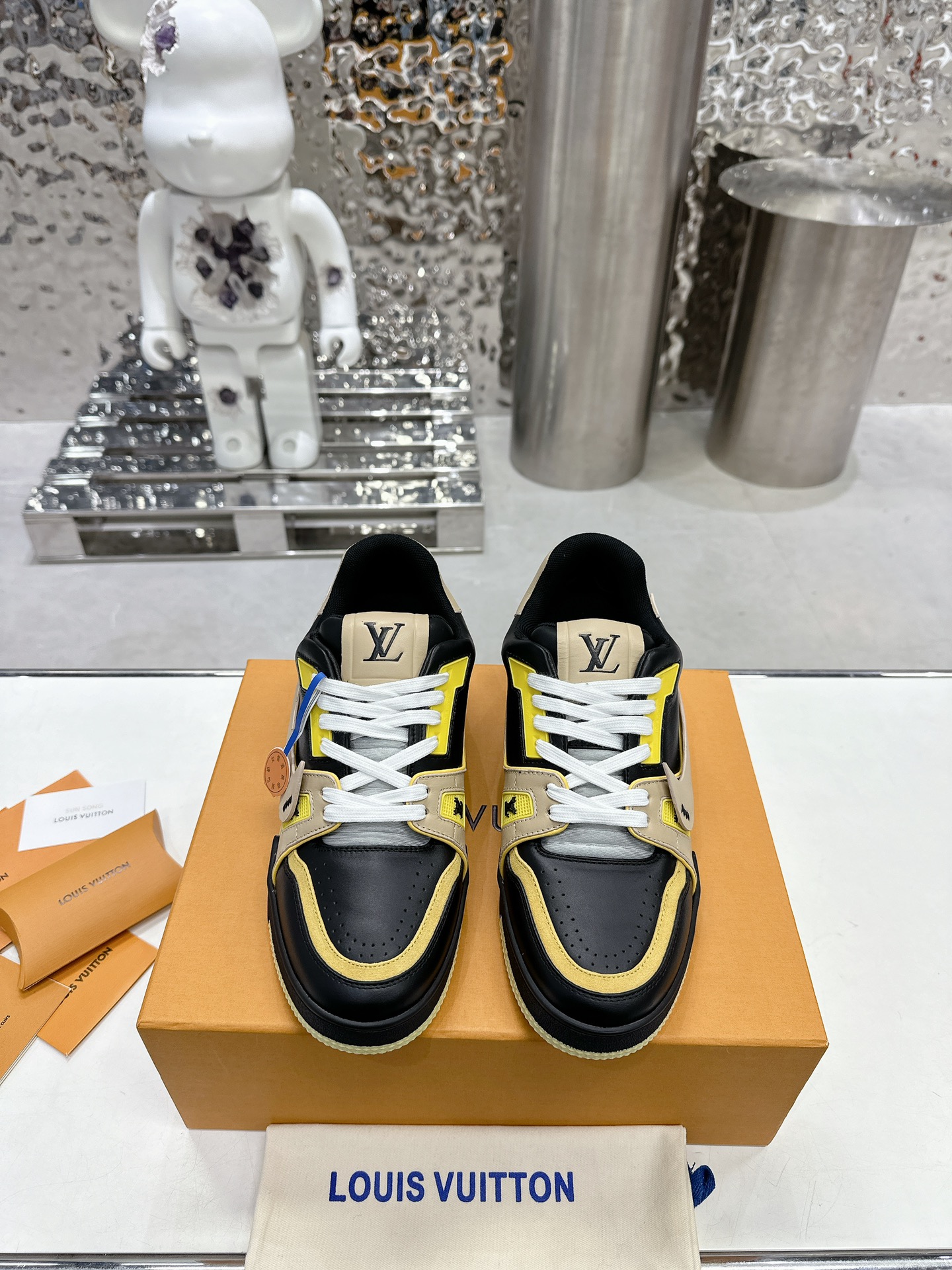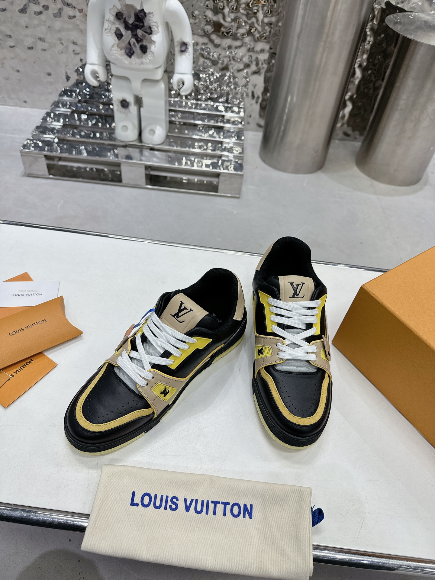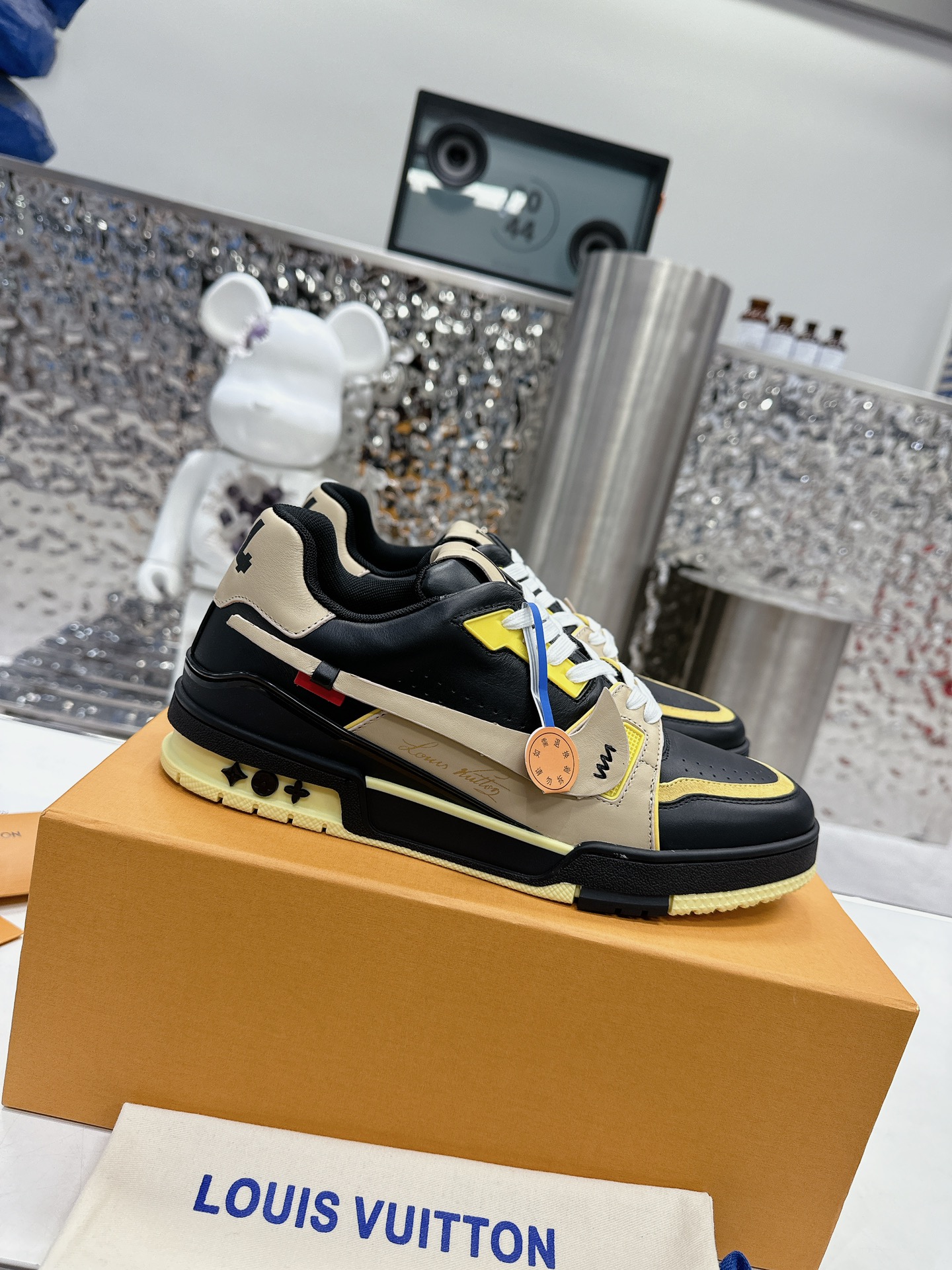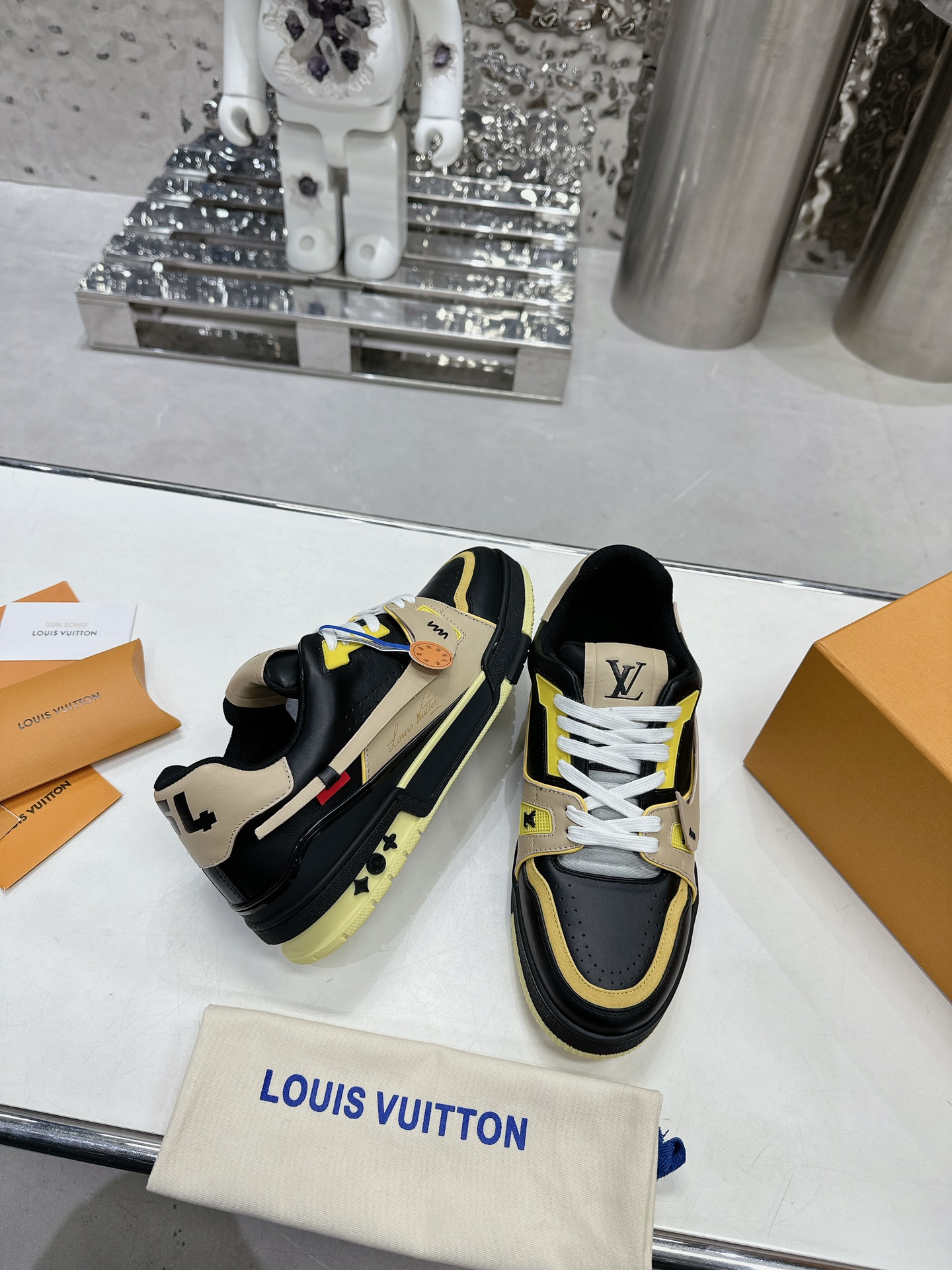 这款鞋子是AAAAA 1:1 质量 (非常棒). 使用了和原版一模一样的材料. 商标部分也保持了和路易威登/Louis Vuitton一样. 图片拍摄是实物鞋子拍摄, 您所收到的实物保证和我们图片一模一样.