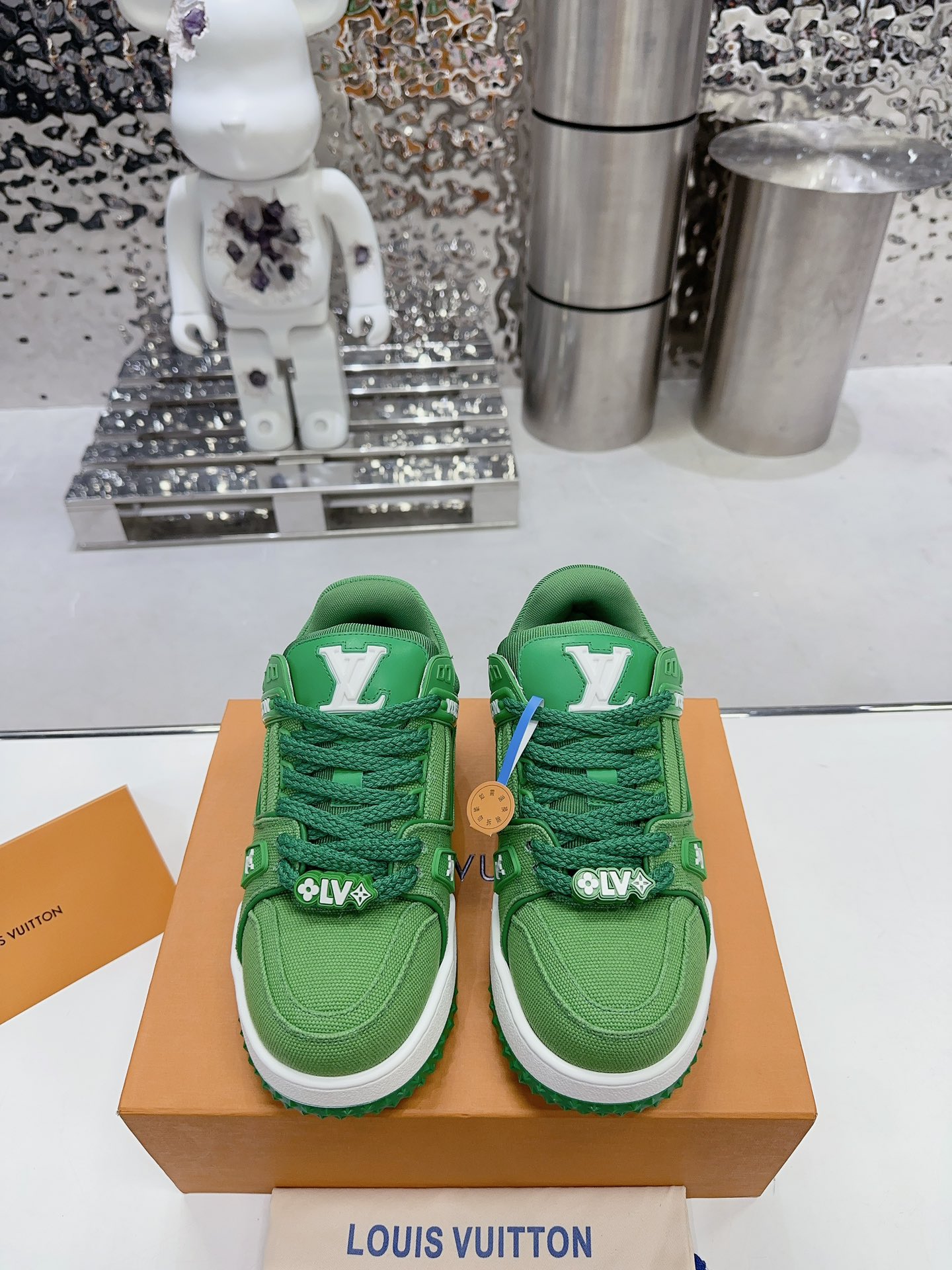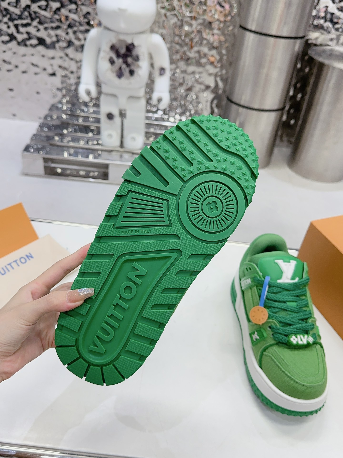 这款鞋子是AAAAA 1:1 质量 (非常棒). 使用了和原版一模一样的材料. 商标部分也保持了和路易威登/Louis Vuitton一样. 图片拍摄是实物鞋子拍摄, 您所收到的实物保证和我们图片一模一样.