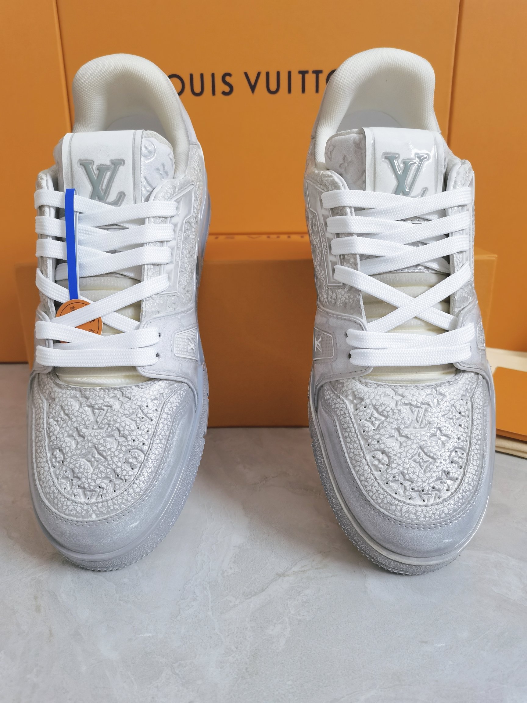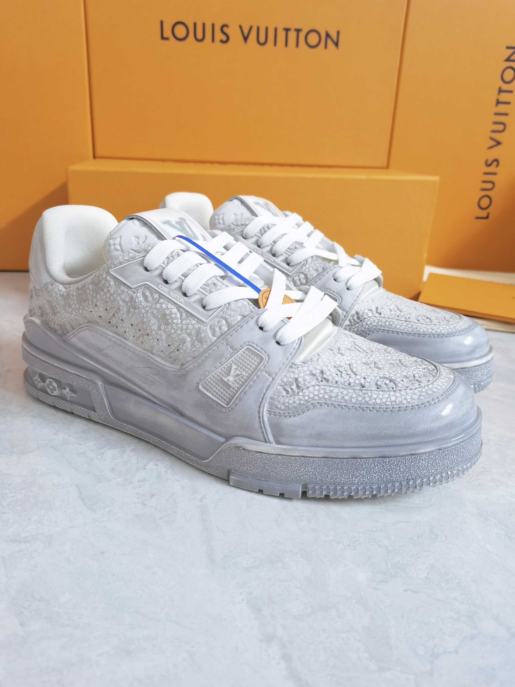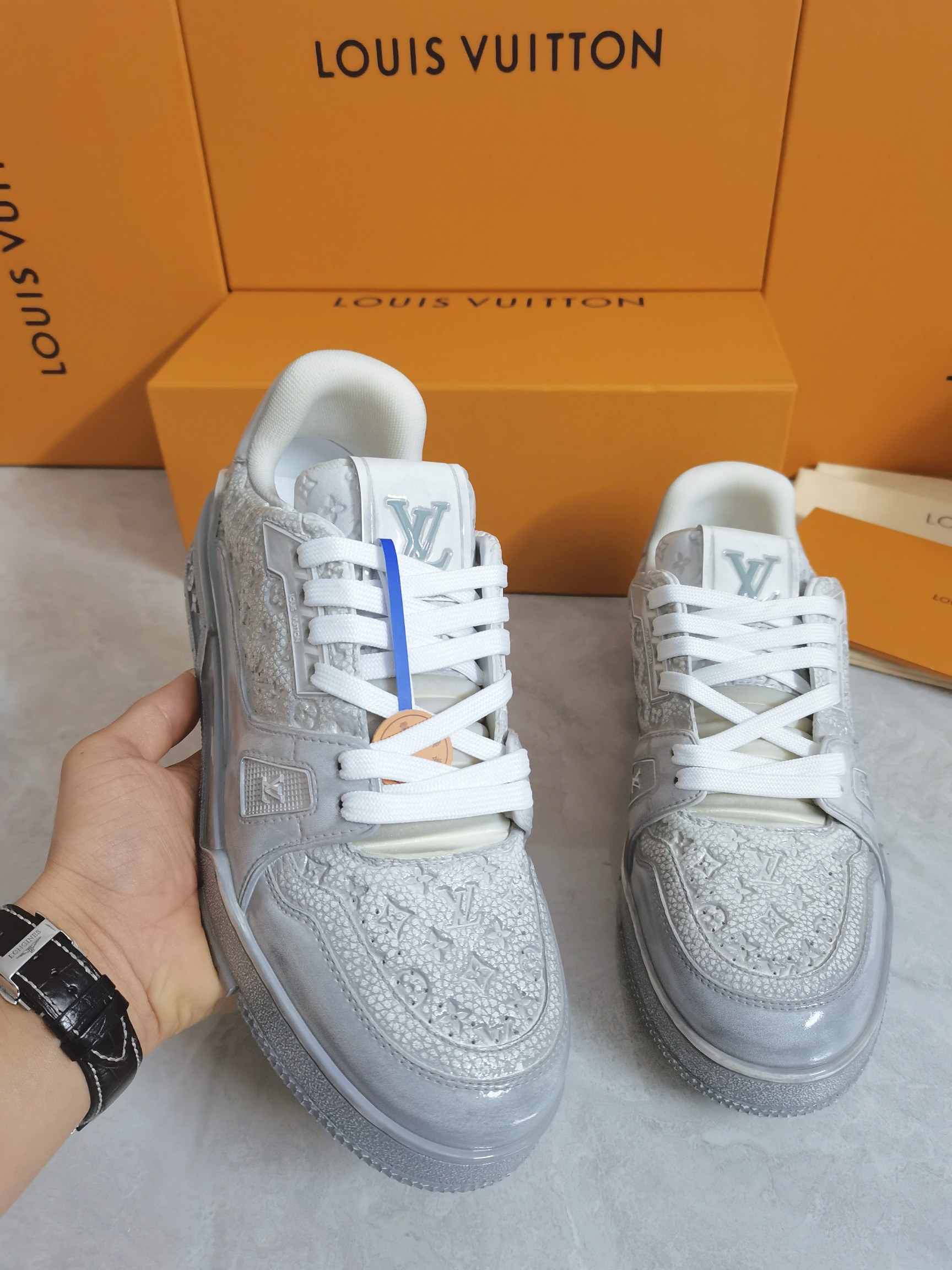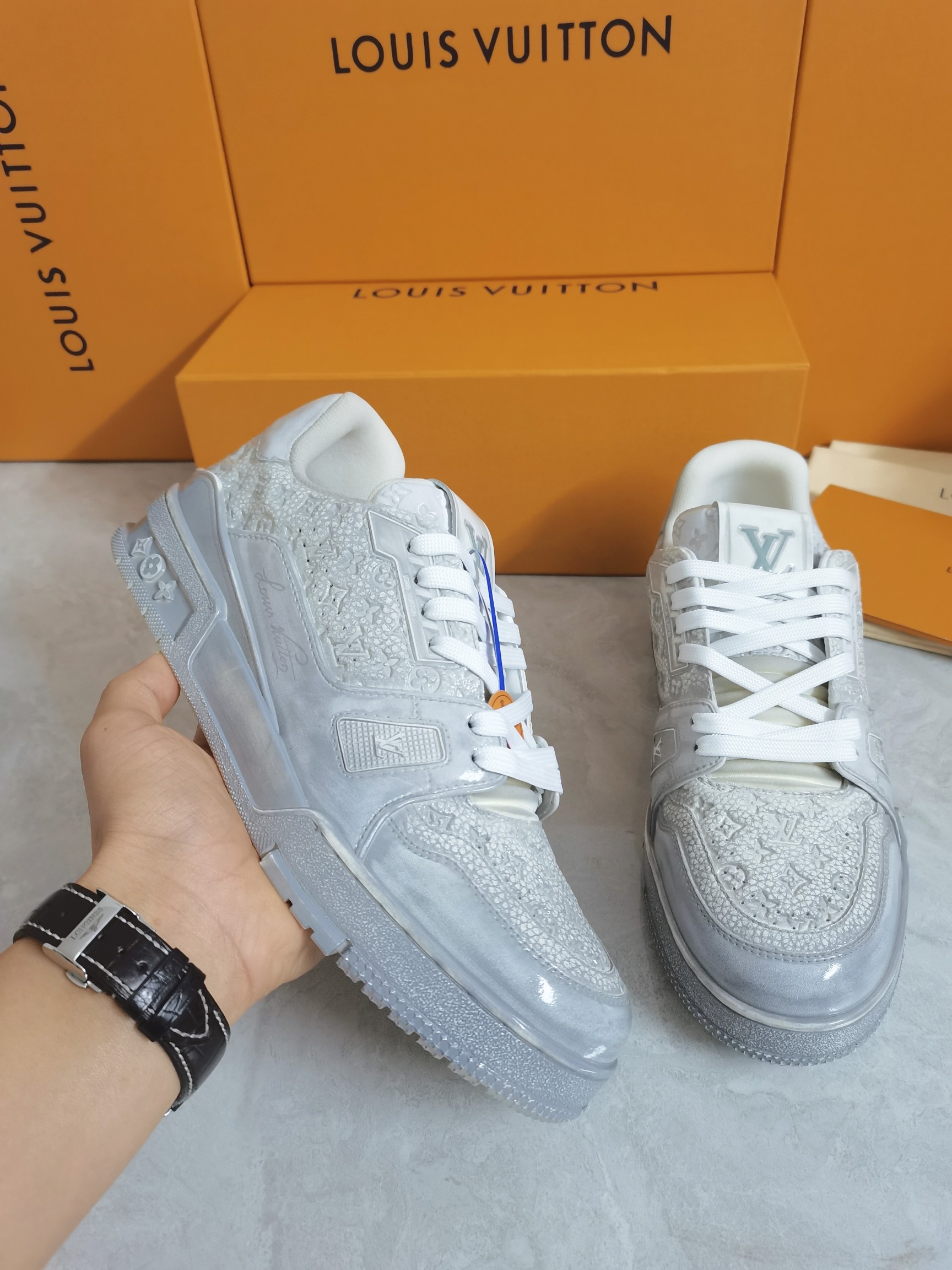 这款鞋子是AAAAA 1:1 质量 (非常棒). 使用了和原版一模一样的材料. 商标部分也保持了和路易威登/Louis Vuitton一样. 图片拍摄是实物鞋子拍摄, 您所收到的实物保证和我们图片一模一样.