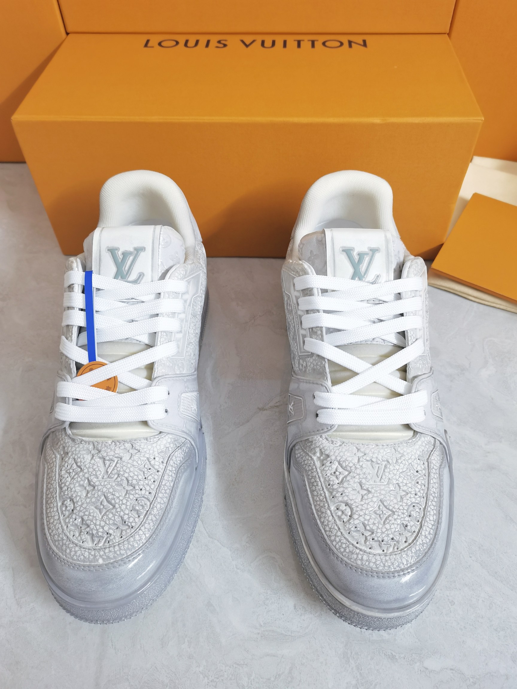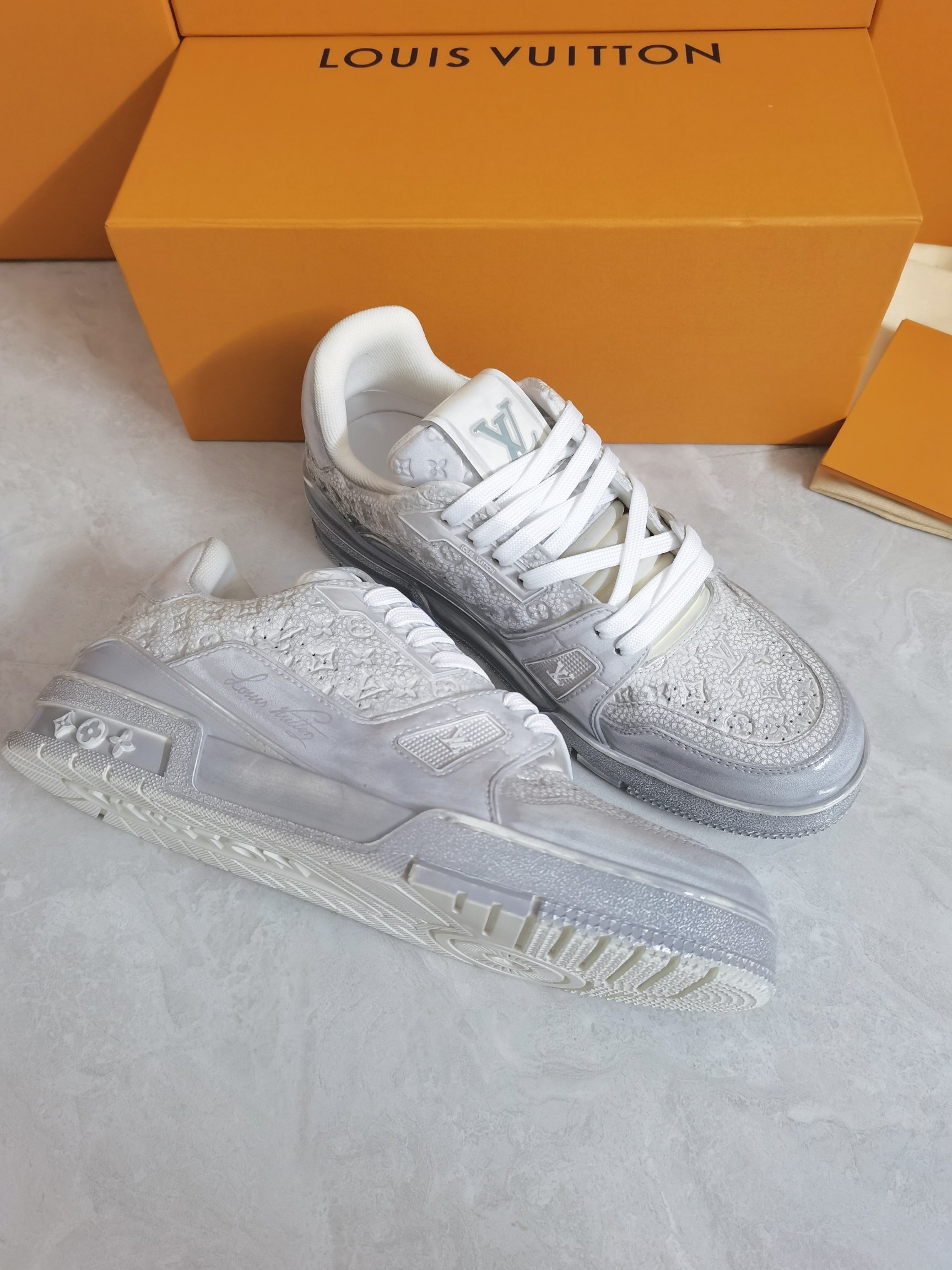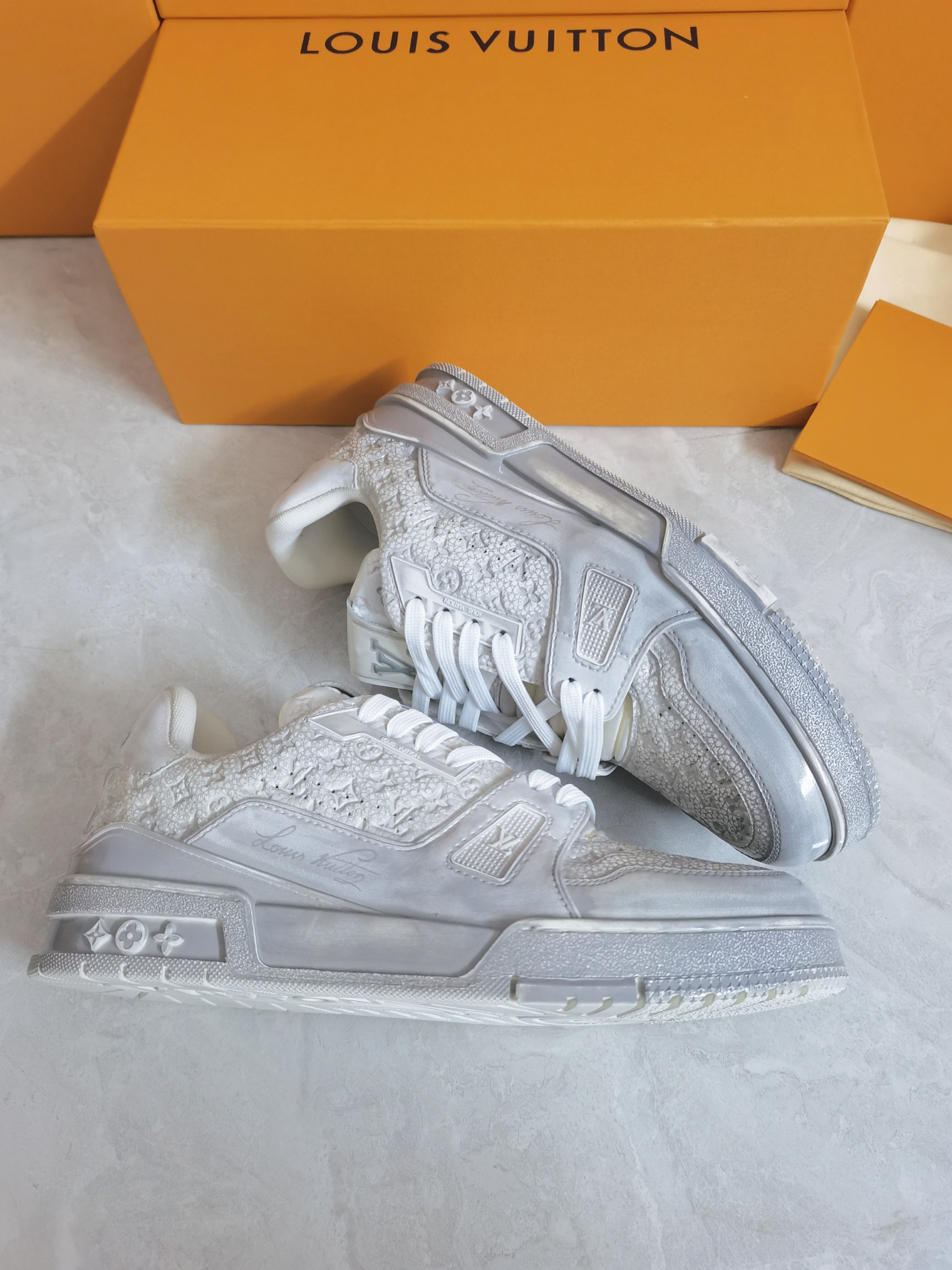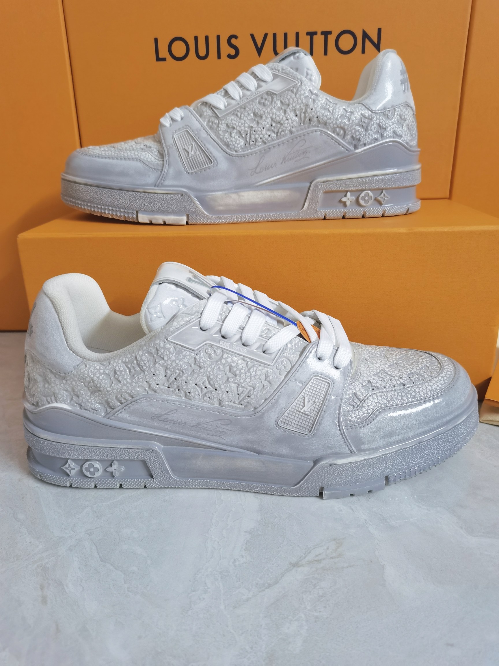这款鞋子是AAAAA 1:1 质量 (非常棒). 使用了和原版一模一样的材料. 商标部分也保持了和路易威登/Louis Vuitton一样. 图片拍摄是实物鞋子拍摄, 您所收到的实物保证和我们图片一模一样.