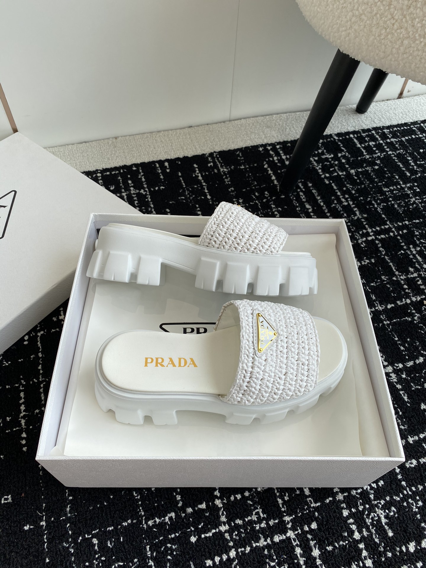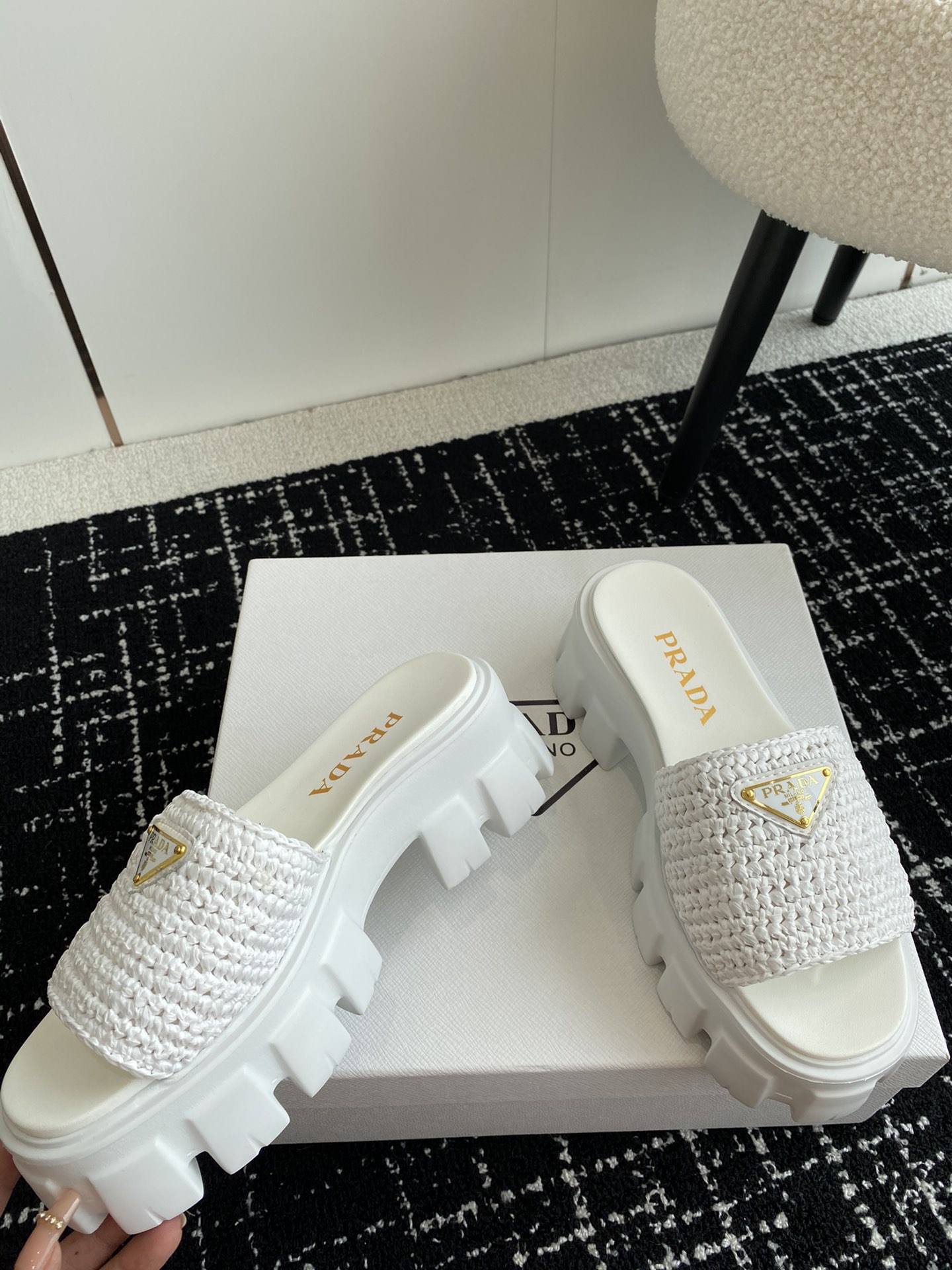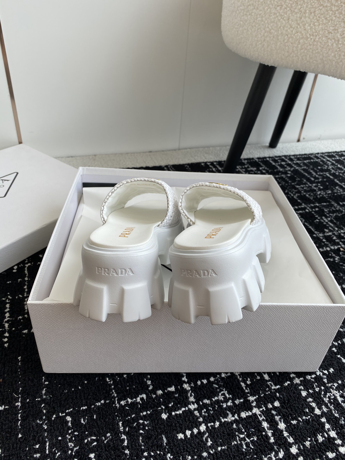 这款鞋子是AAAAA 1:1 质量 (非常棒). 使用了和原版一模一样的材料. 商标部分也保持了和普拉达/Prada一样. 图片拍摄是实物鞋子拍摄, 您所收到的实物保证和我们图片一模一样.