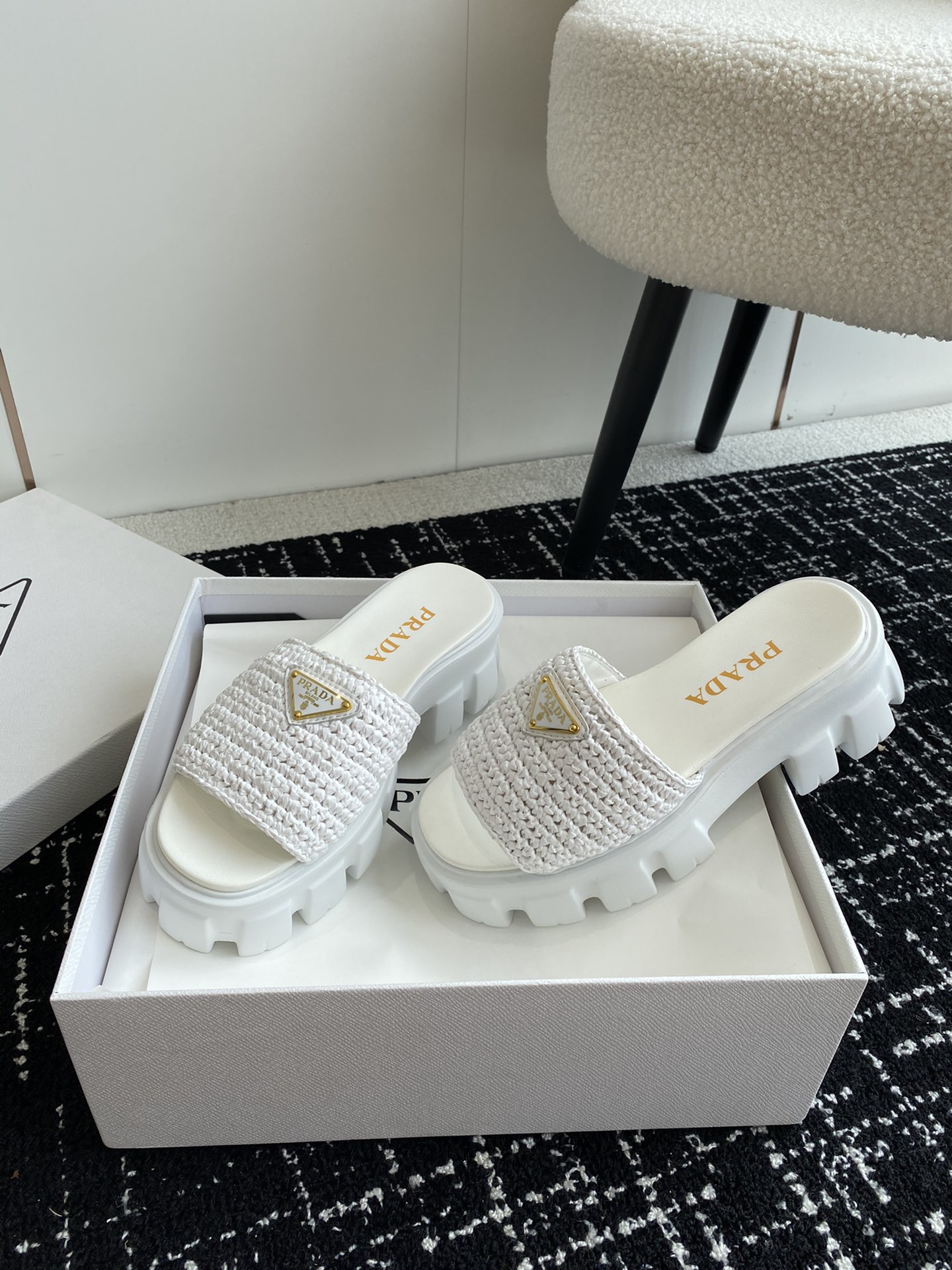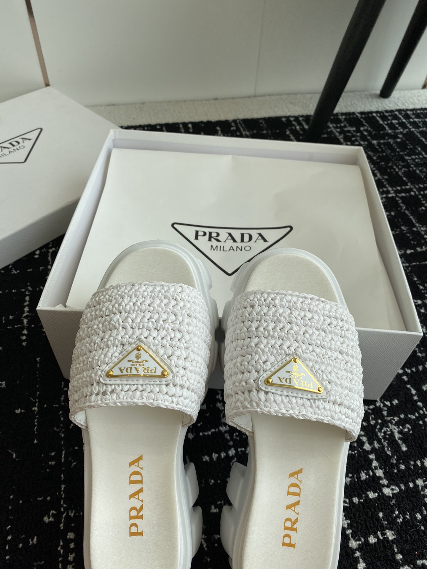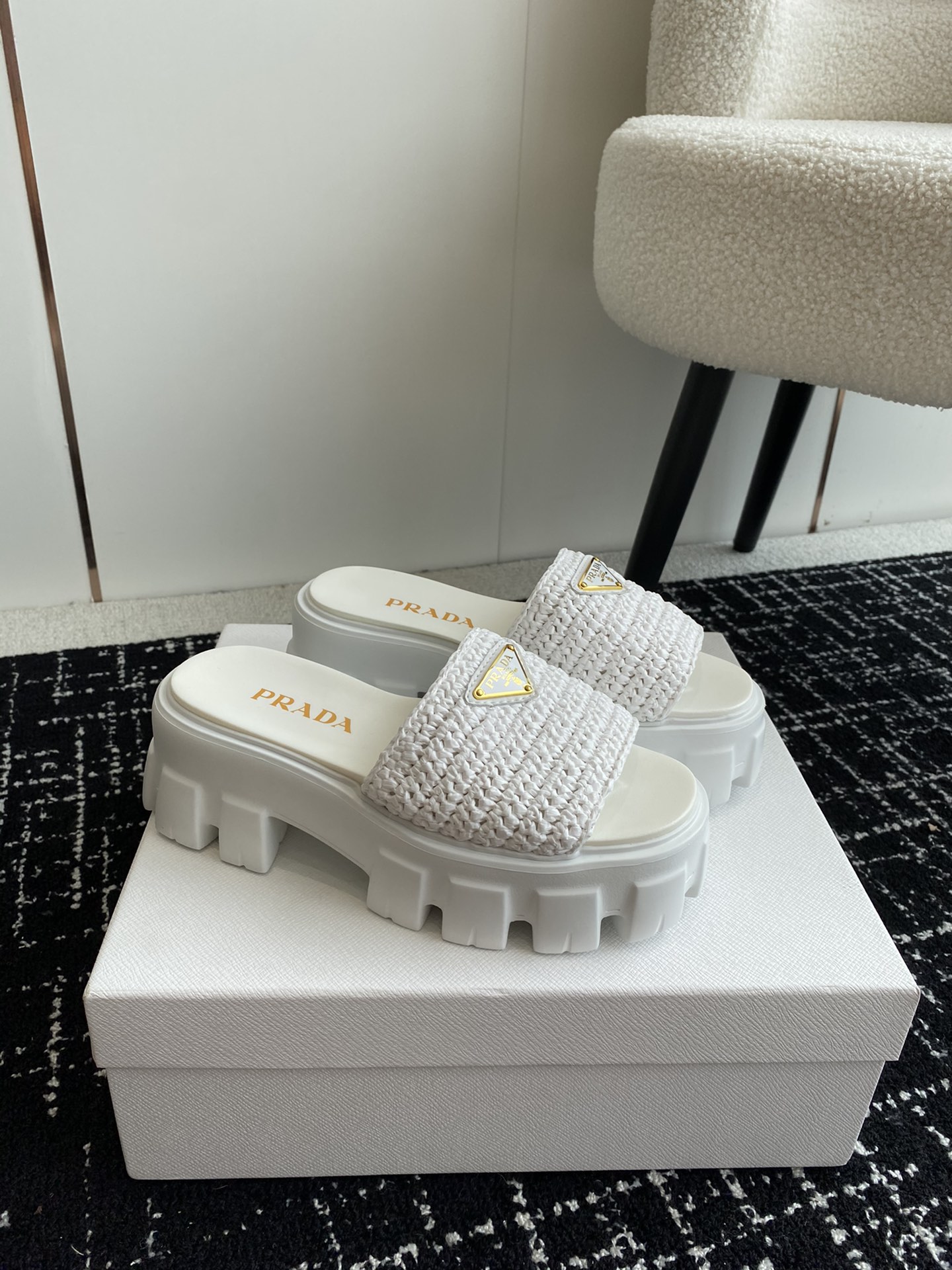 这款鞋子是AAAAA 1:1 质量 (非常棒). 使用了和原版一模一样的材料. 商标部分也保持了和普拉达/Prada一样. 图片拍摄是实物鞋子拍摄, 您所收到的实物保证和我们图片一模一样.