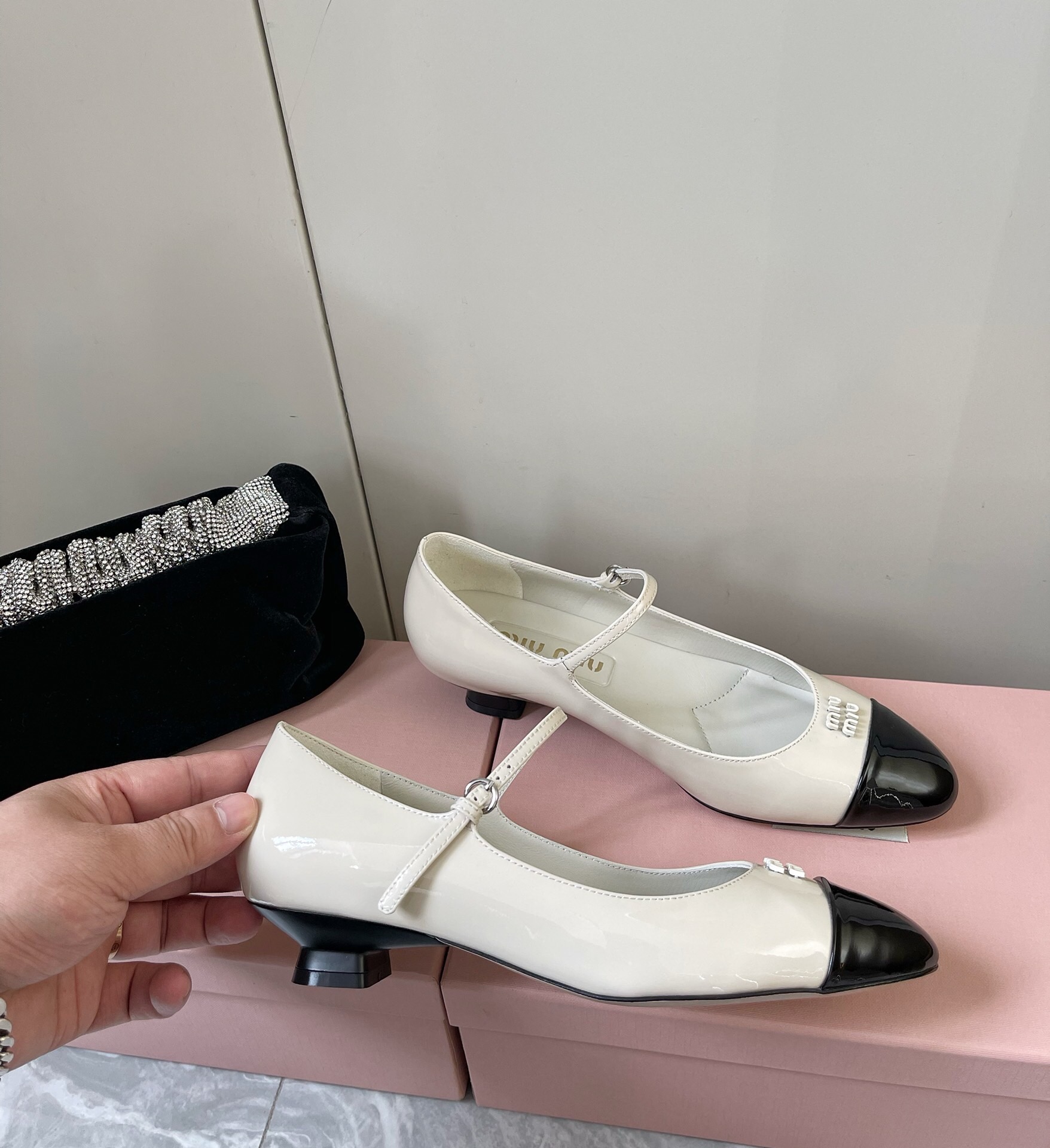 这款鞋子是AAAAA 1:1 质量 (非常棒). 使用了和原版一模一样的材料. 商标部分也保持了和缪缪/Miu Miu一样. 图片拍摄是实物鞋子拍摄, 您所收到的实物保证和我们图片一模一样.