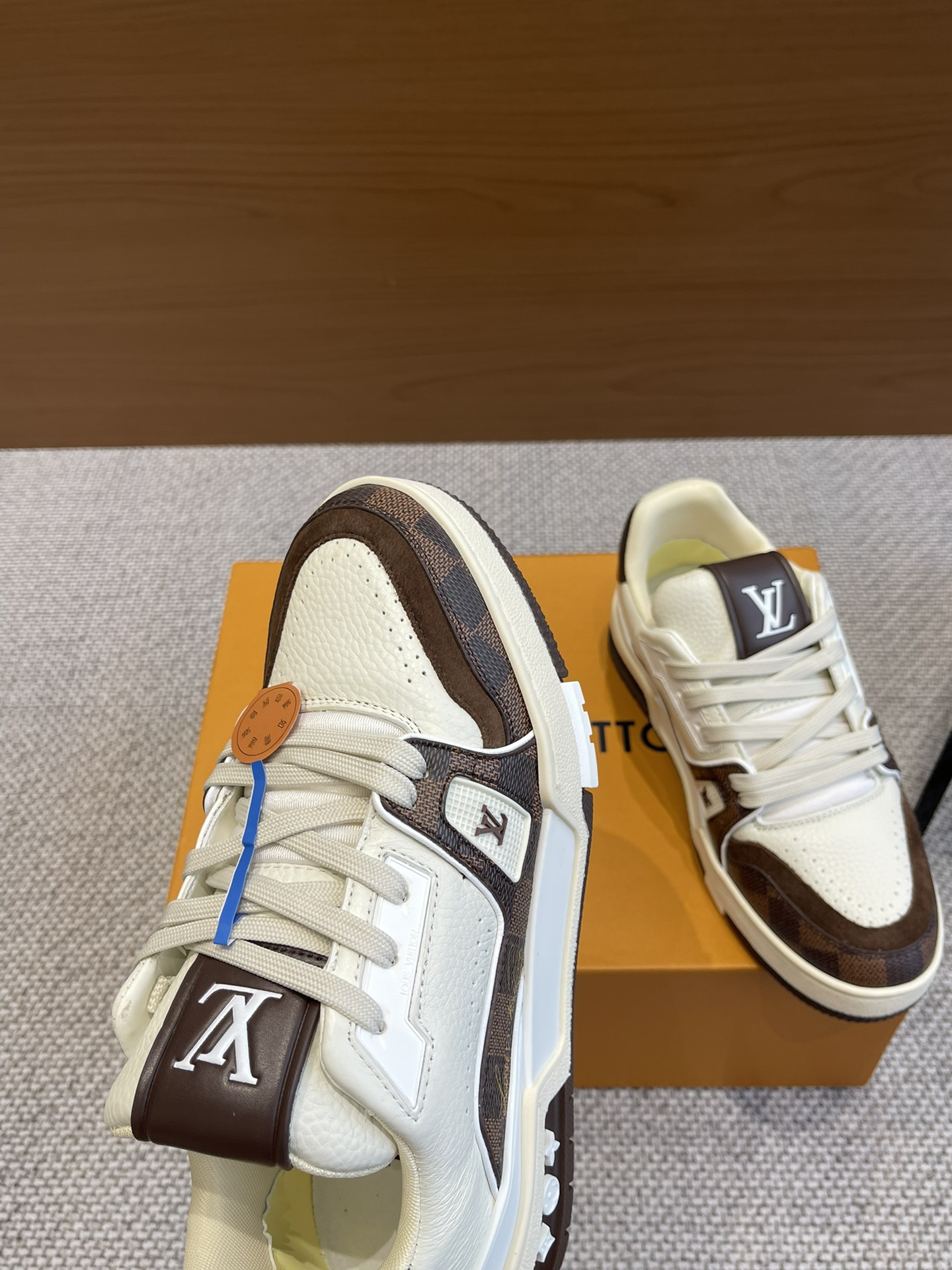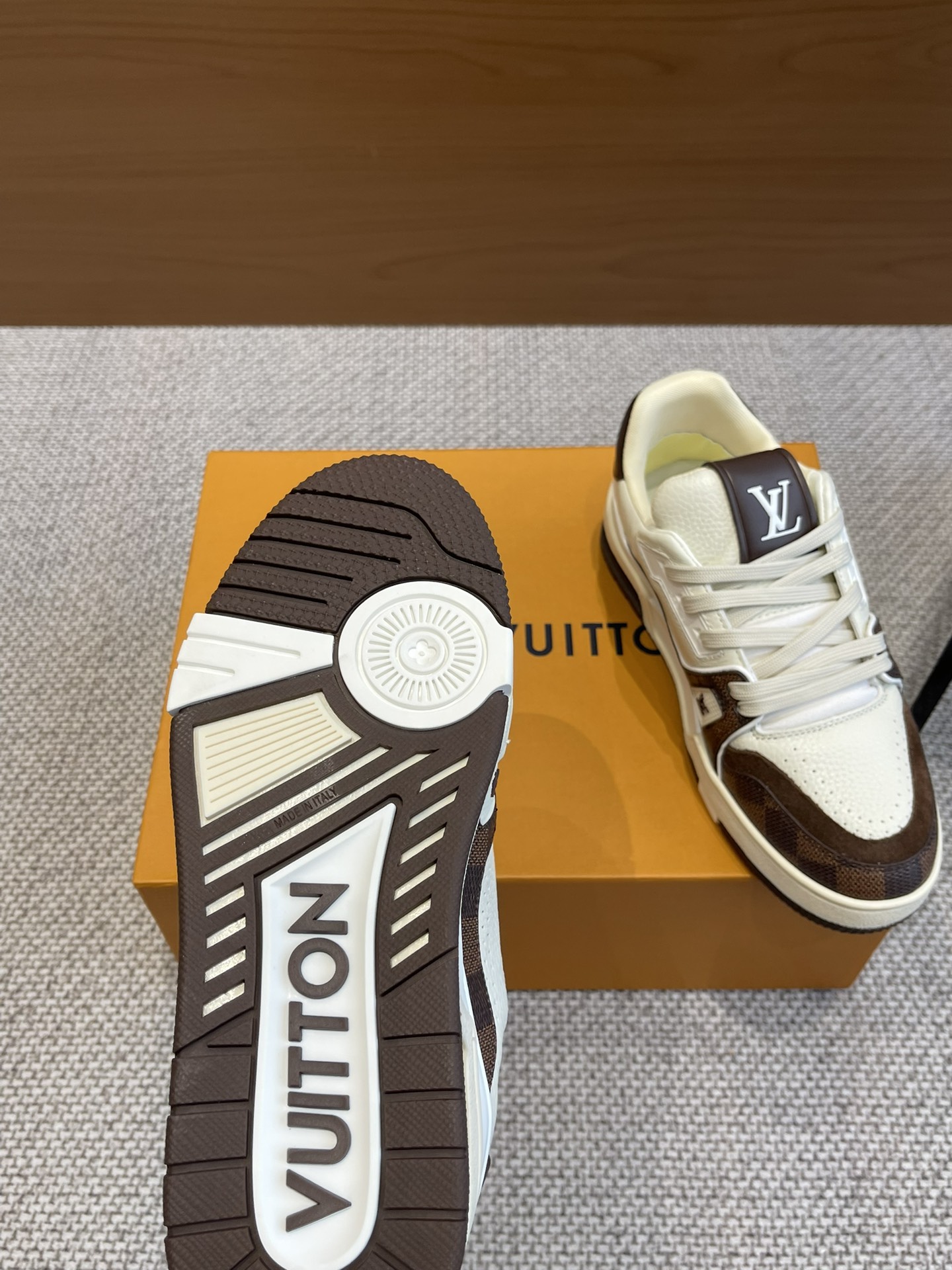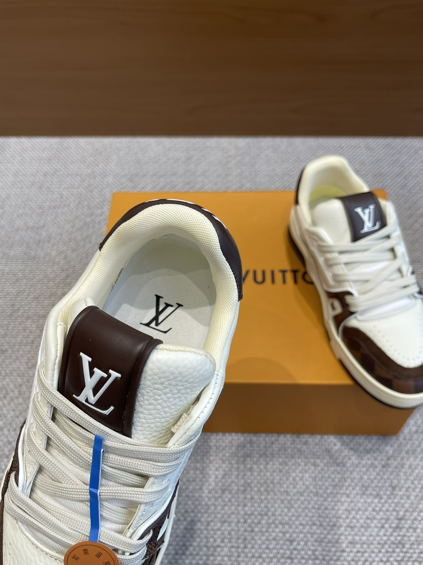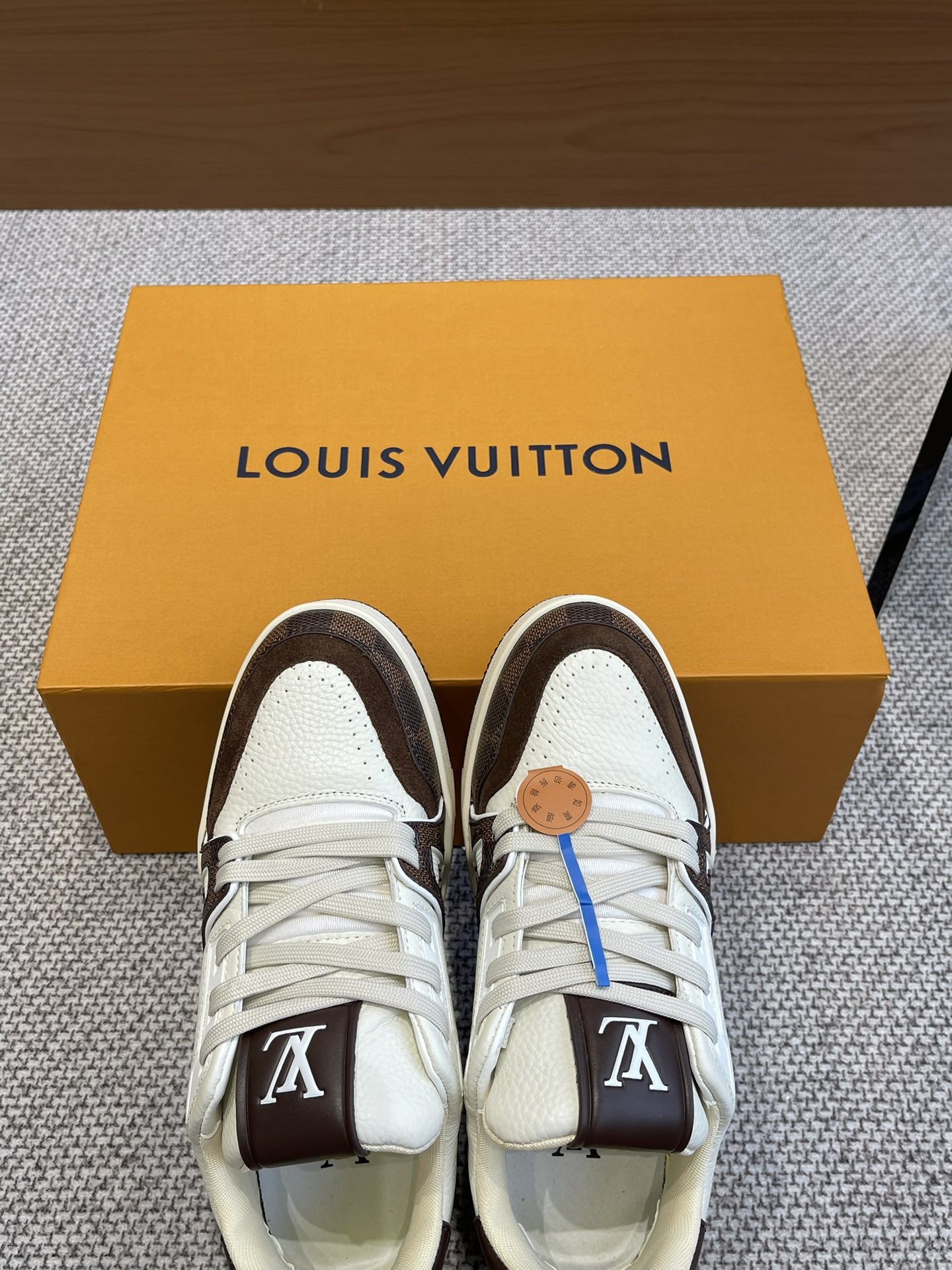 这款鞋子是AAAAA 1:1 质量 (非常棒). 使用了和原版一模一样的材料. 商标部分也保持了和路易威登/Louis Vuitton一样. 图片拍摄是实物鞋子拍摄, 您所收到的实物保证和我们图片一模一样.