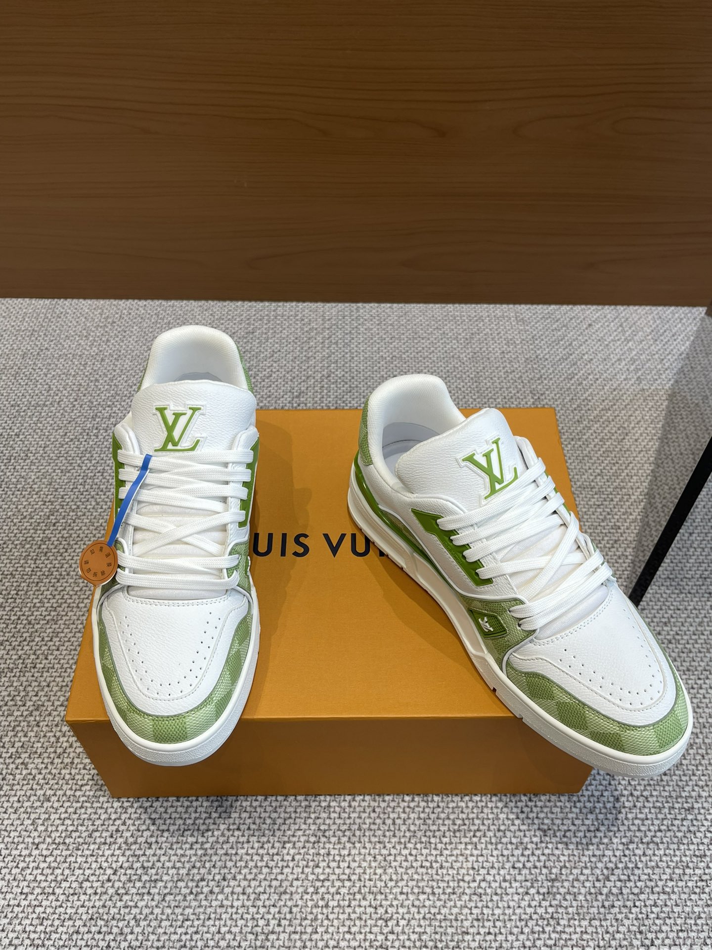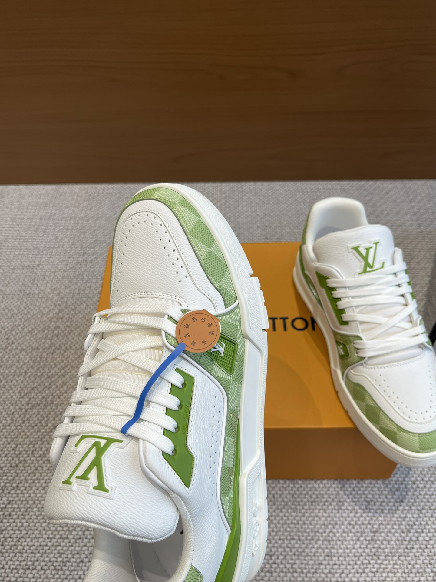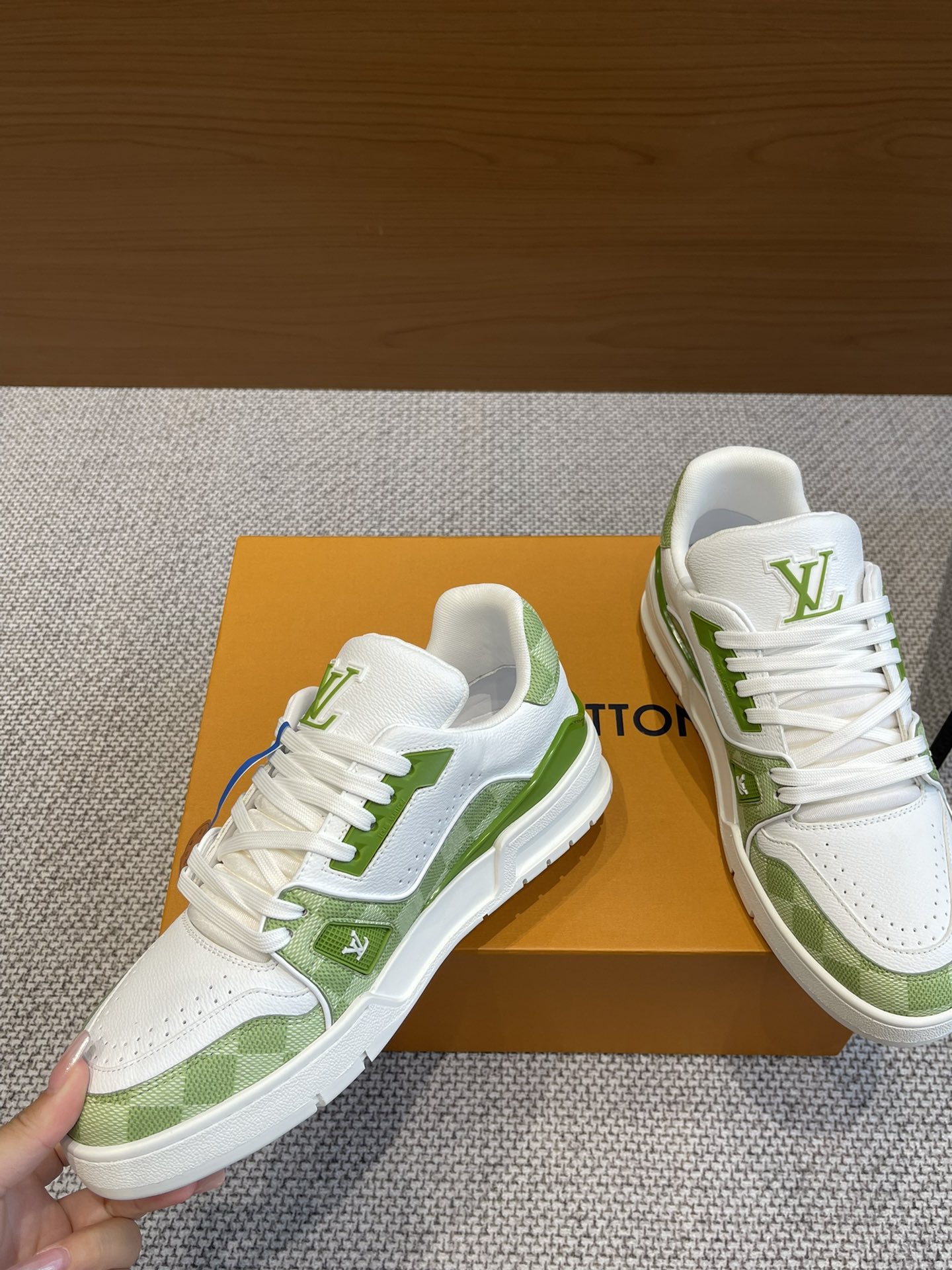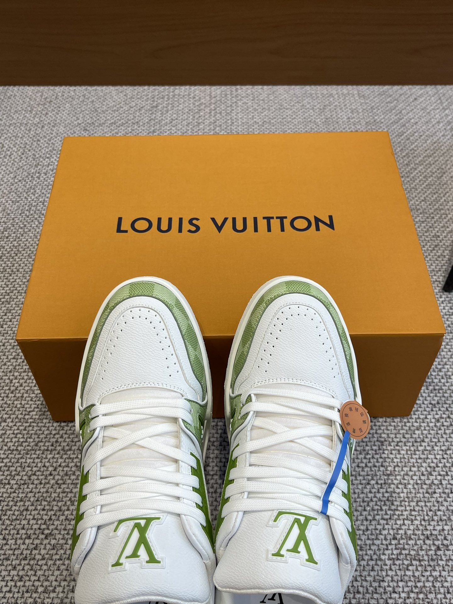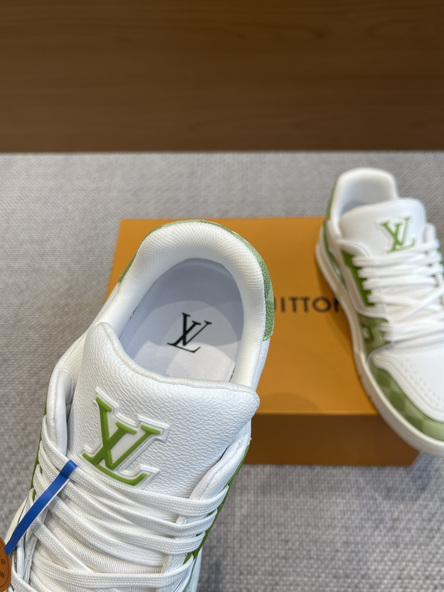 这款鞋子是AAAAA 1:1 质量 (非常棒). 使用了和原版一模一样的材料. 商标部分也保持了和路易威登/Louis Vuitton一样. 图片拍摄是实物鞋子拍摄, 您所收到的实物保证和我们图片一模一样.