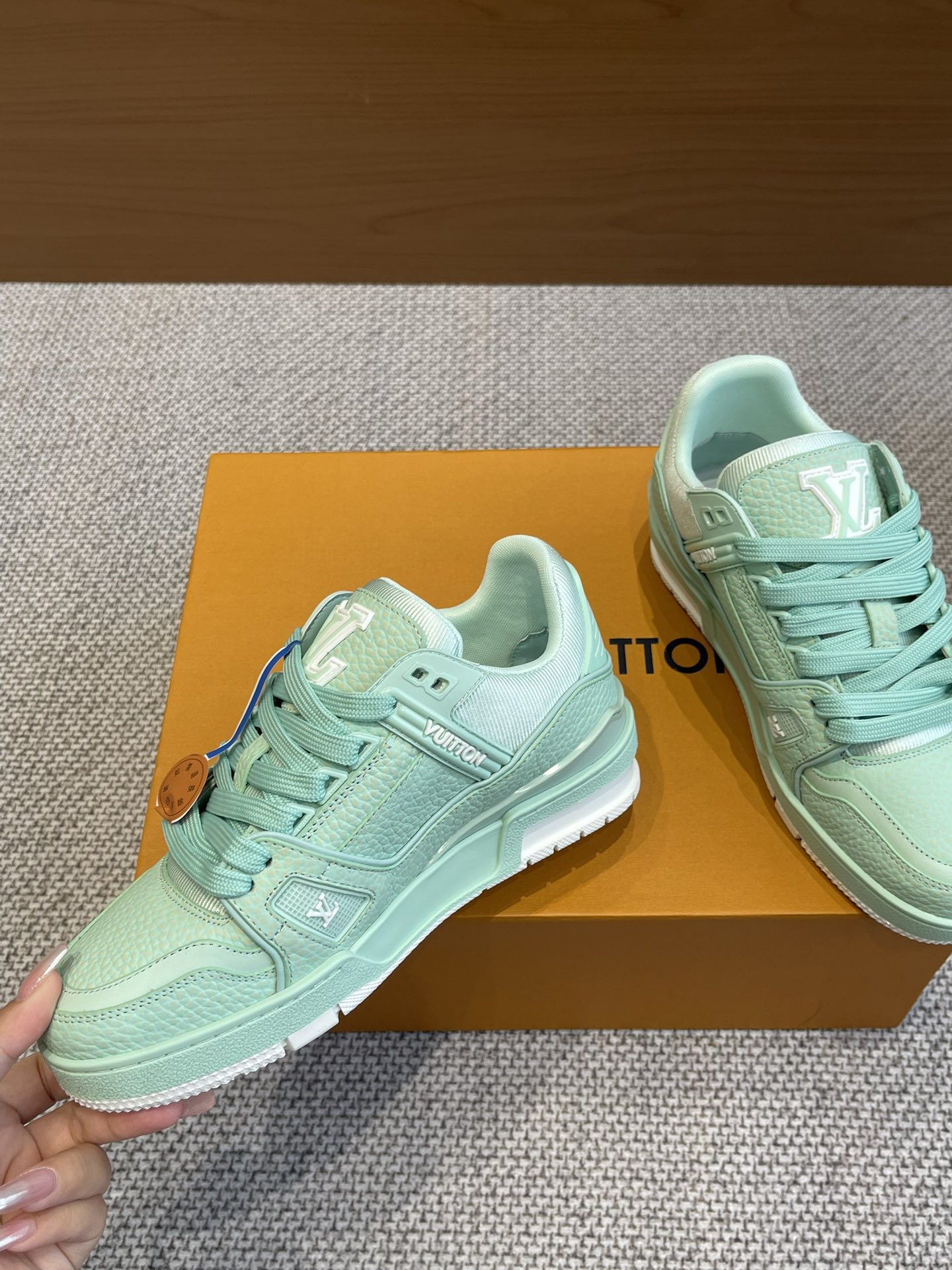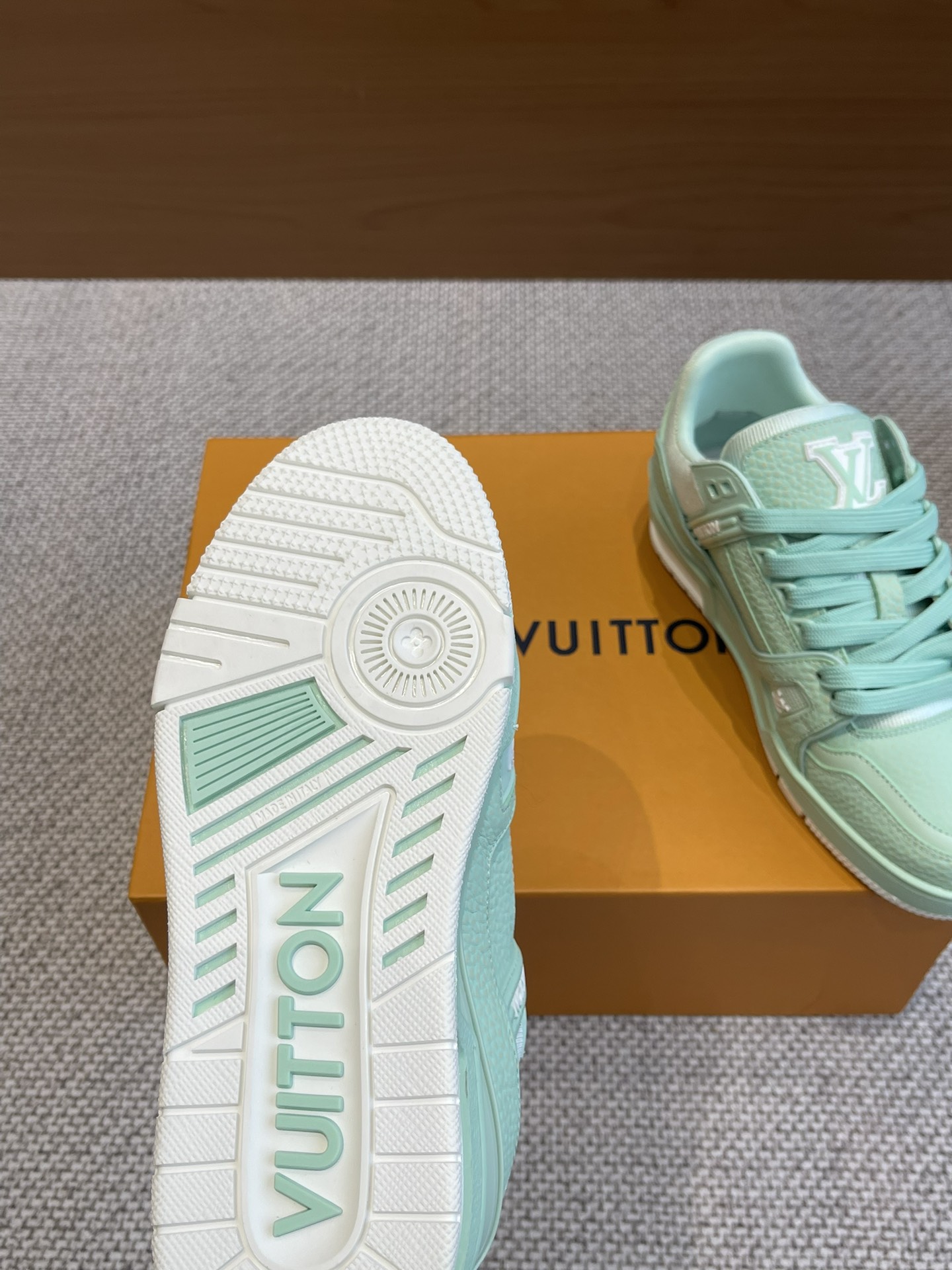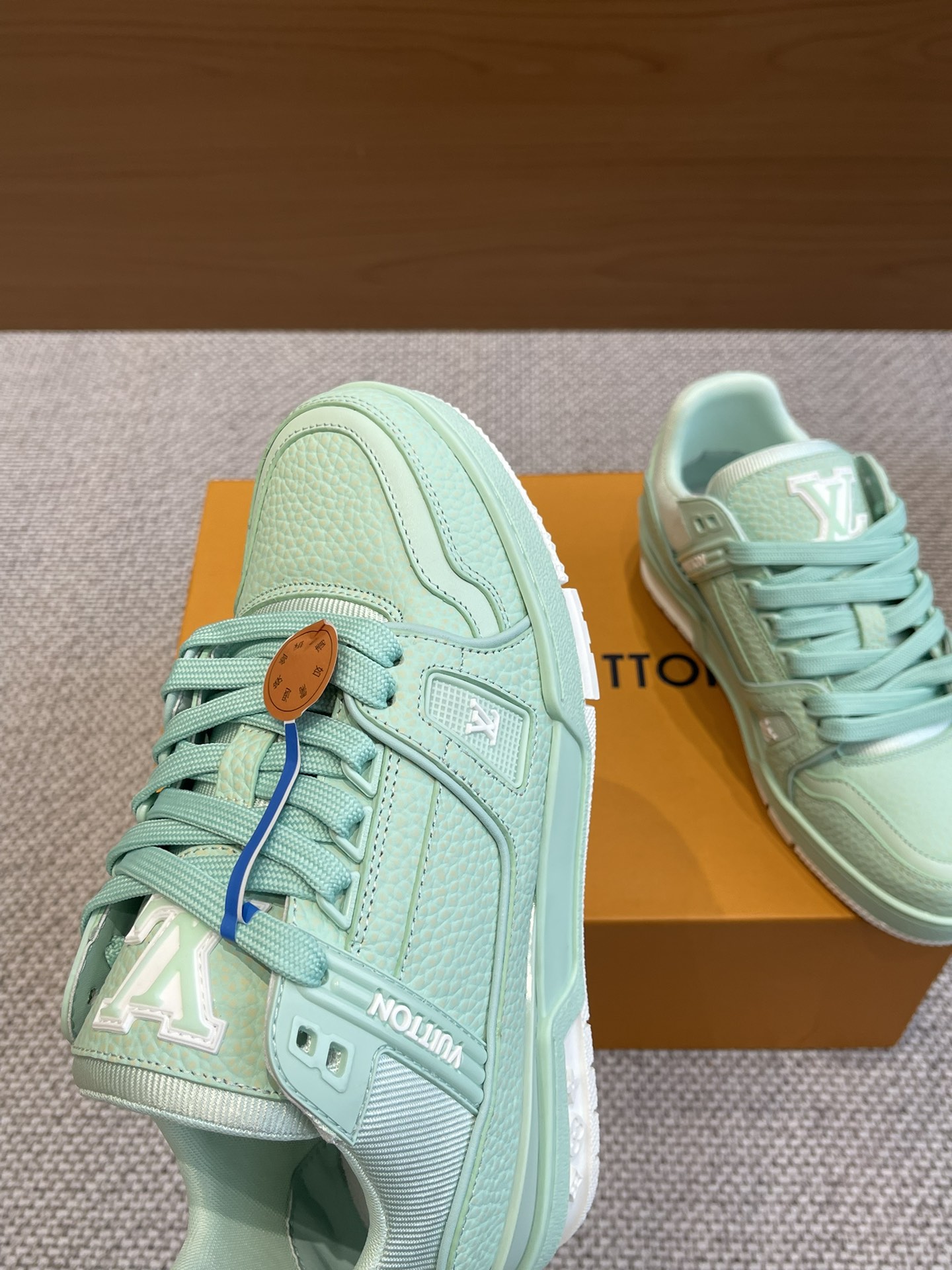 这款鞋子是AAAAA 1:1 质量 (非常棒). 使用了和原版一模一样的材料. 商标部分也保持了和路易威登/Louis Vuitton一样. 图片拍摄是实物鞋子拍摄, 您所收到的实物保证和我们图片一模一样.