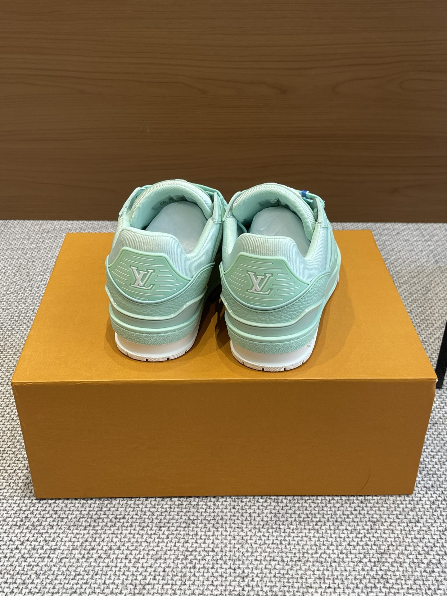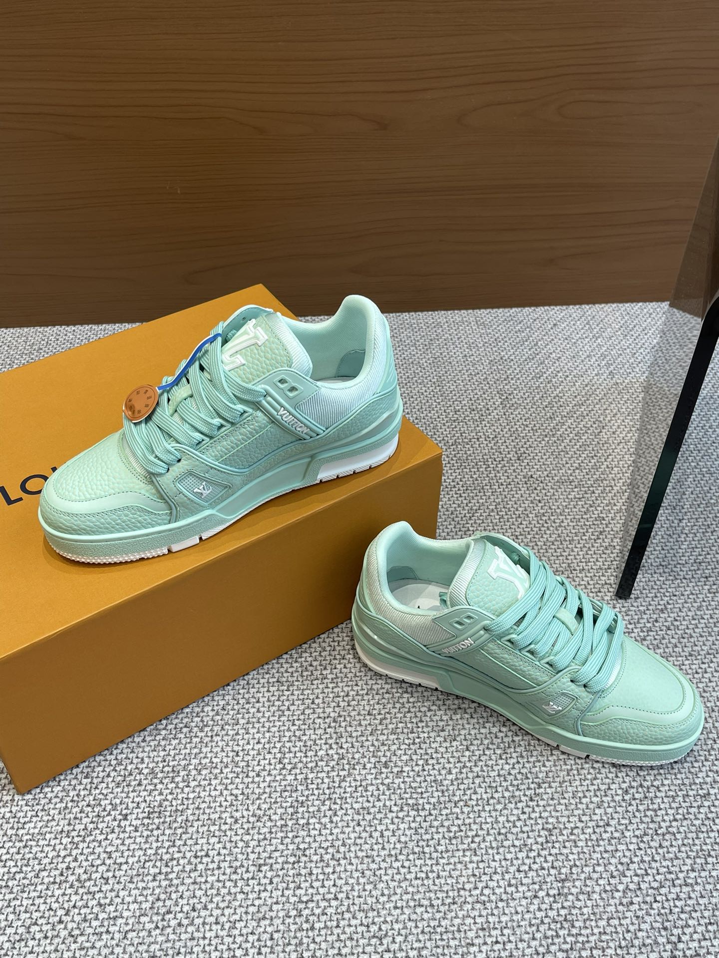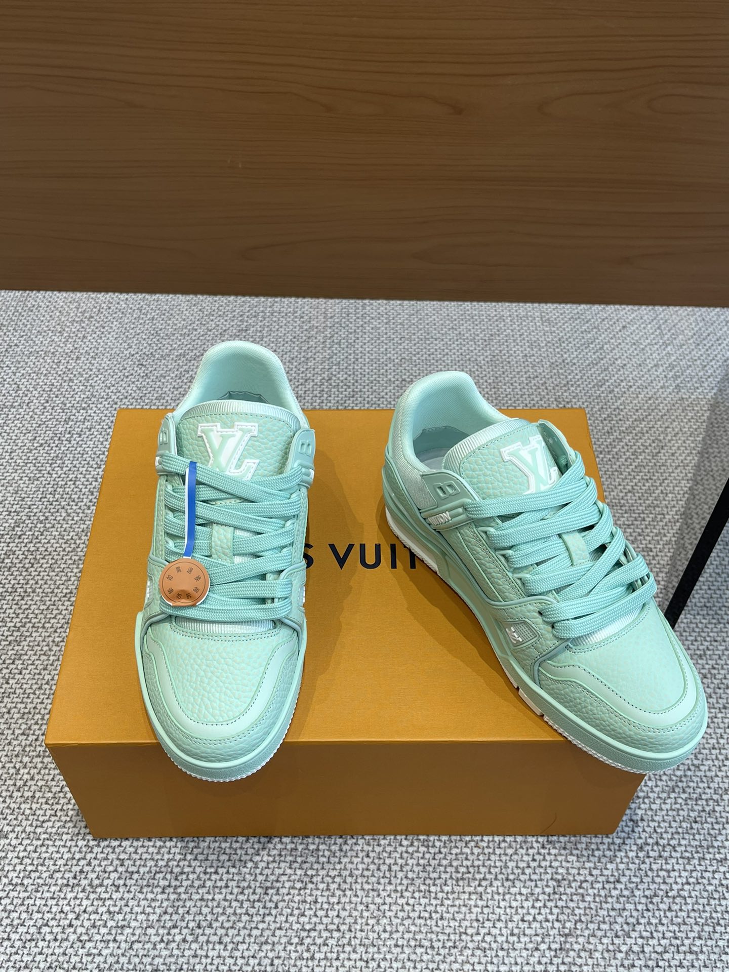 这款鞋子是AAAAA 1:1 质量 (非常棒). 使用了和原版一模一样的材料. 商标部分也保持了和路易威登/Louis Vuitton一样. 图片拍摄是实物鞋子拍摄, 您所收到的实物保证和我们图片一模一样.