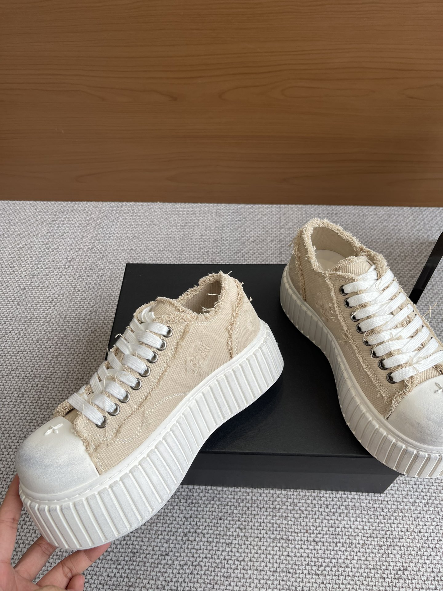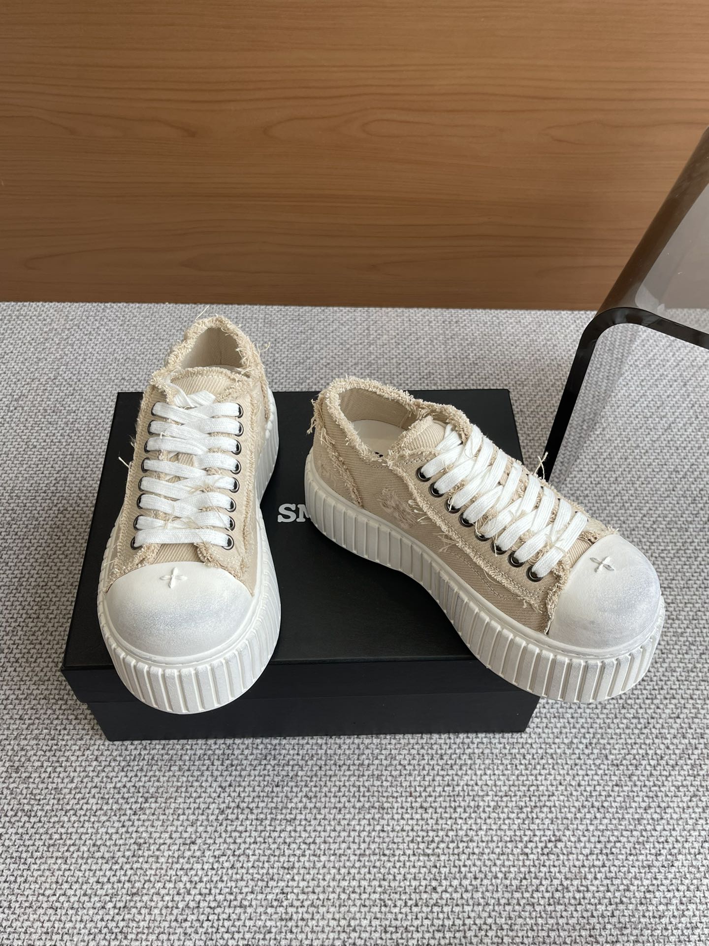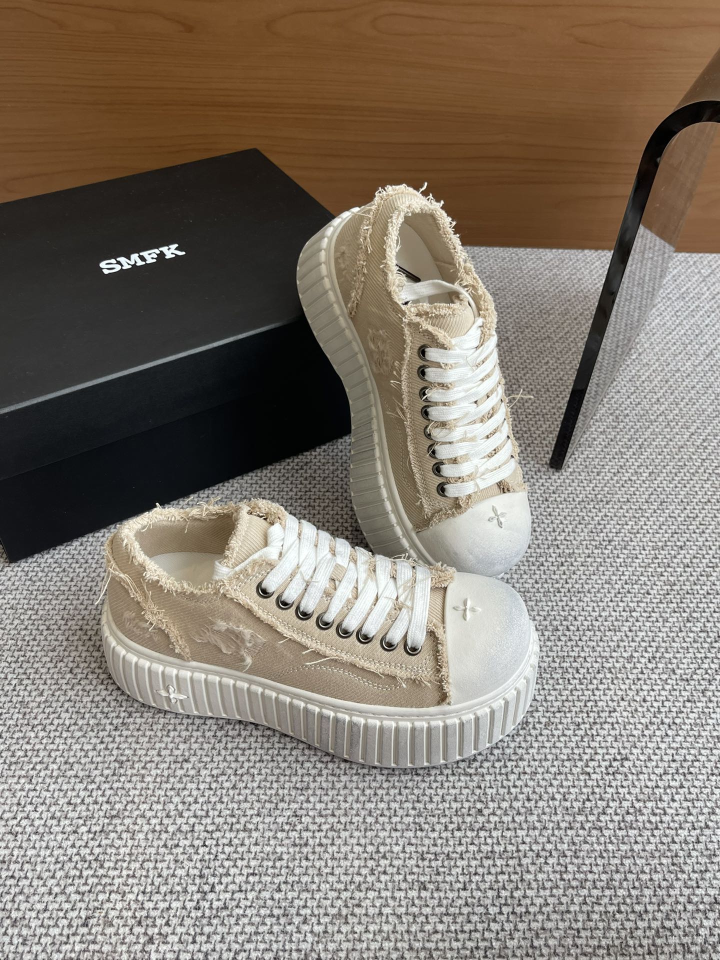 这款鞋子是AAAAA 1:1 质量 (非常棒). 使用了和原版一模一样的材料. 商标部分也保持了和SMFK一样. 图片拍摄是实物鞋子拍摄, 您所收到的实物保证和我们图片一模一样.