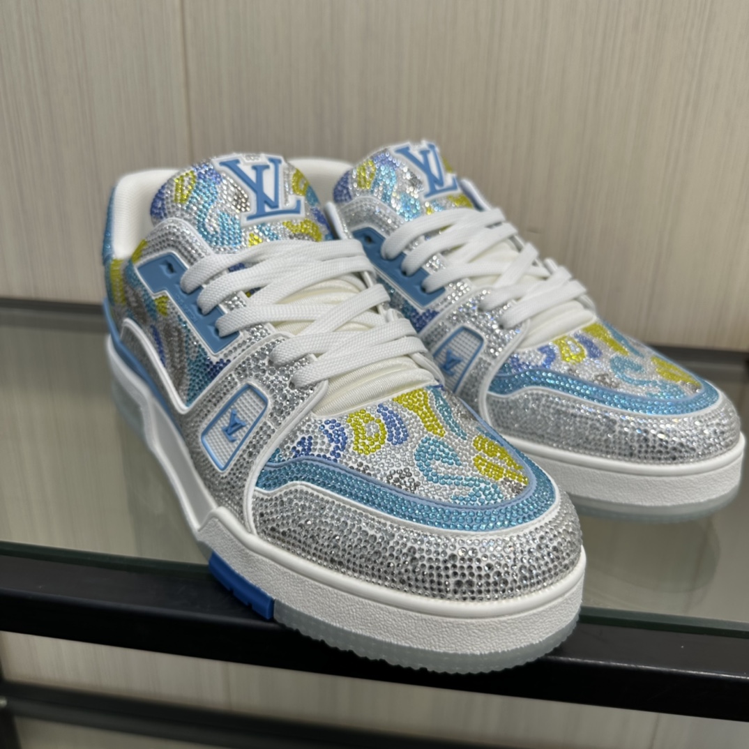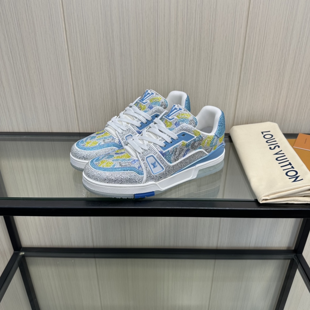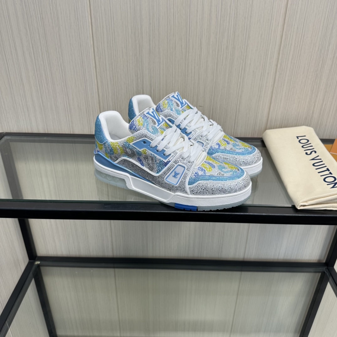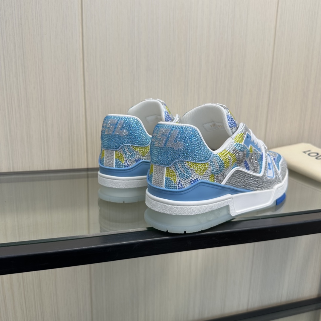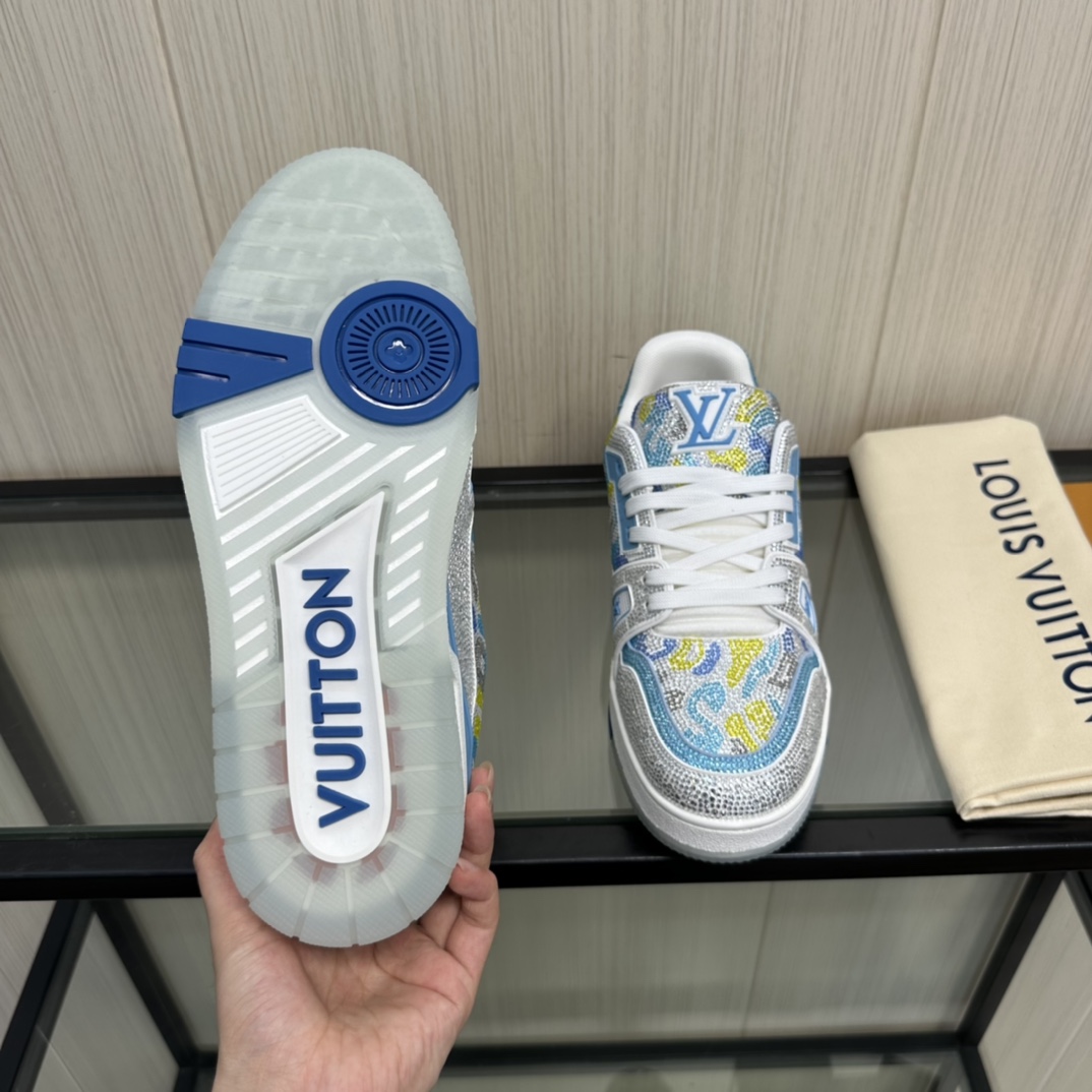 这款鞋子是AAAAA 1:1 质量 (非常棒). 使用了和原版一模一样的材料. 商标部分也保持了和路易威登/Louis Vuitton一样. 图片拍摄是实物鞋子拍摄, 您所收到的实物保证和我们图片一模一样.