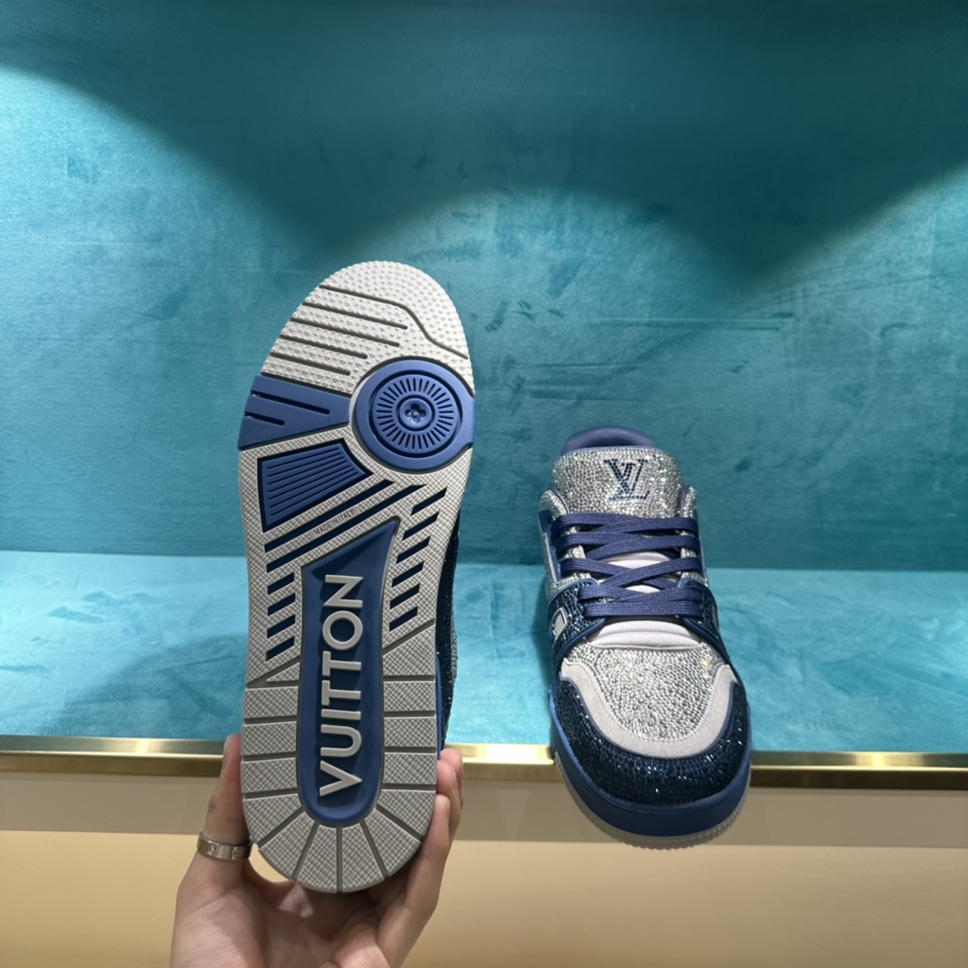 这款鞋子是AAAAA 1:1 质量 (非常棒). 使用了和原版一模一样的材料. 商标部分也保持了和路易威登/Louis Vuitton一样. 图片拍摄是实物鞋子拍摄, 您所收到的实物保证和我们图片一模一样.