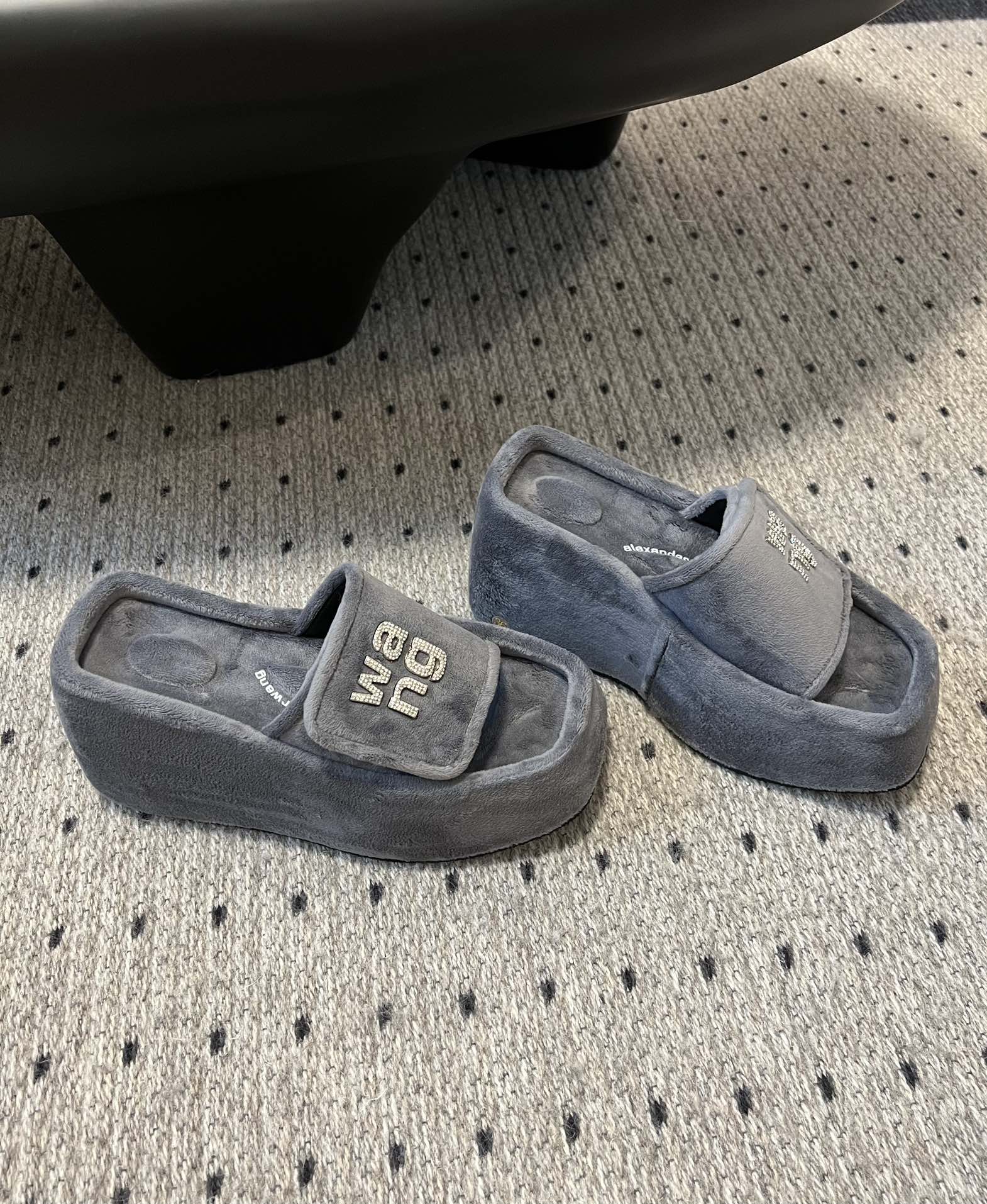 这款鞋子是AAAAA 1:1 质量 (非常棒). 使用了和原版一模一样的材料. 商标部分也保持了和亚历山大王/Alexander Wang一样. 图片拍摄是实物鞋子拍摄, 您所收到的实物保证和我们图片一模一样.