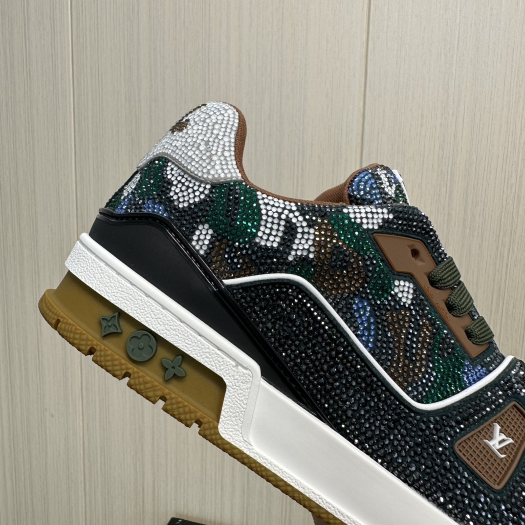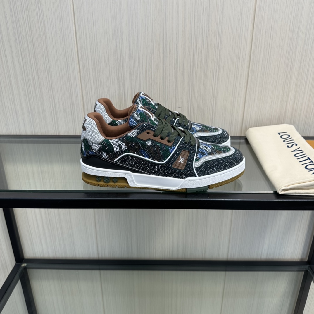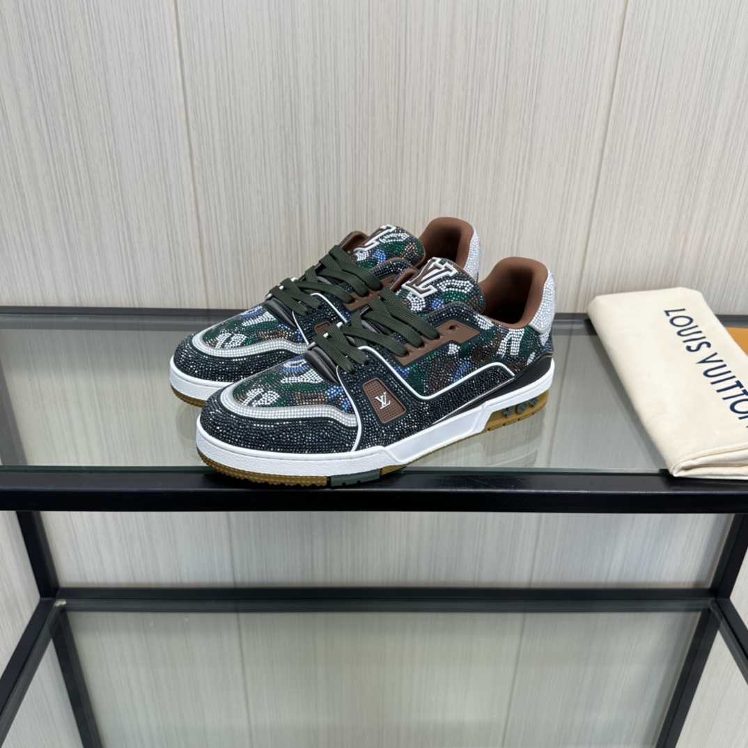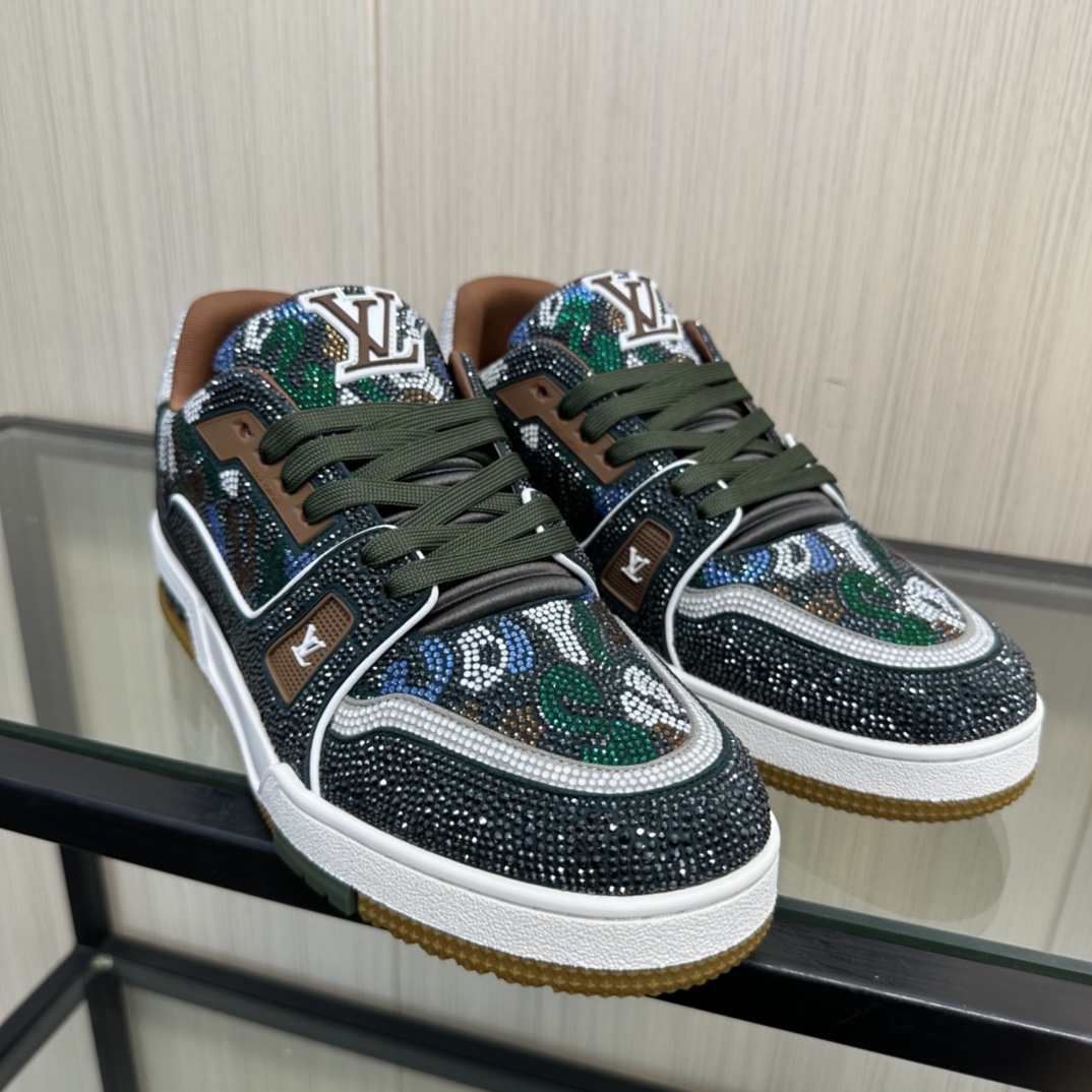 这款鞋子是AAAAA 1:1 质量 (非常棒). 使用了和原版一模一样的材料. 商标部分也保持了和路易威登/Louis Vuitton一样. 图片拍摄是实物鞋子拍摄, 您所收到的实物保证和我们图片一模一样.