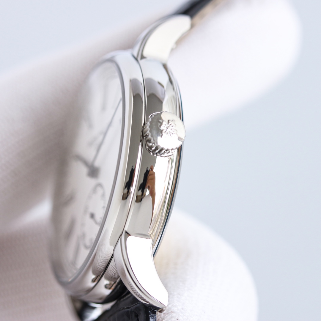 这款手表是AAAAA 1:1 质量 (非常棒). 使用了和原版一模一样的材料. 商标部分也保持了和百达翡丽/Patek Philippe一样. 图片拍摄是实物手表拍摄, 您所收到的实物保证和我们图片一模一样.