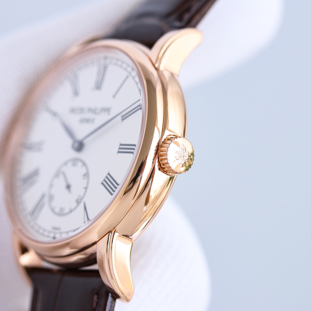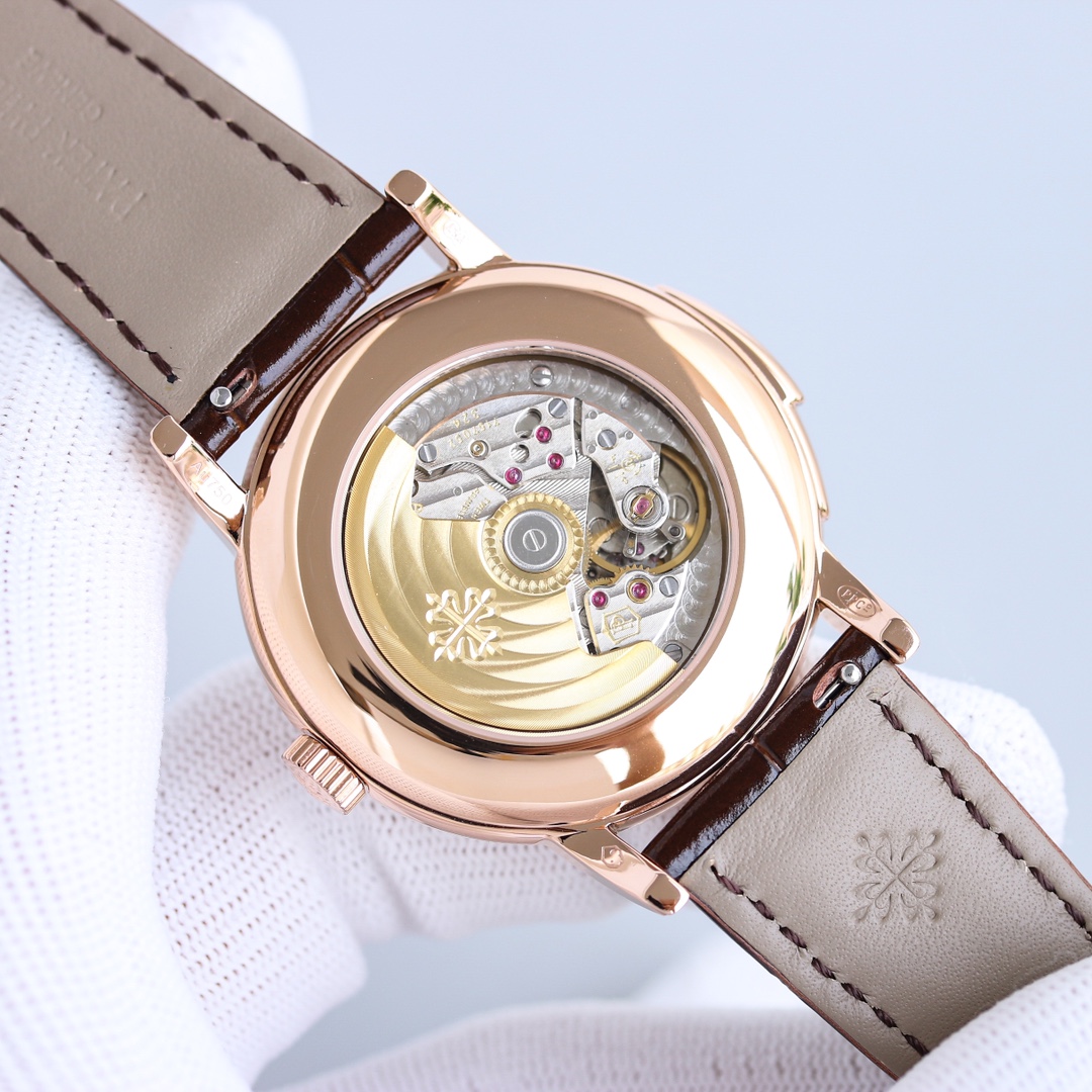 这款手表是AAAAA 1:1 质量 (非常棒). 使用了和原版一模一样的材料. 商标部分也保持了和百达翡丽/Patek Philippe一样. 图片拍摄是实物手表拍摄, 您所收到的实物保证和我们图片一模一样.