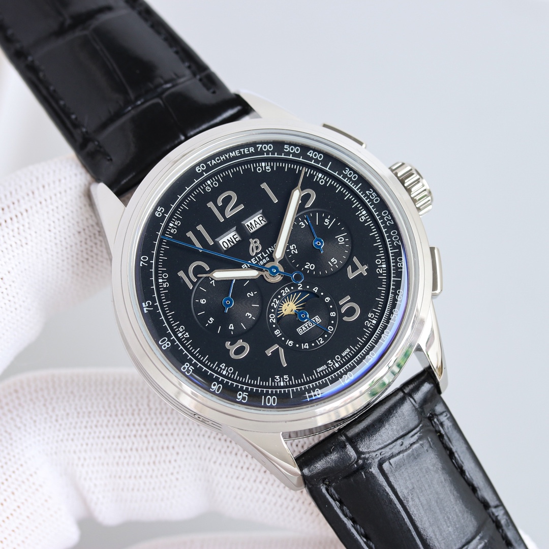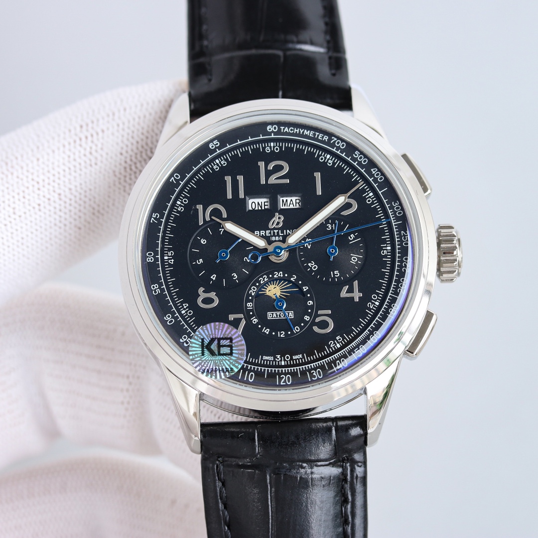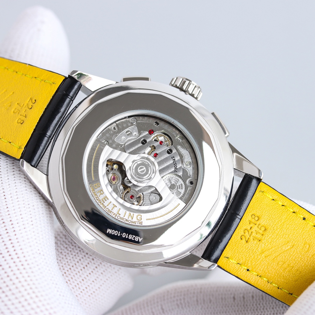 这款手表是AAAAA 1:1 质量 (非常棒). 使用了和原版一模一样的材料. 商标部分也保持了和Breitling一样. 图片拍摄是实物手表拍摄, 您所收到的实物保证和我们图片一模一样.