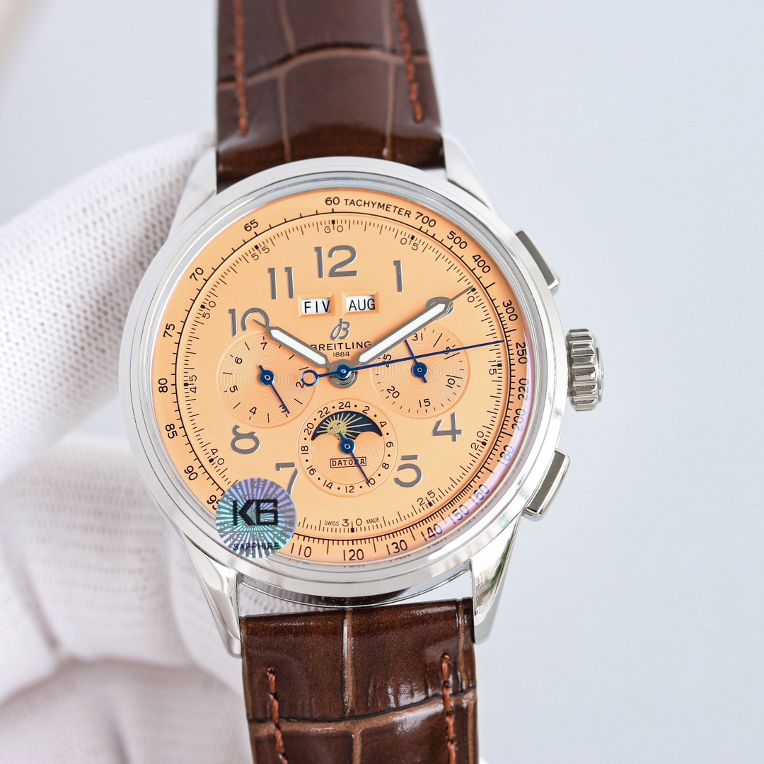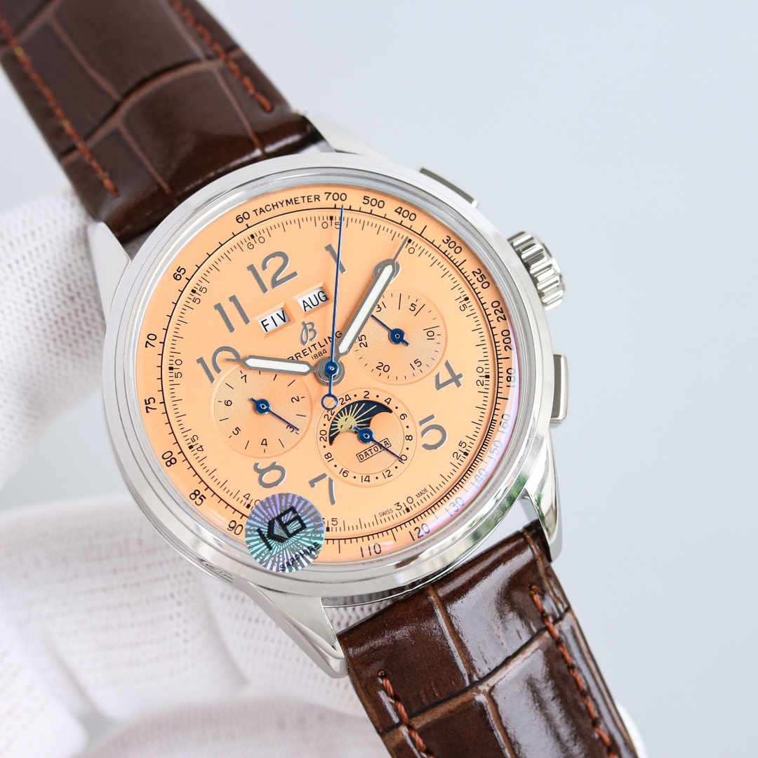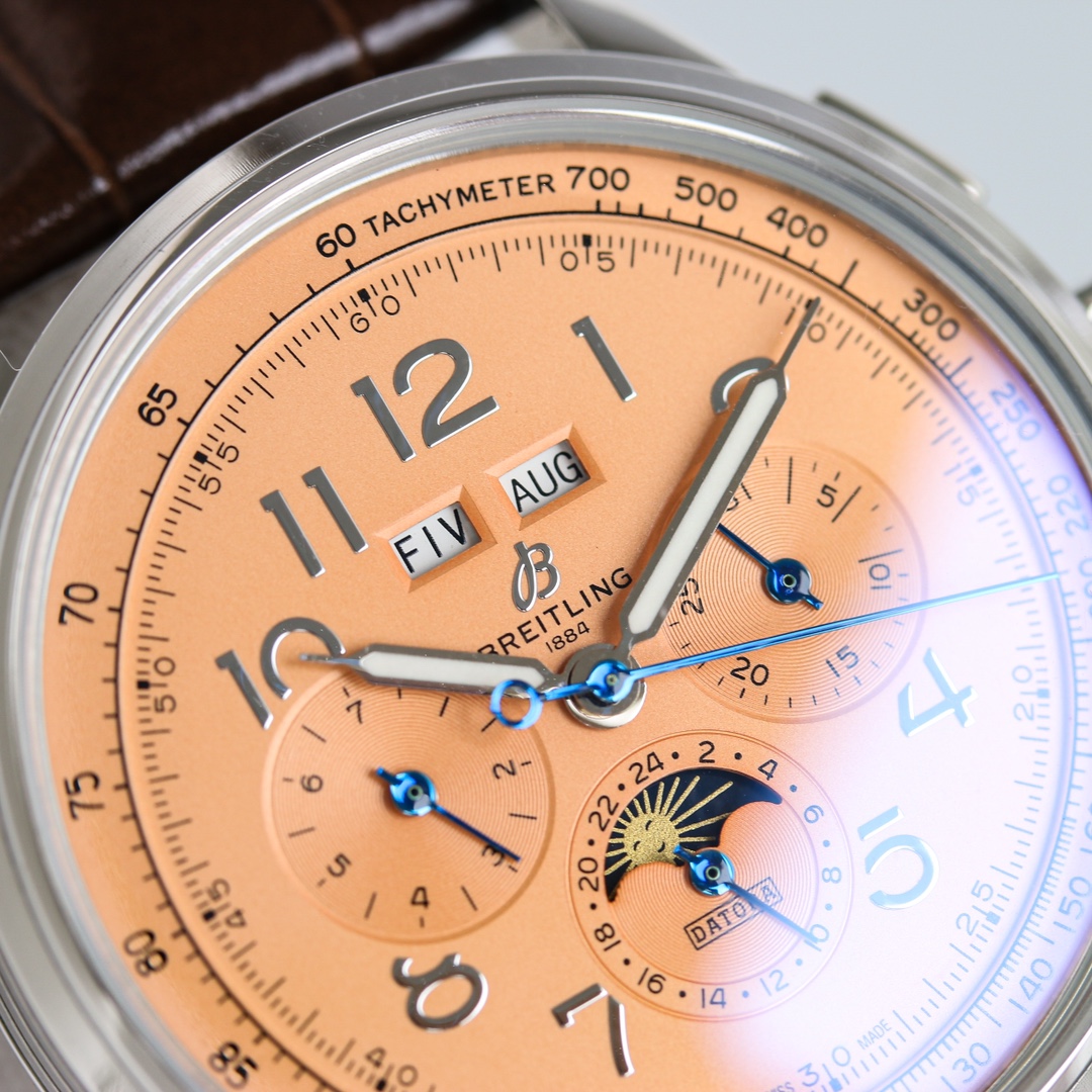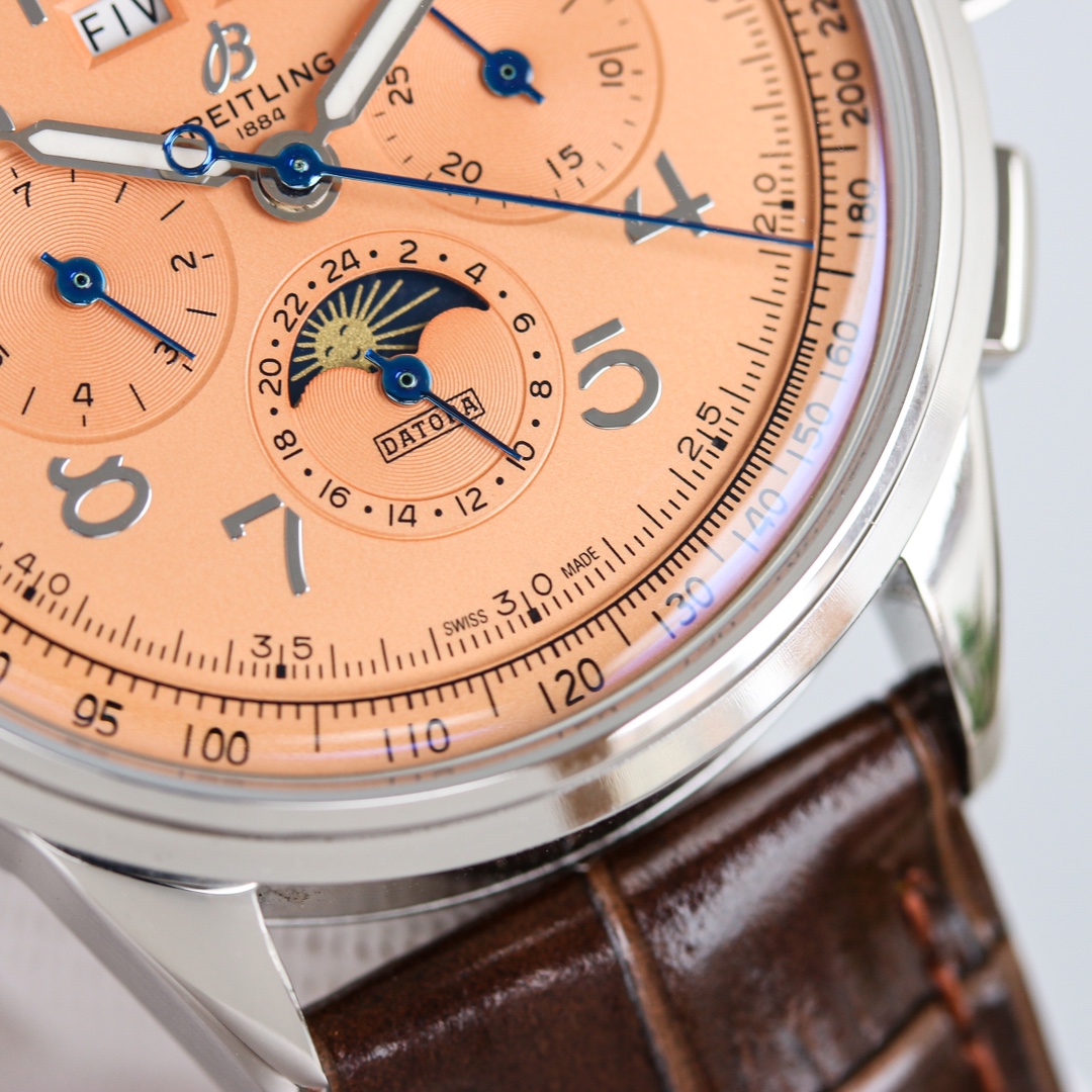 这款手表是AAAAA 1:1 质量 (非常棒). 使用了和原版一模一样的材料. 商标部分也保持了和Breitling一样. 图片拍摄是实物手表拍摄, 您所收到的实物保证和我们图片一模一样.