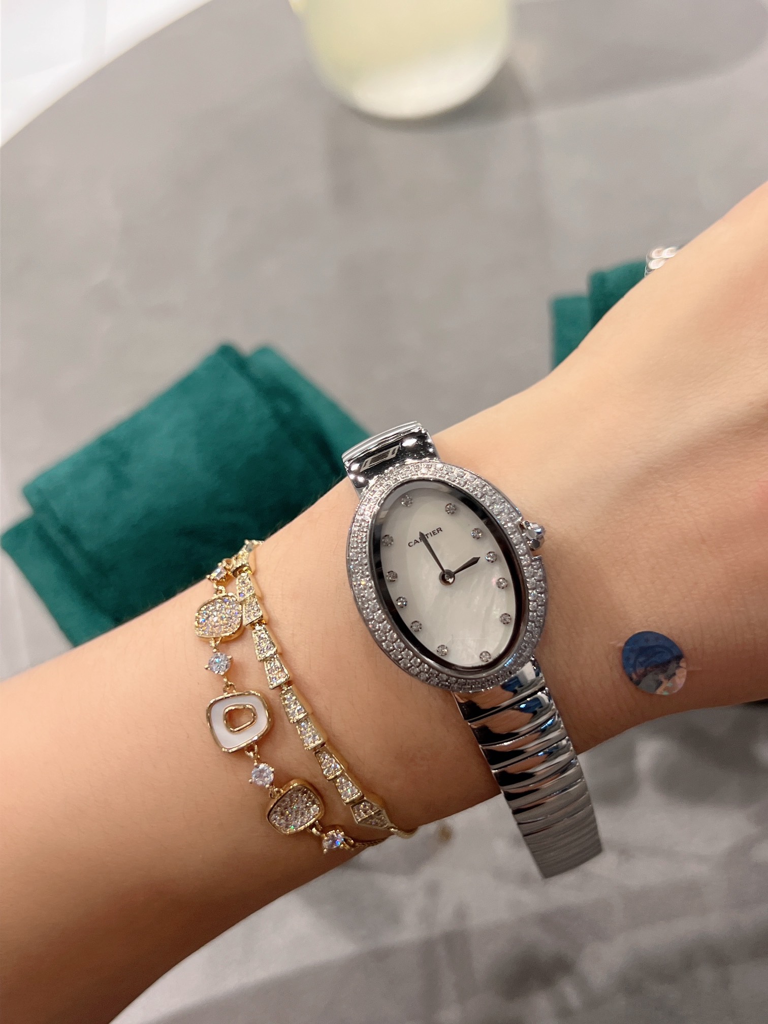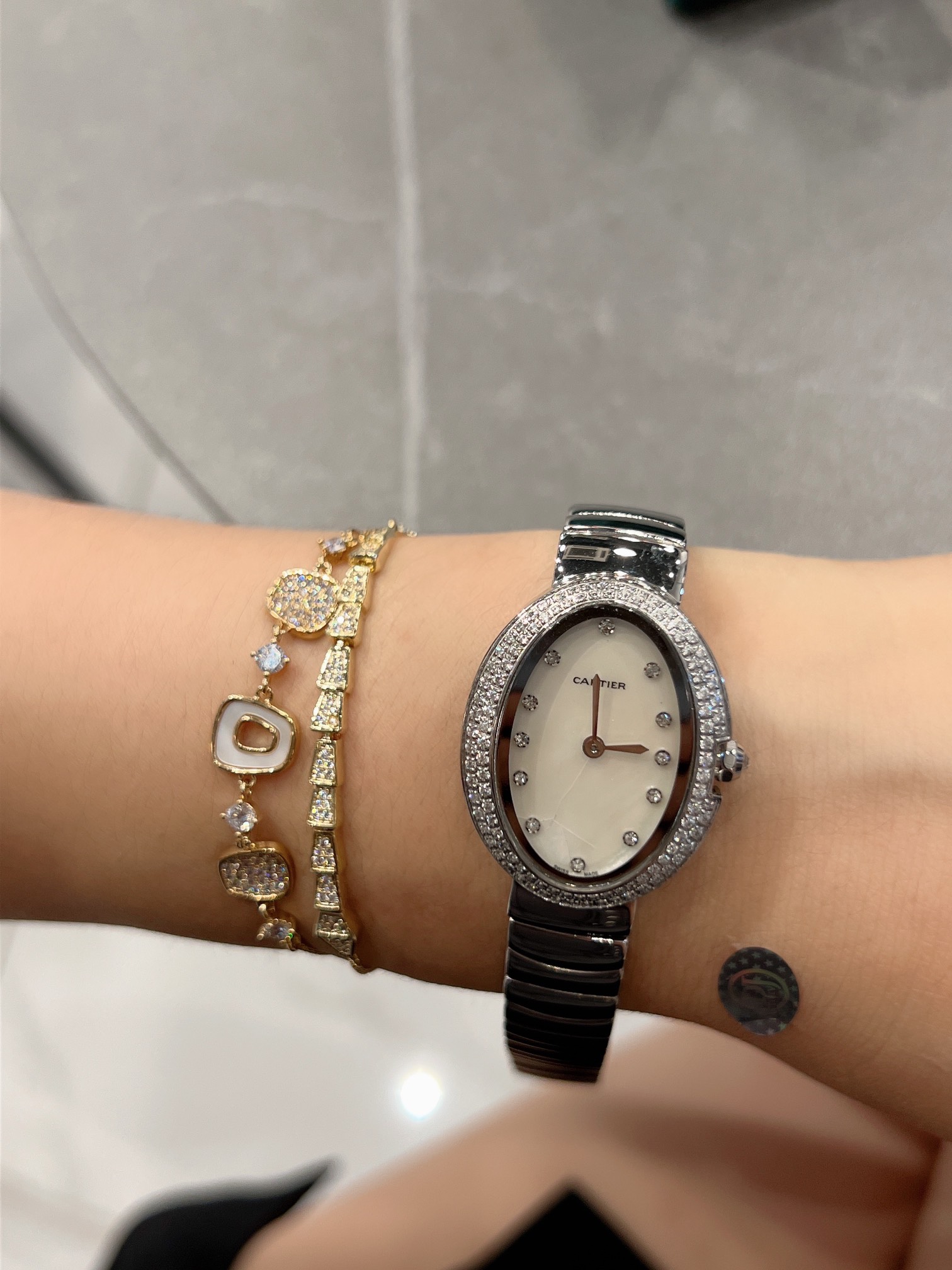 这款手表是AAAAA 1:1 质量 (非常棒). 使用了和原版一模一样的材料. 商标部分也保持了和卡地亚/Cartier一样. 图片拍摄是实物手表拍摄, 您所收到的实物保证和我们图片一模一样.