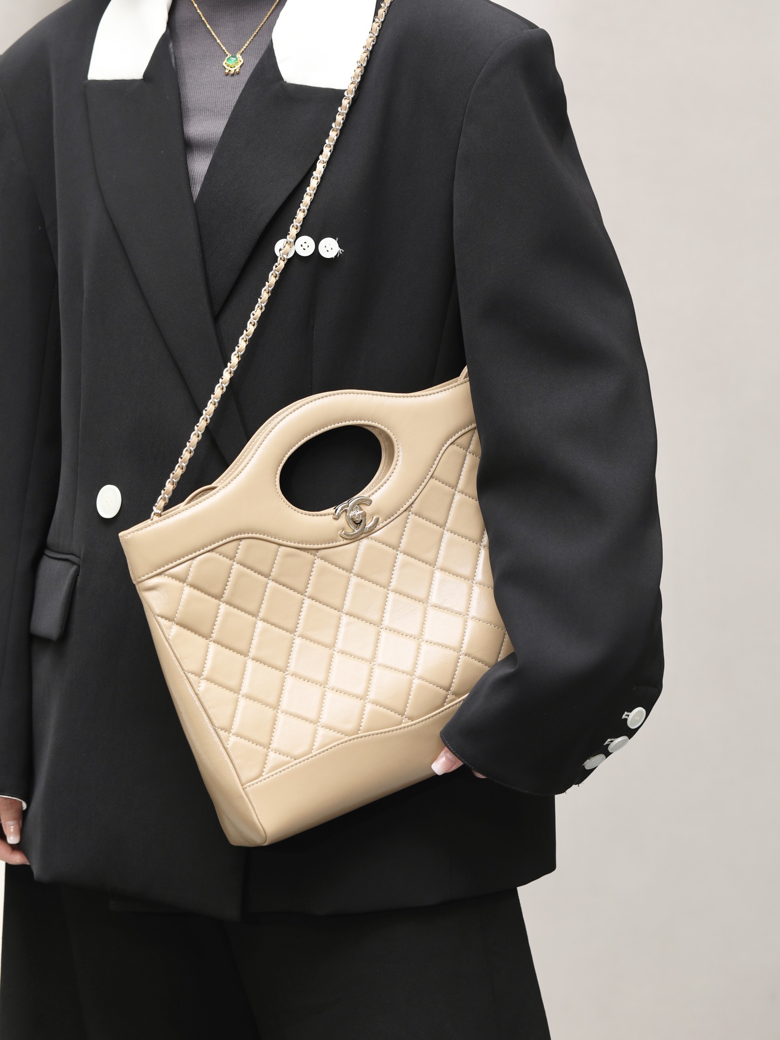 这款包包是AAAAA 1:1 质量 (非常棒). 使用了和原版一模一样的材料. 商标部分也保持了和香奈儿/Chanel一样. 图片拍摄是实物包包拍摄, 您所收到的实物保证和我们图片一模一样.