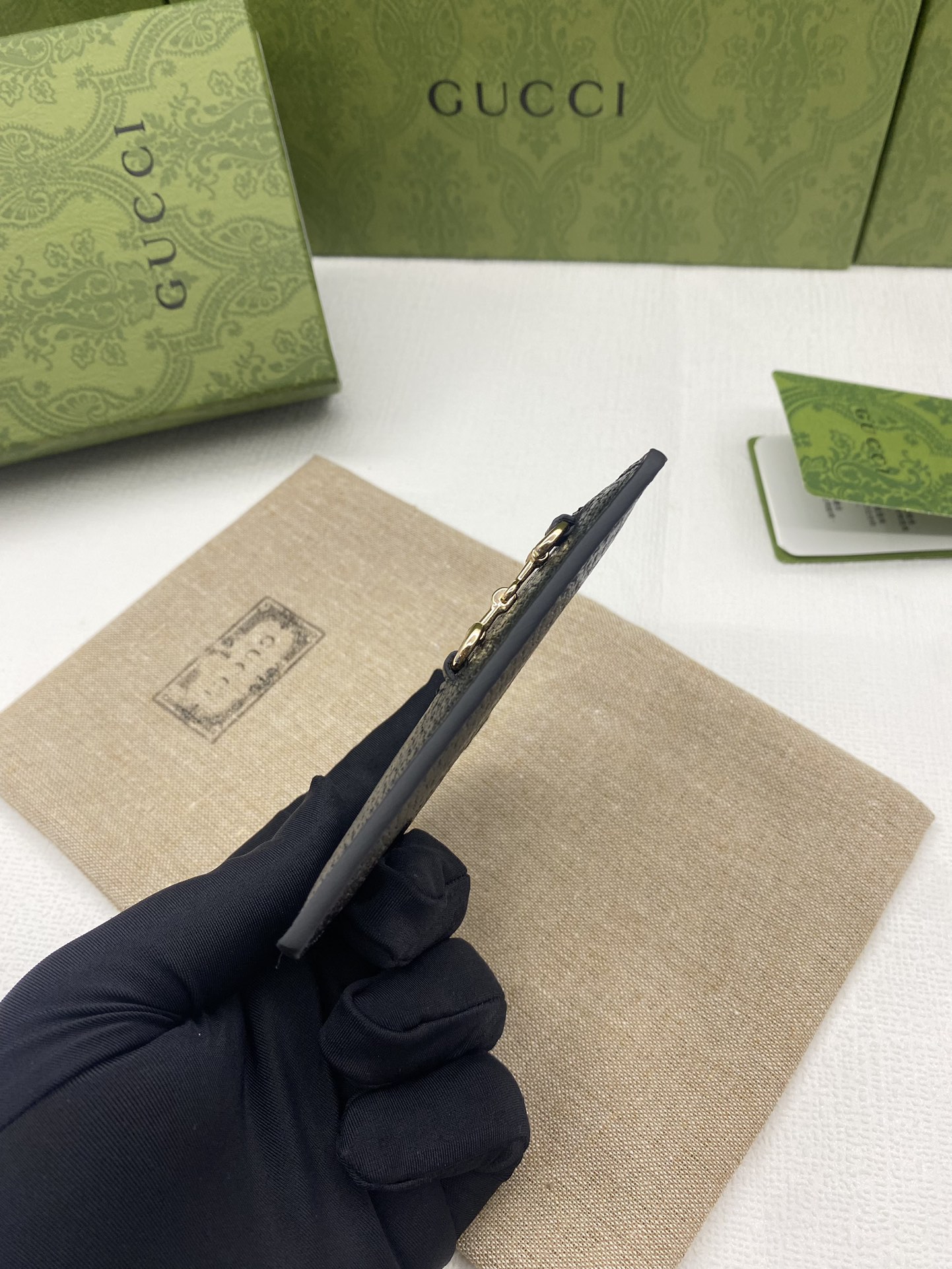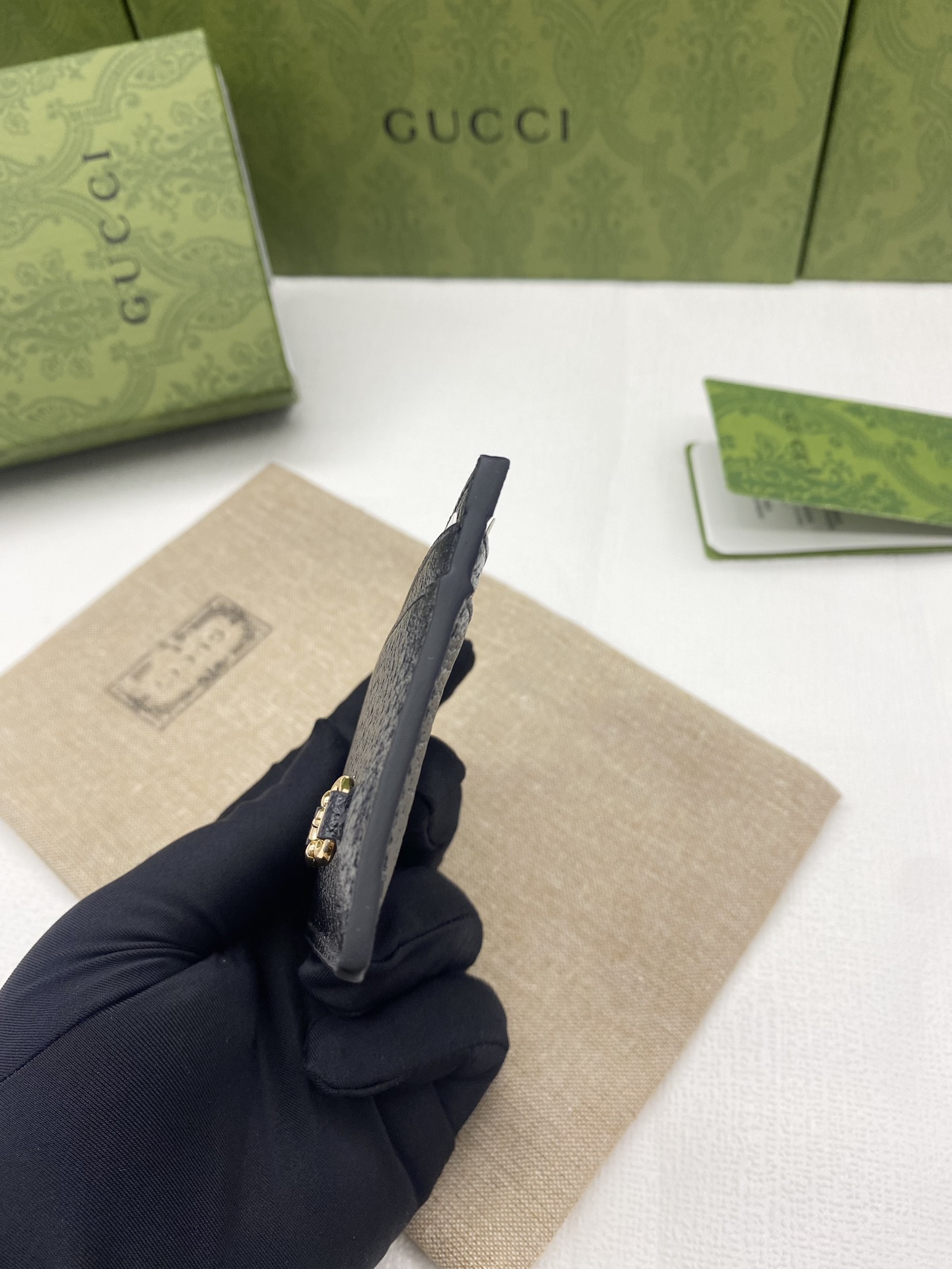 这款钱包是AAAAA 1:1 质量 (非常棒). 使用了和原版一模一样的材料. 商标部分也保持了和古奇/Gucci一样. 图片拍摄是实物钱包拍摄, 您所收到的实物保证和我们图片一模一样.