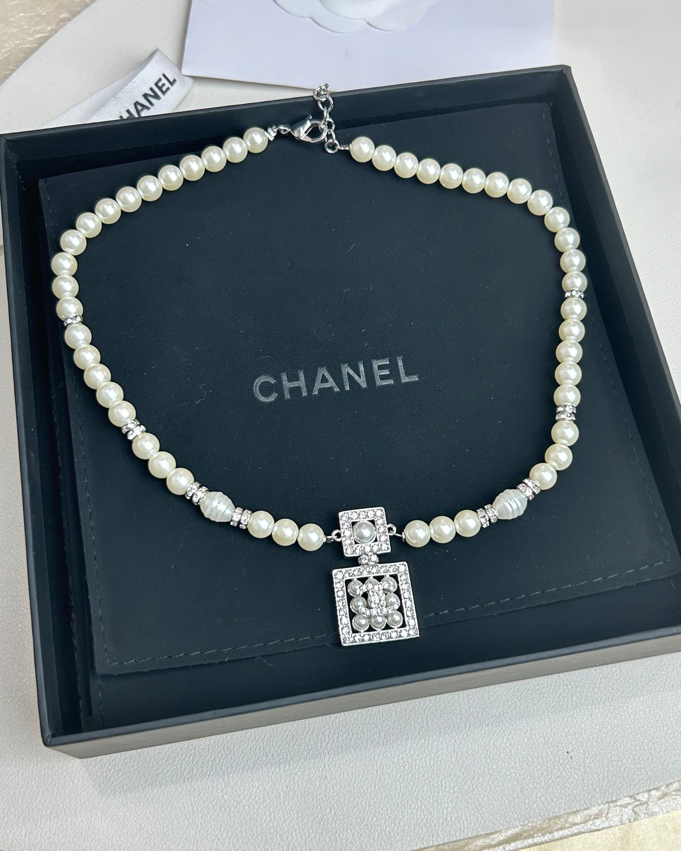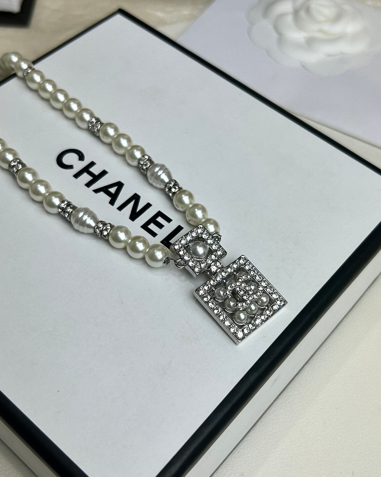 这款首饰是AAAAA 1:1 质量 (非常棒). 使用了和原版一模一样的材料. 商标部分也保持了和香奈儿/Chanel一样. 图片拍摄是实物首饰拍摄, 您所收到的实物保证和我们图片一模一样.