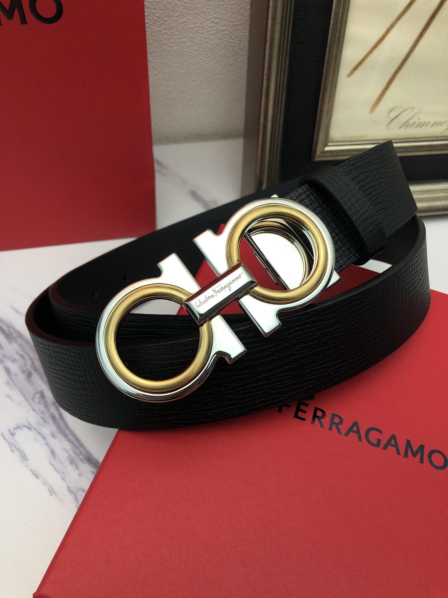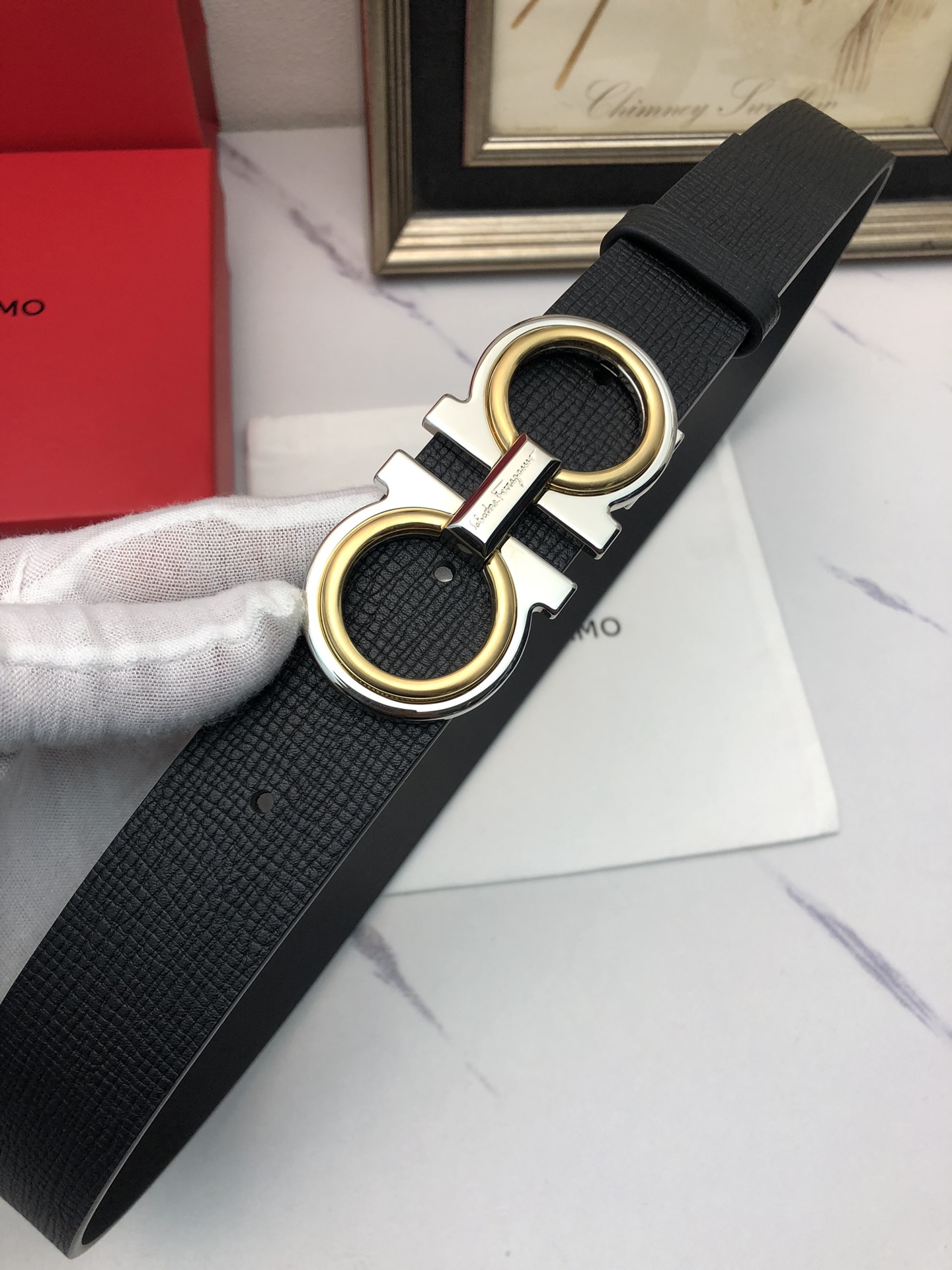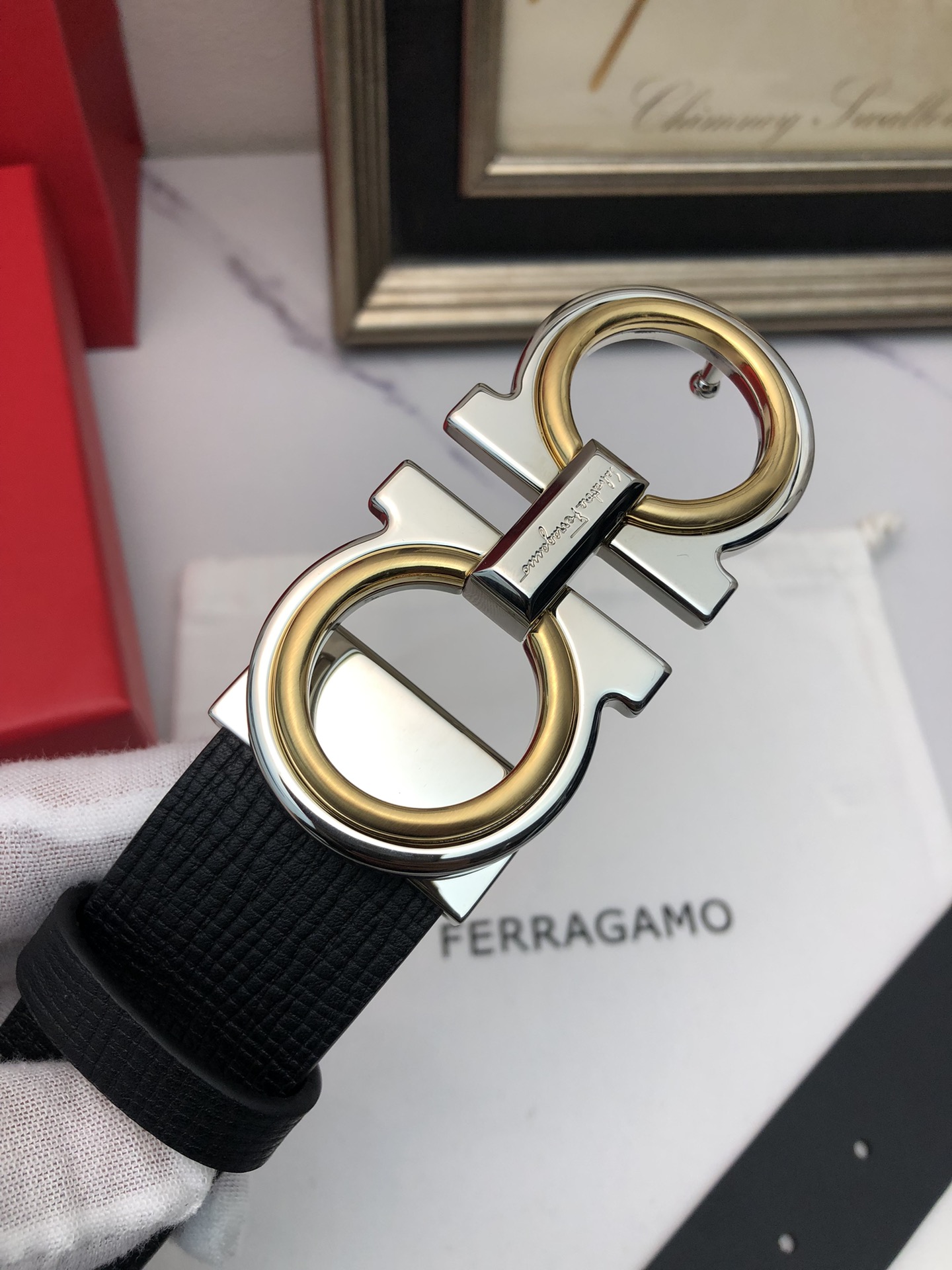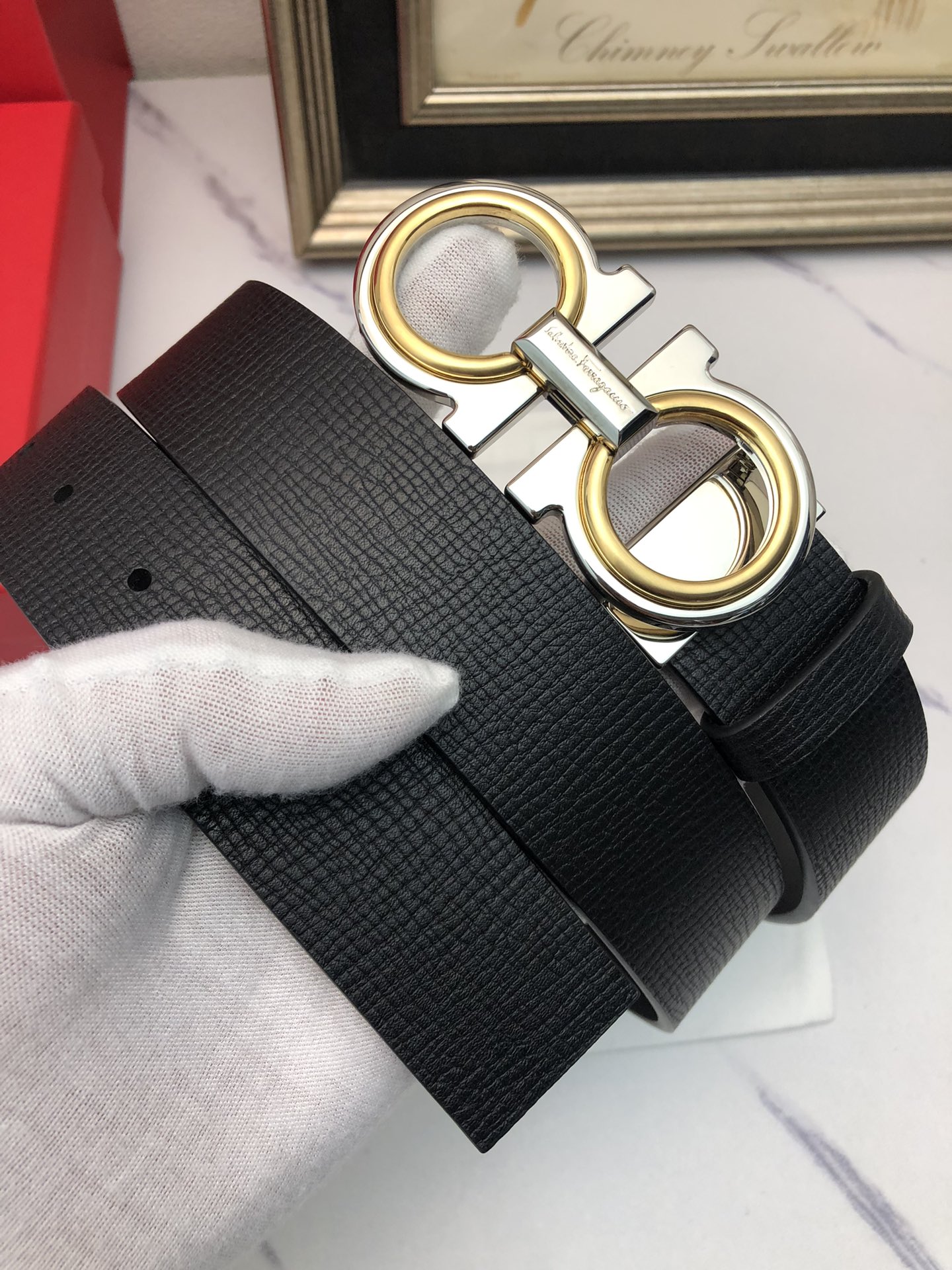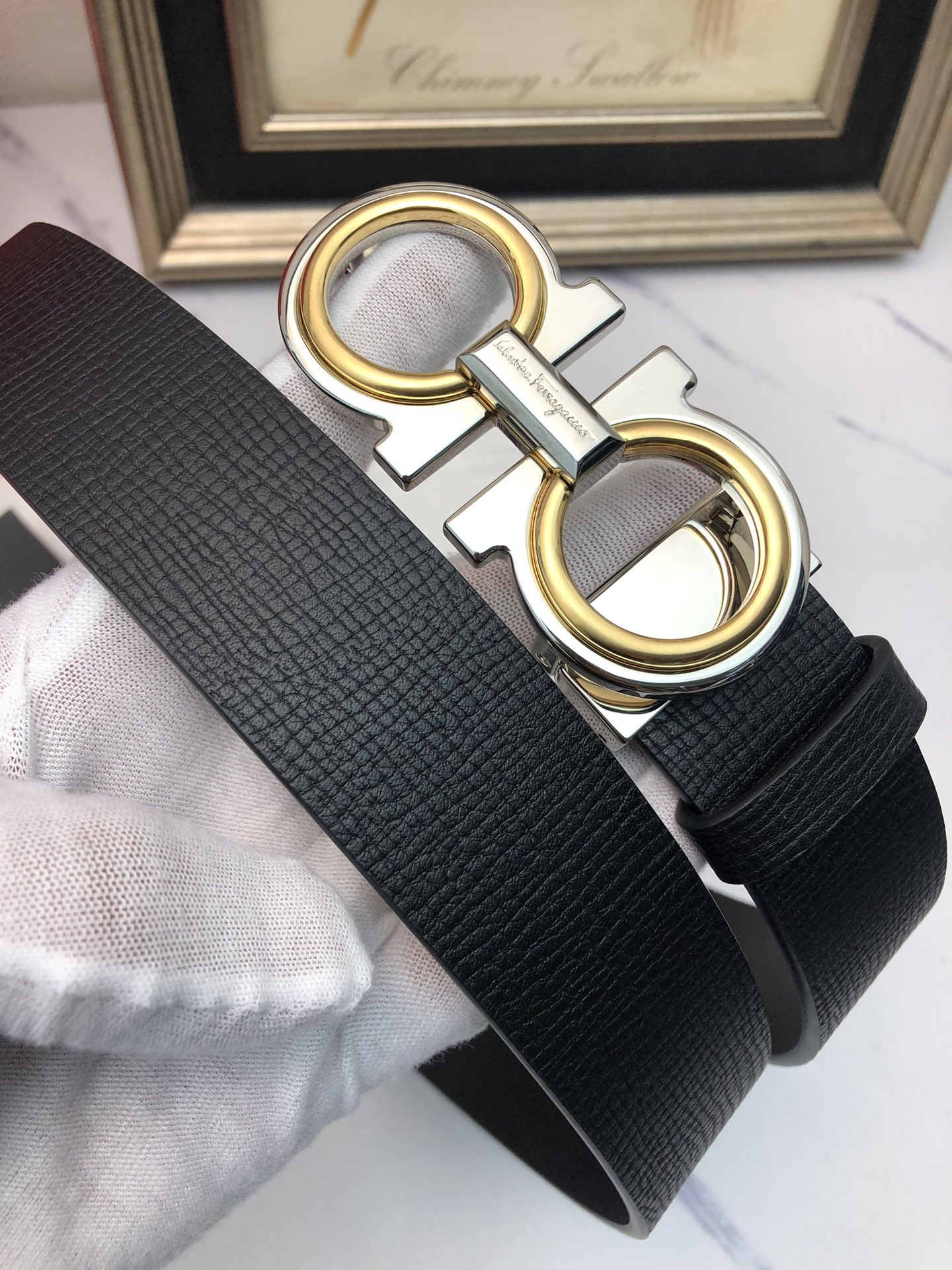 这款皮带是AAAAA 1:1 质量 (非常棒). 使用了和原版一模一样的材料. 商标部分也保持了和菲拉格慕/Salvatore Ferragamo一样. 图片拍摄是实物皮带拍摄, 您所收到的实物保证和我们图片一模一样.