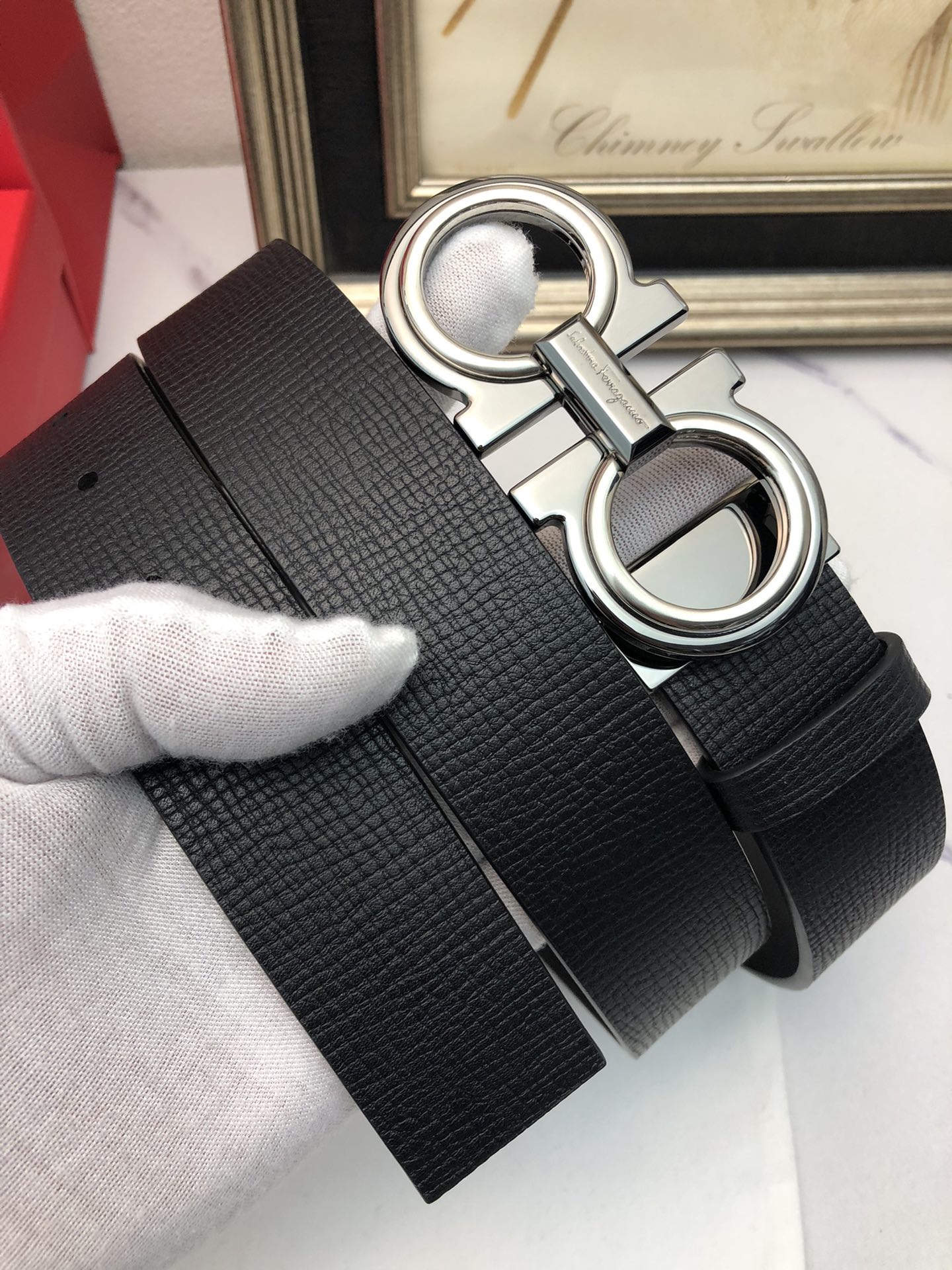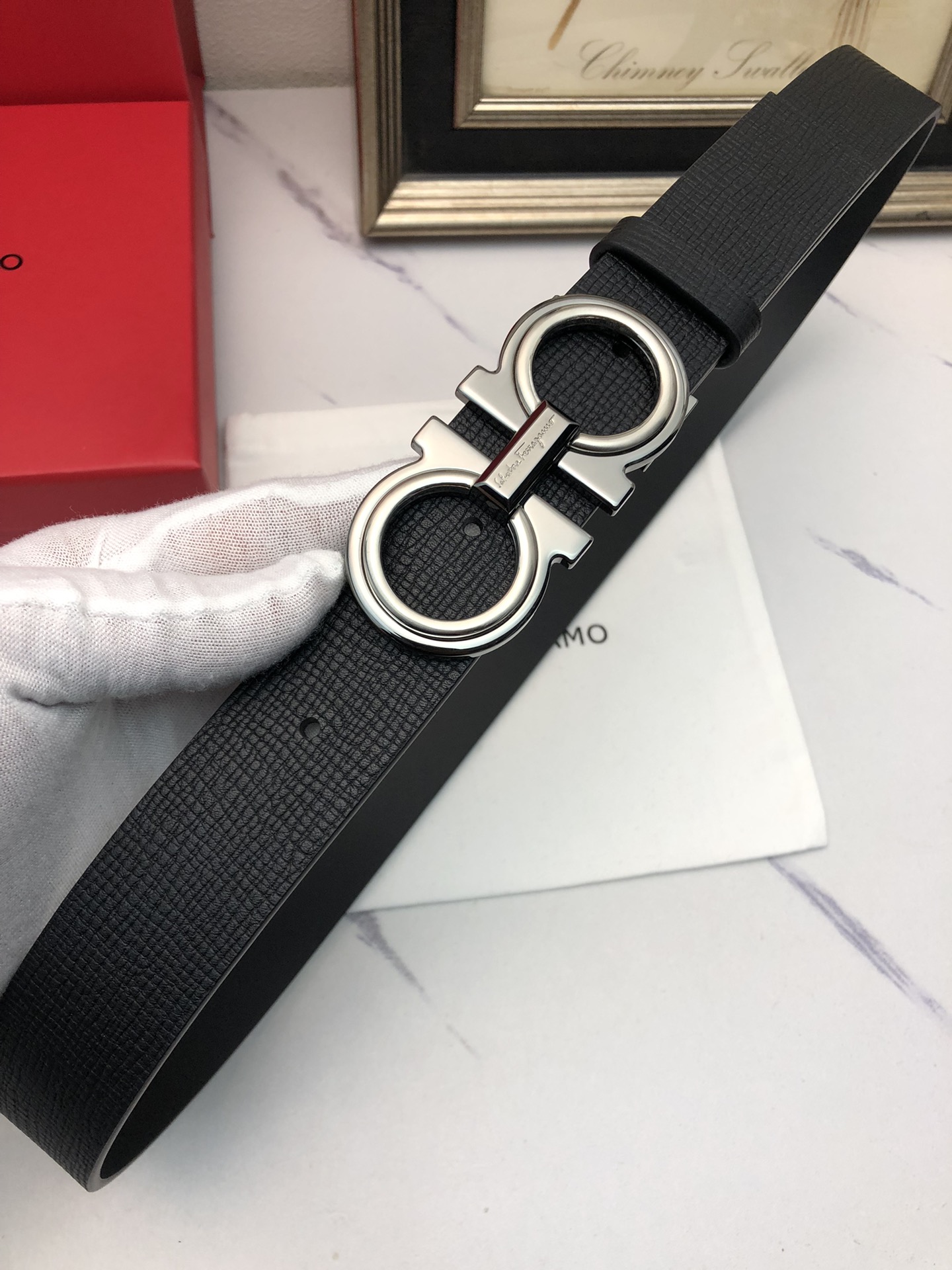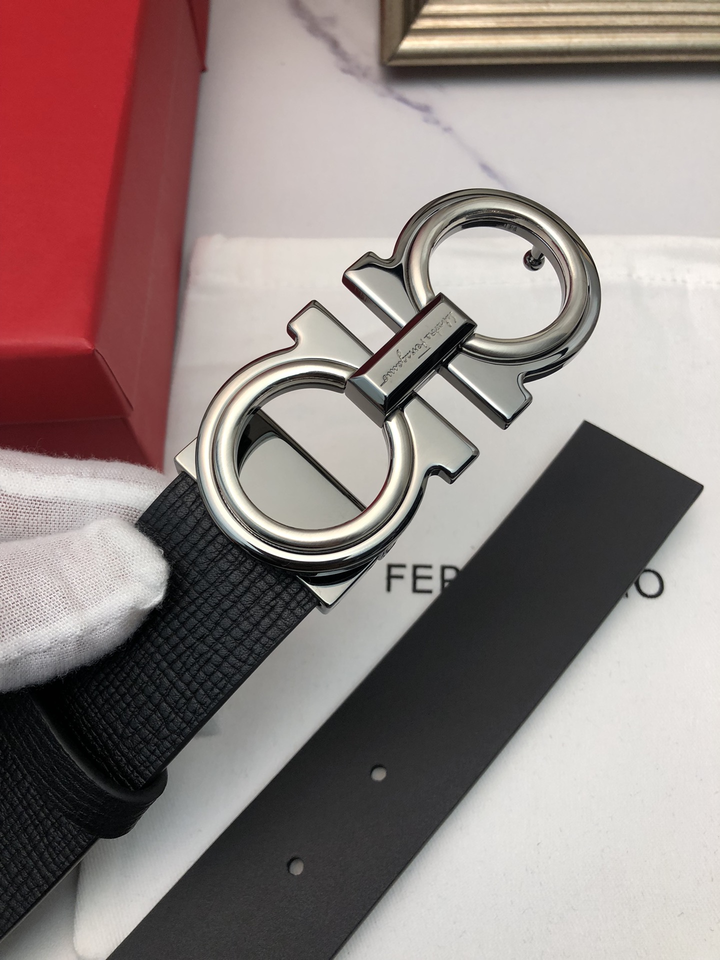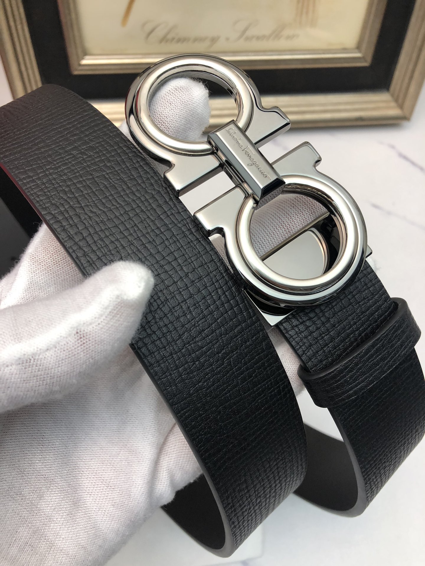 这款皮带是AAAAA 1:1 质量 (非常棒). 使用了和原版一模一样的材料. 商标部分也保持了和菲拉格慕/Salvatore Ferragamo一样. 图片拍摄是实物皮带拍摄, 您所收到的实物保证和我们图片一模一样.