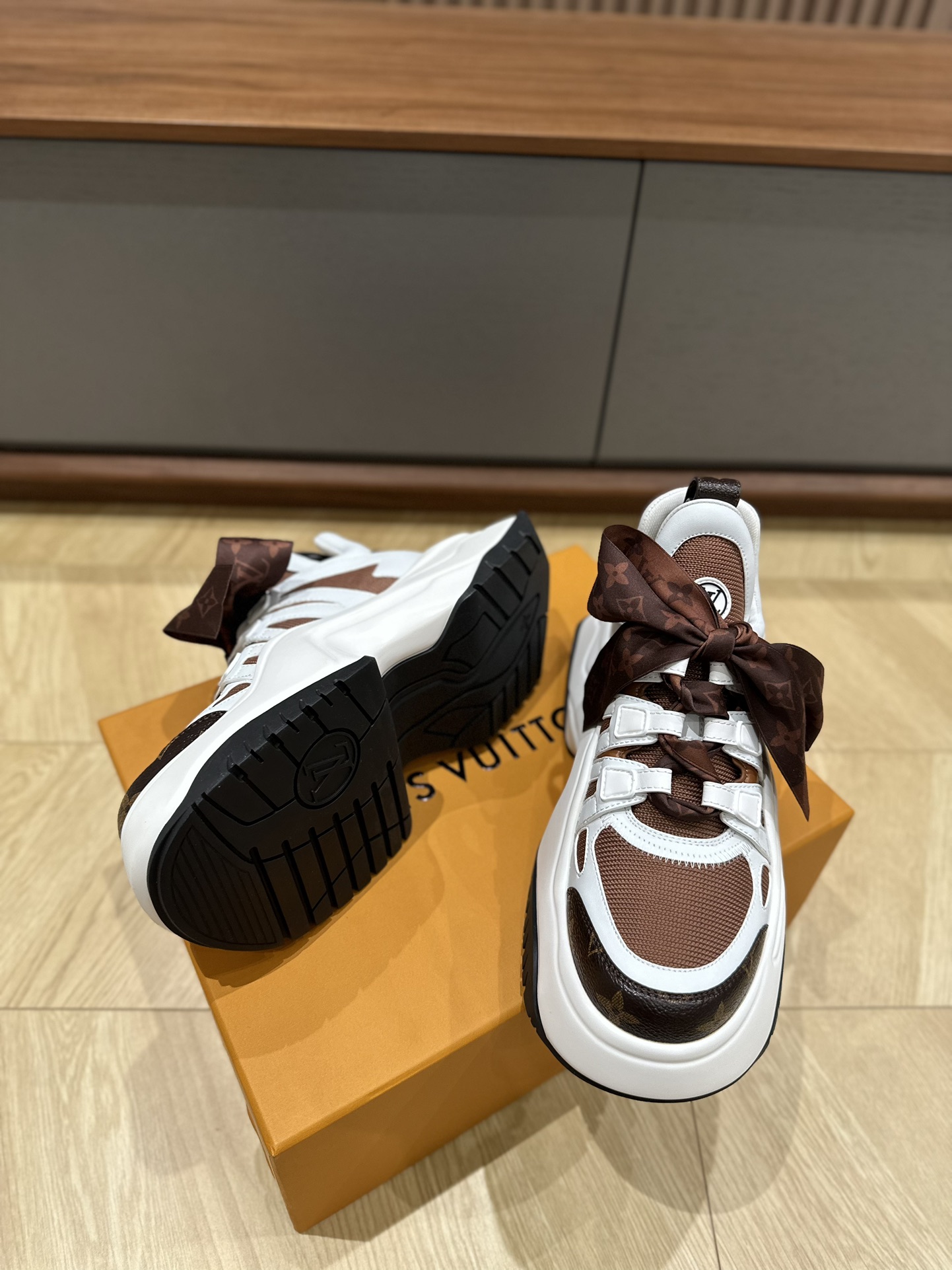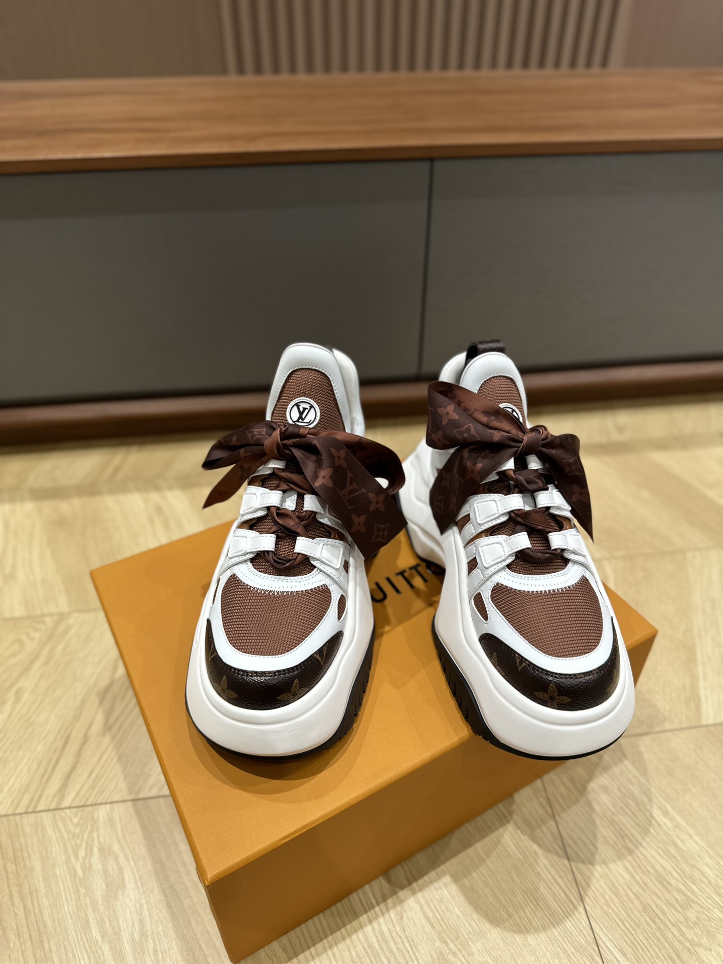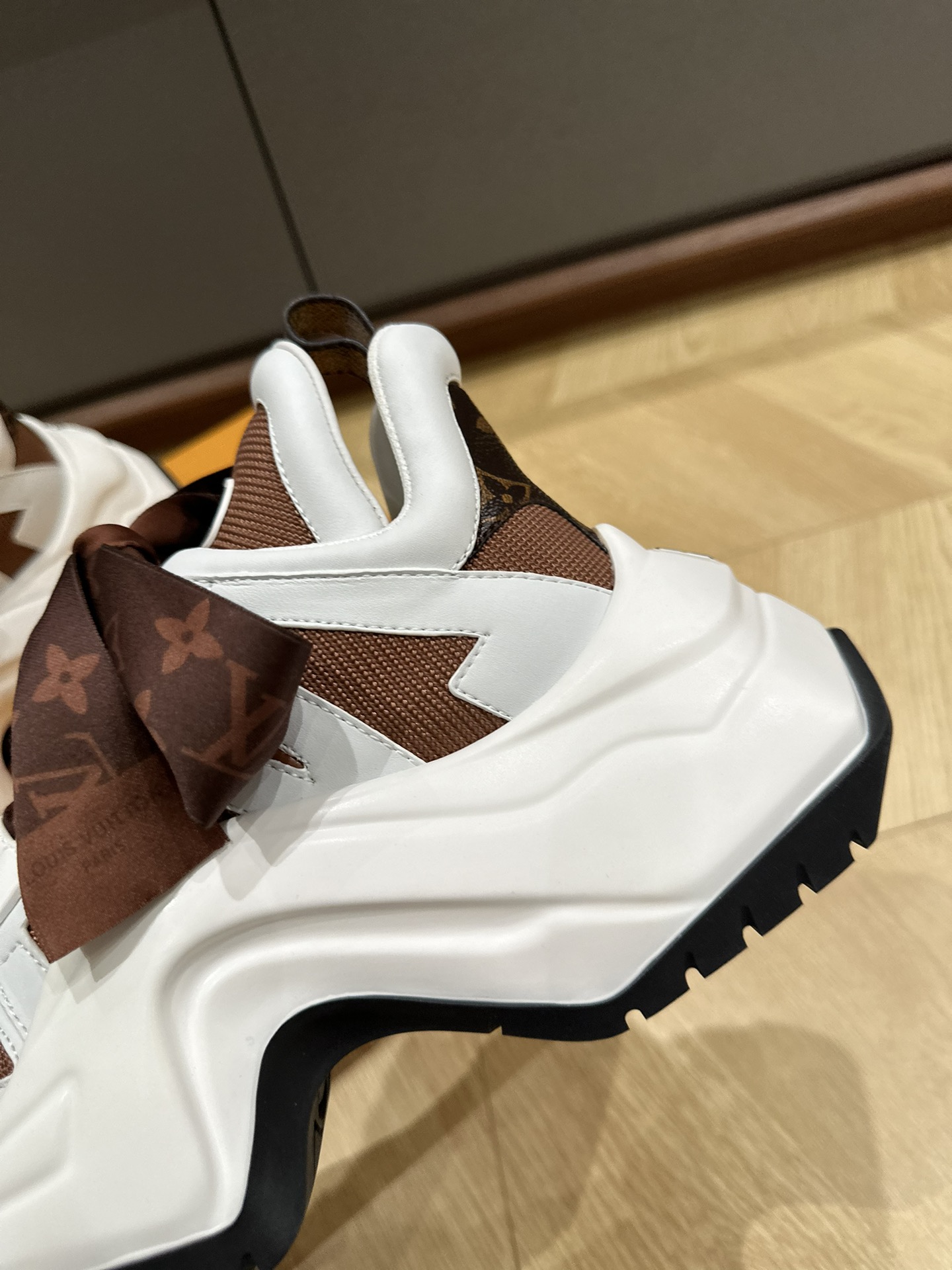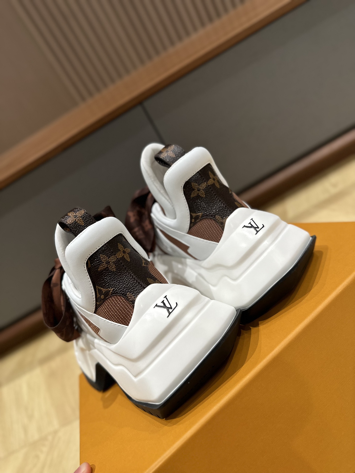 这款鞋子是AAAAA 1:1 质量 (非常棒). 使用了和原版一模一样的材料. 商标部分也保持了和路易威登/Louis Vuitton一样. 图片拍摄是实物鞋子拍摄, 您所收到的实物保证和我们图片一模一样.