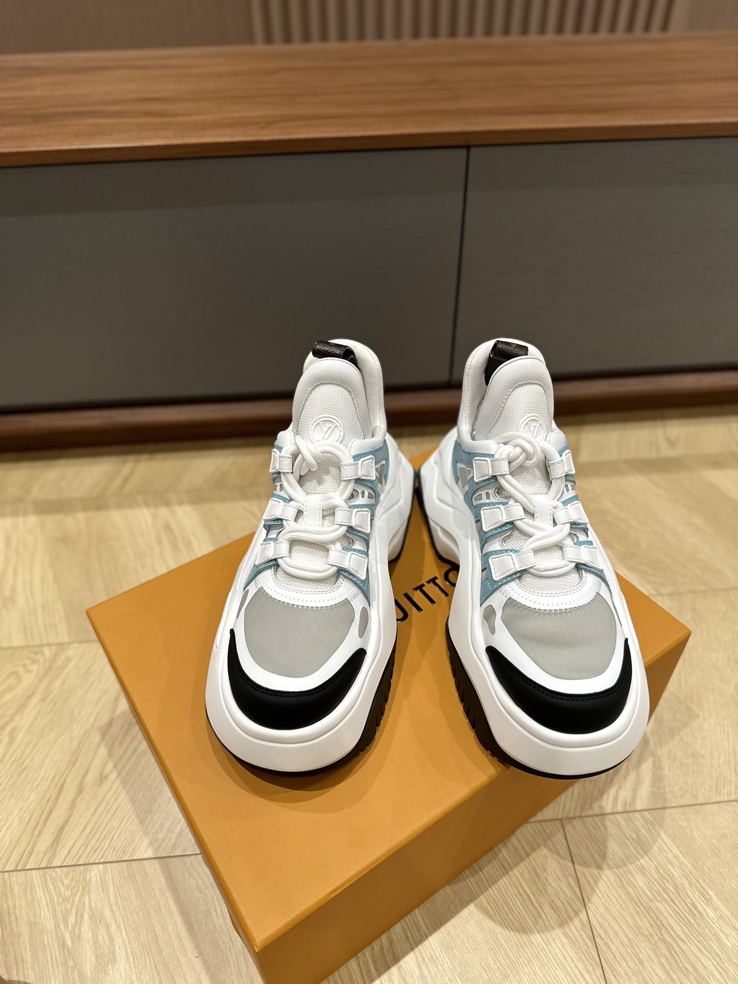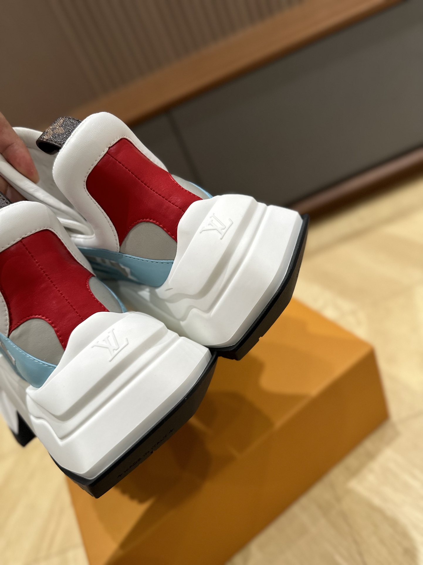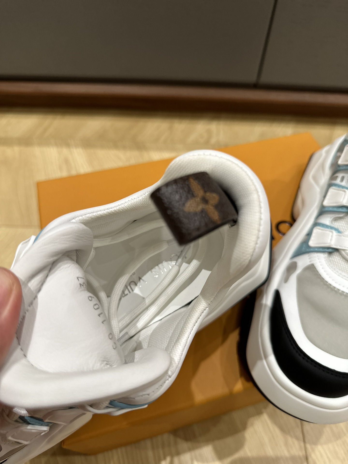 这款鞋子是AAAAA 1:1 质量 (非常棒). 使用了和原版一模一样的材料. 商标部分也保持了和路易威登/Louis Vuitton一样. 图片拍摄是实物鞋子拍摄, 您所收到的实物保证和我们图片一模一样.