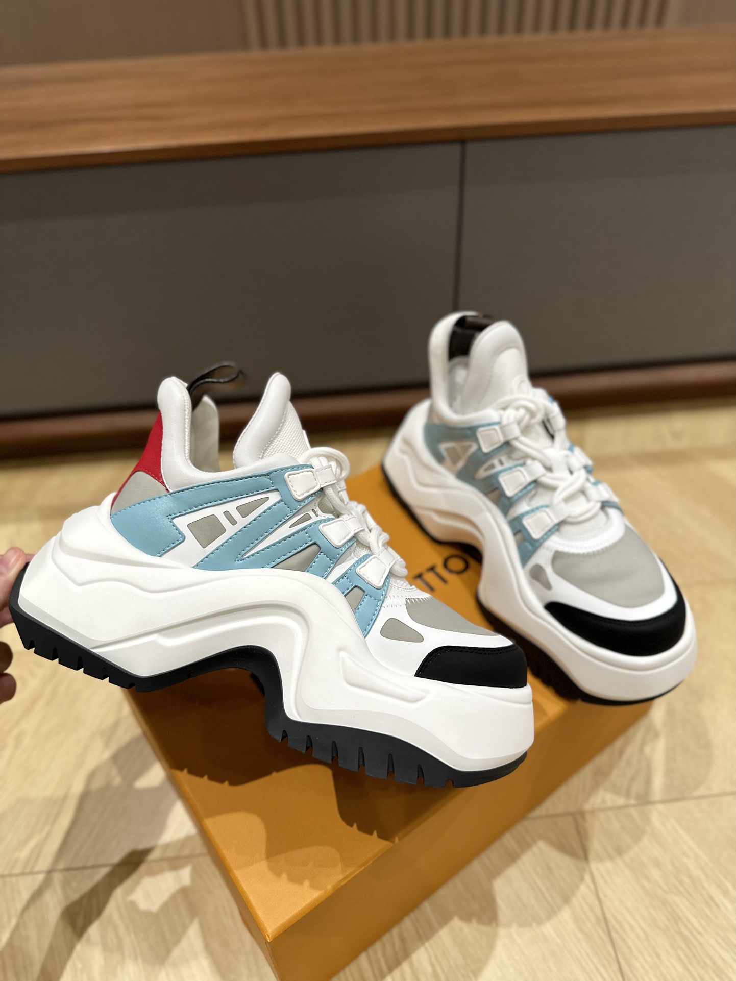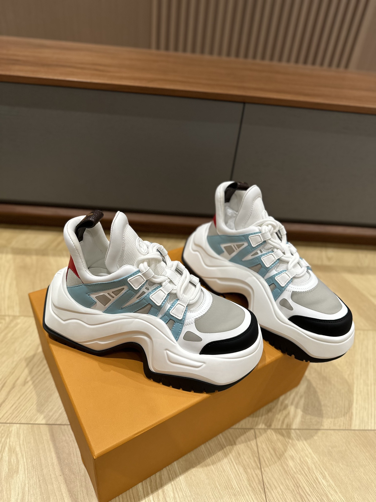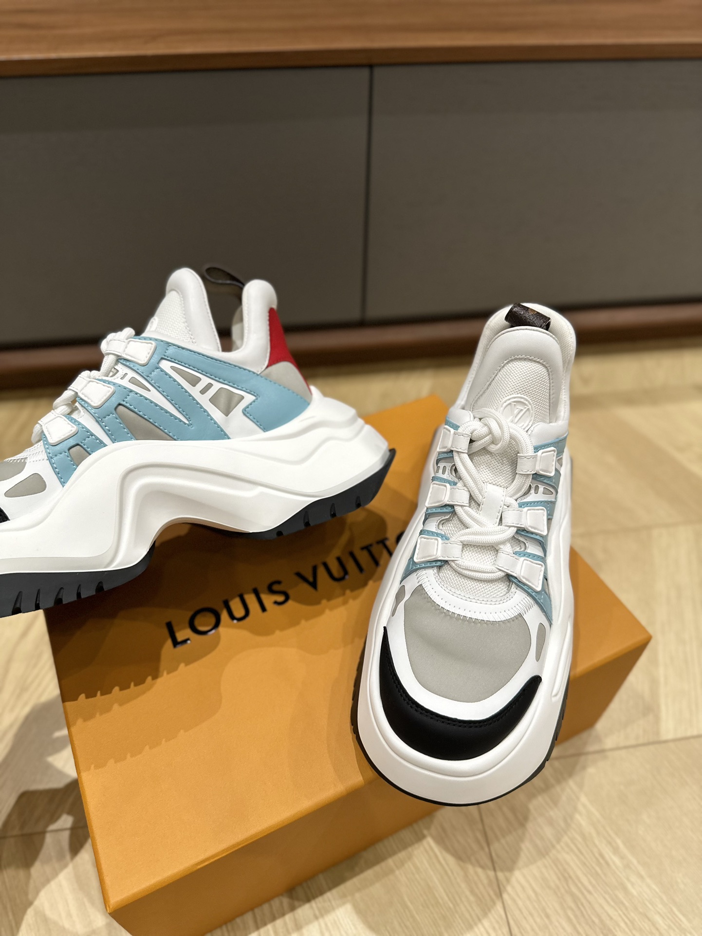 这款鞋子是AAAAA 1:1 质量 (非常棒). 使用了和原版一模一样的材料. 商标部分也保持了和路易威登/Louis Vuitton一样. 图片拍摄是实物鞋子拍摄, 您所收到的实物保证和我们图片一模一样.