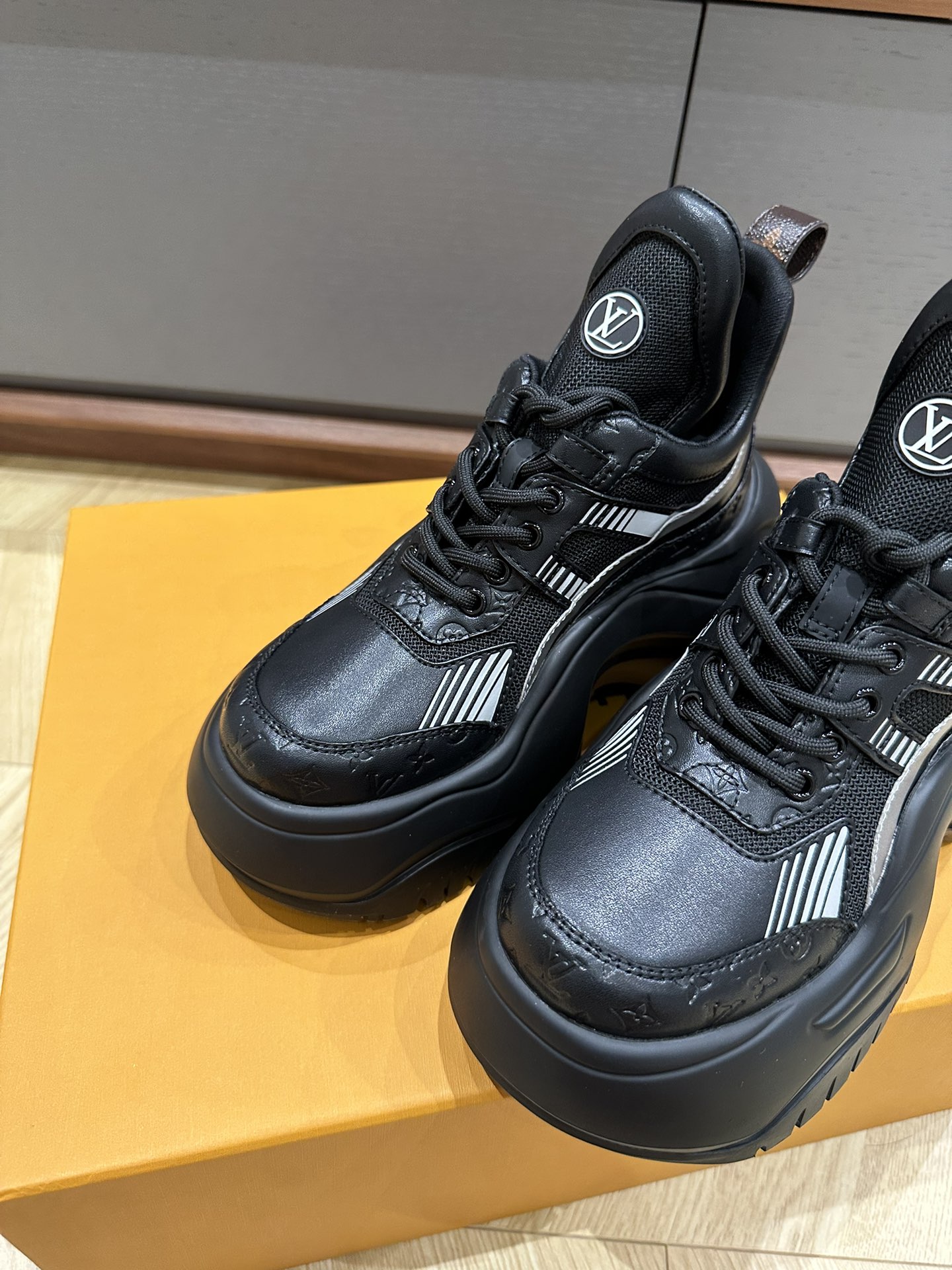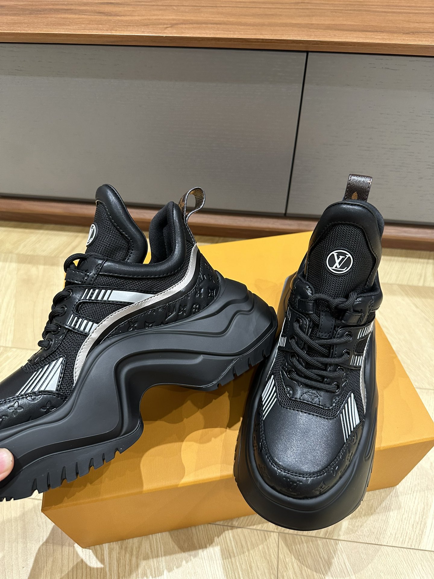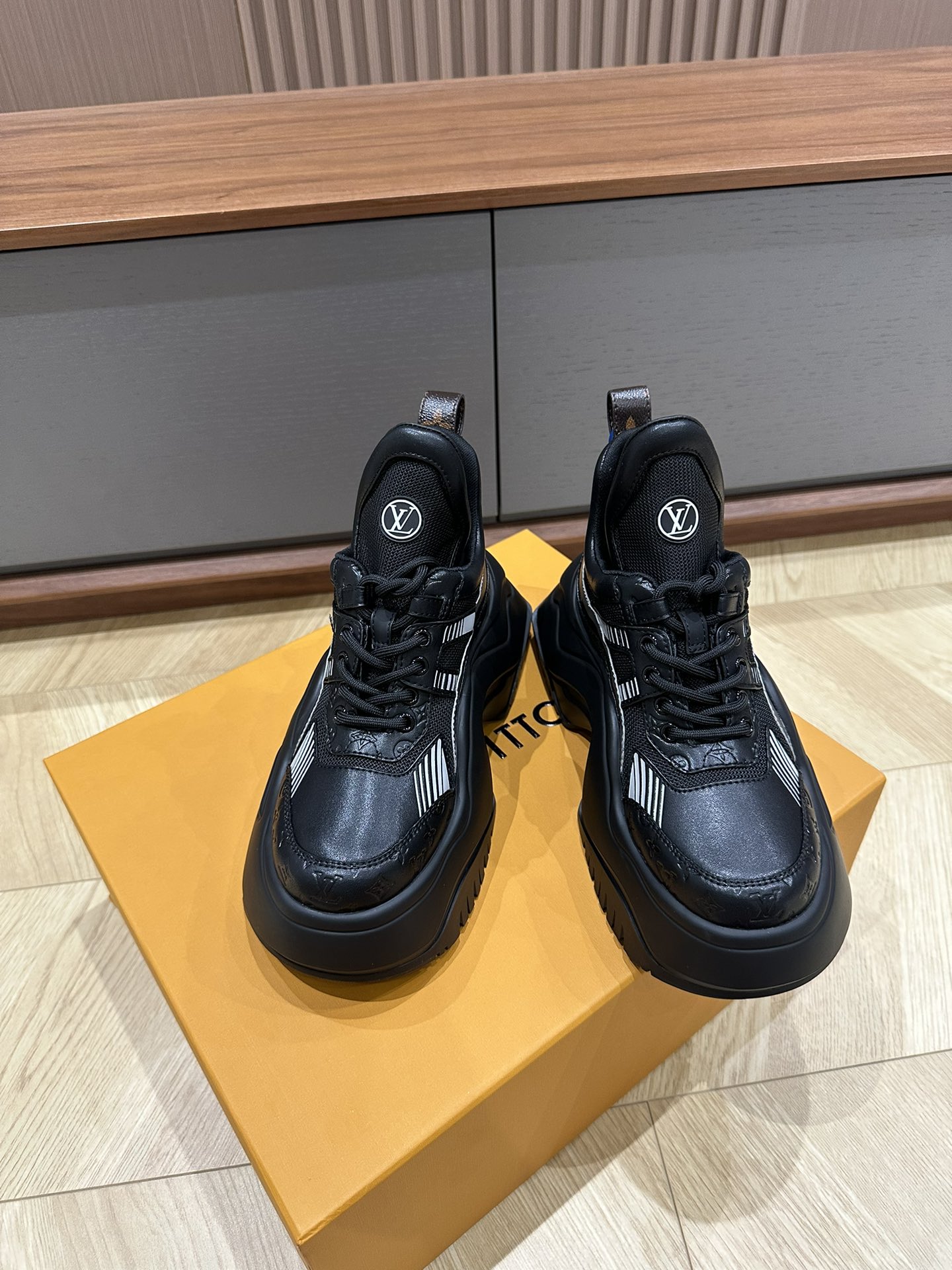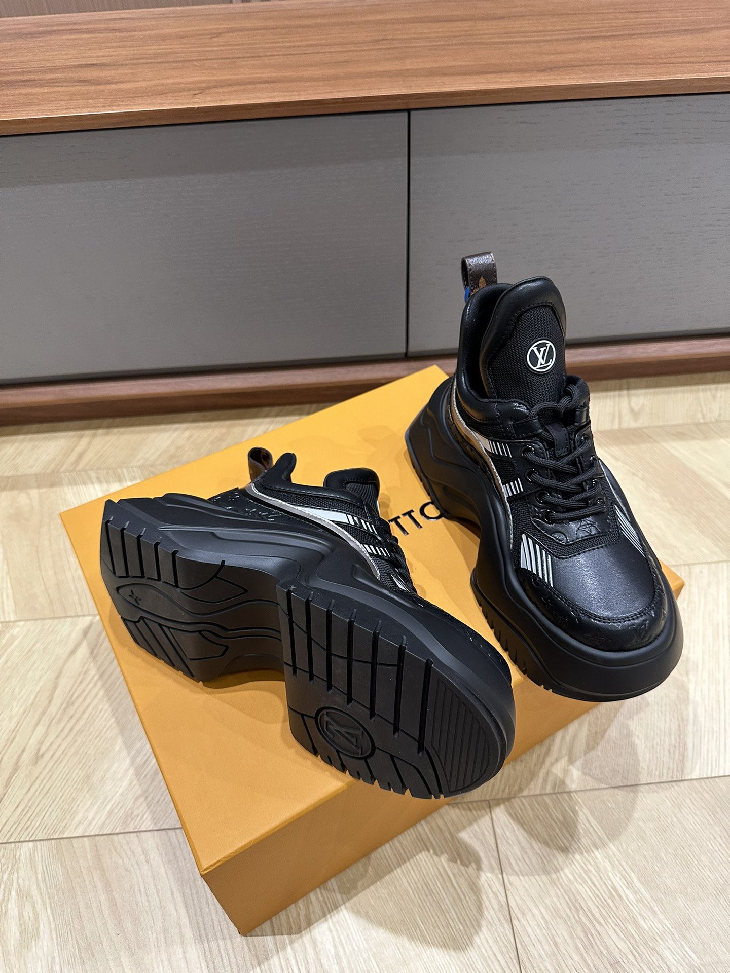 这款鞋子是AAAAA 1:1 质量 (非常棒). 使用了和原版一模一样的材料. 商标部分也保持了和路易威登/Louis Vuitton一样. 图片拍摄是实物鞋子拍摄, 您所收到的实物保证和我们图片一模一样.