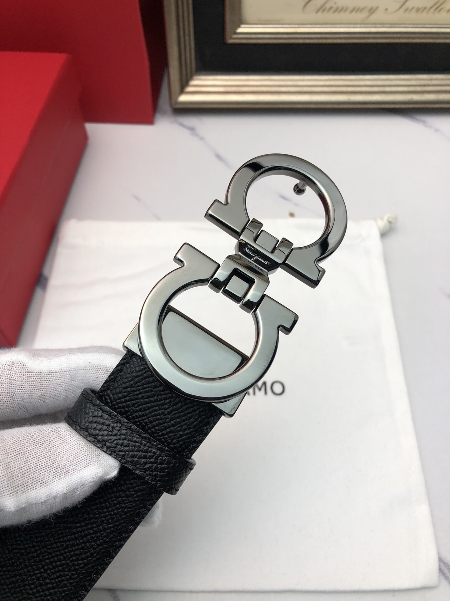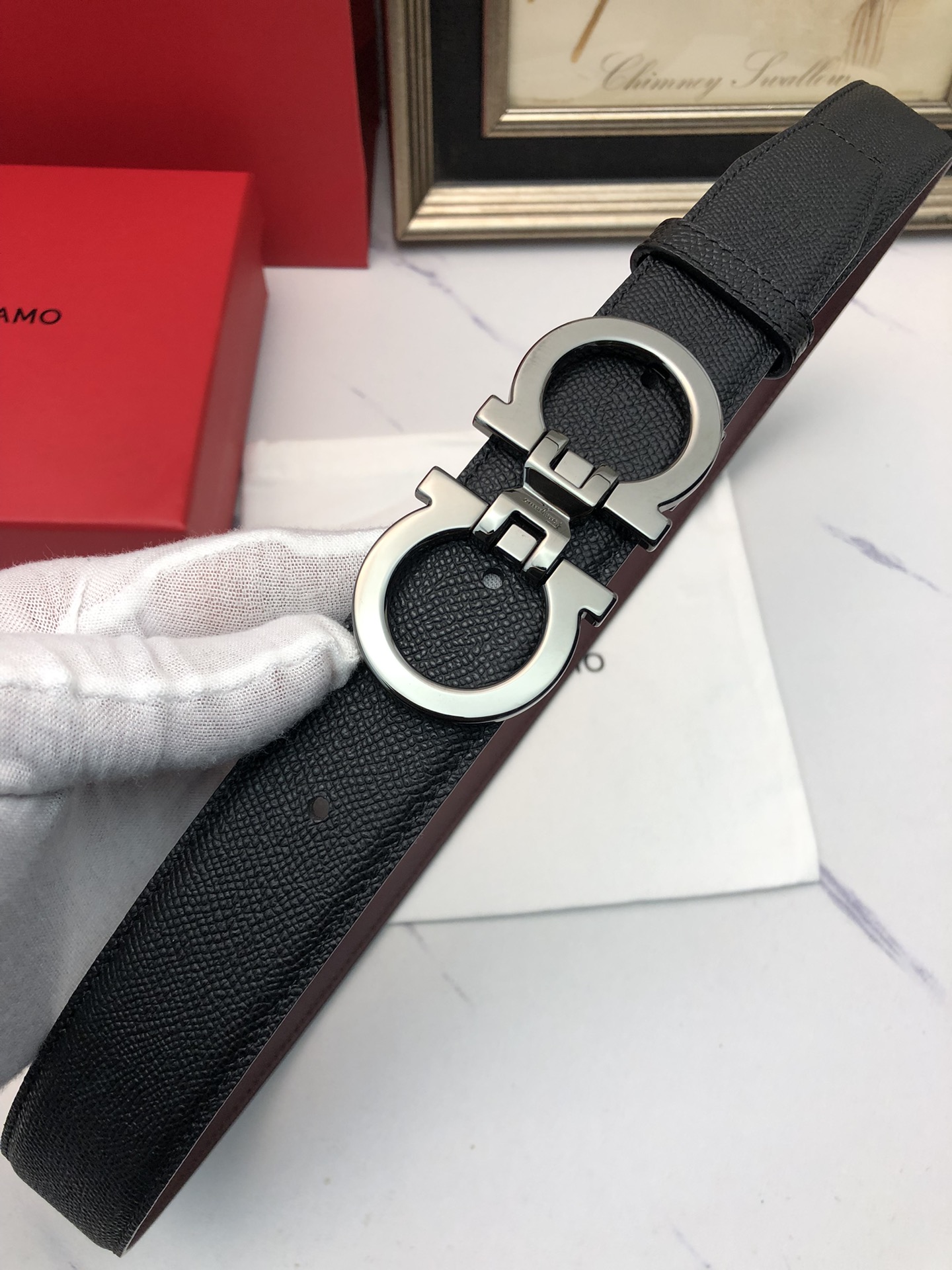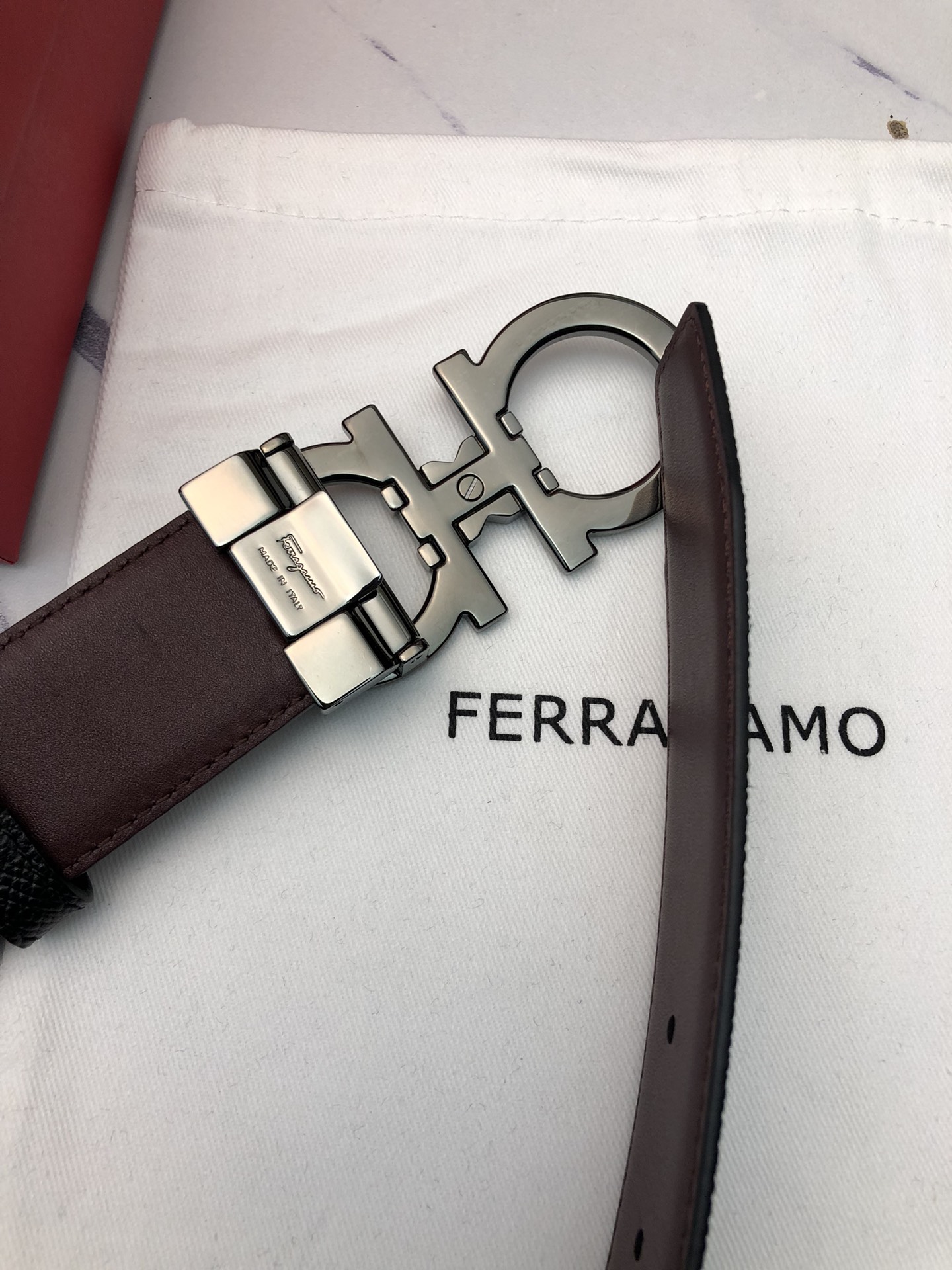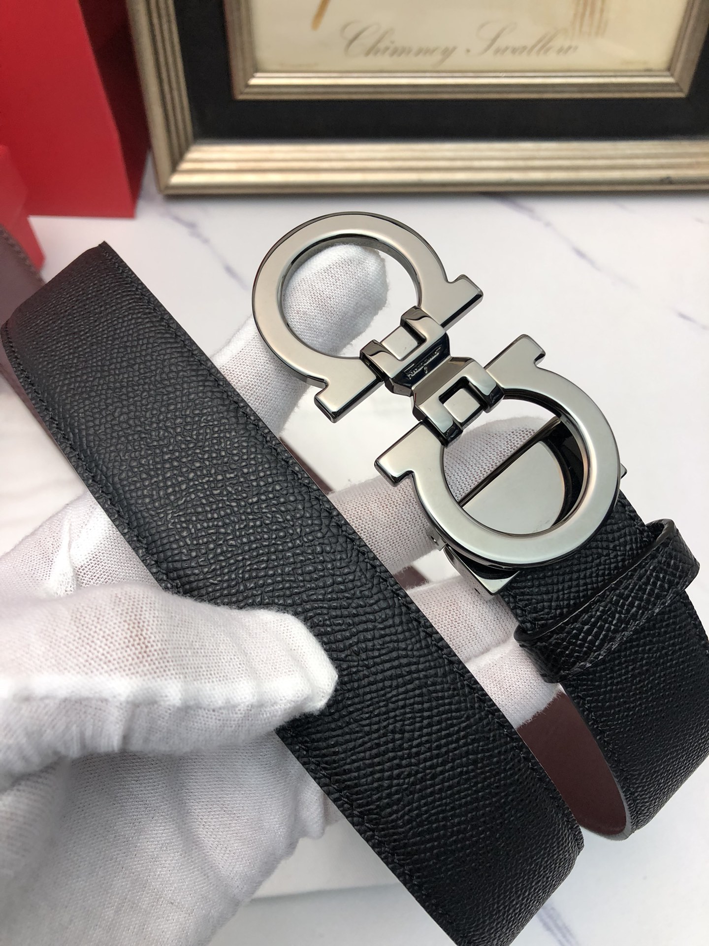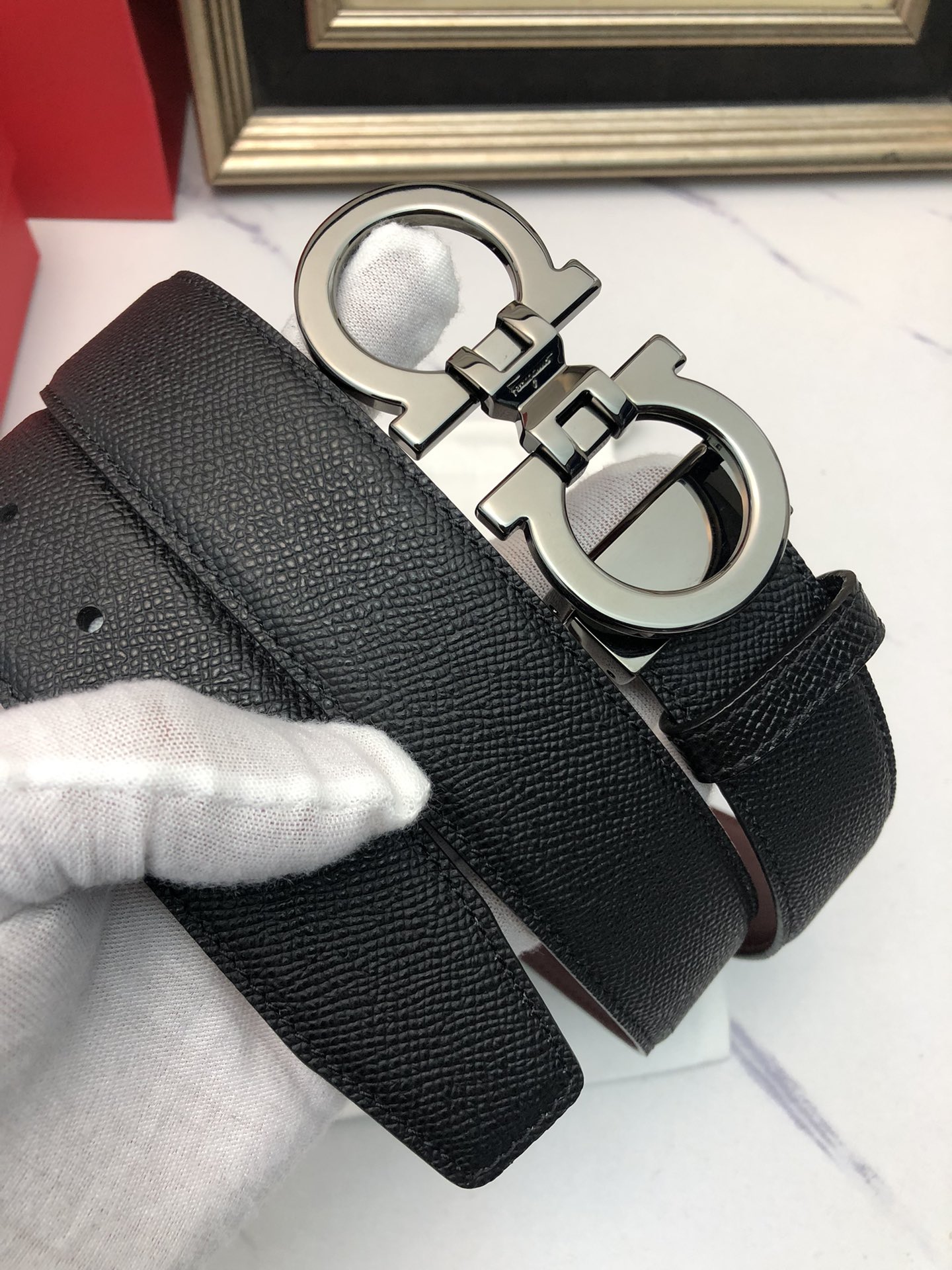 这款皮带是AAAAA 1:1 质量 (非常棒). 使用了和原版一模一样的材料. 商标部分也保持了和菲拉格慕/Salvatore Ferragamo一样. 图片拍摄是实物皮带拍摄, 您所收到的实物保证和我们图片一模一样.