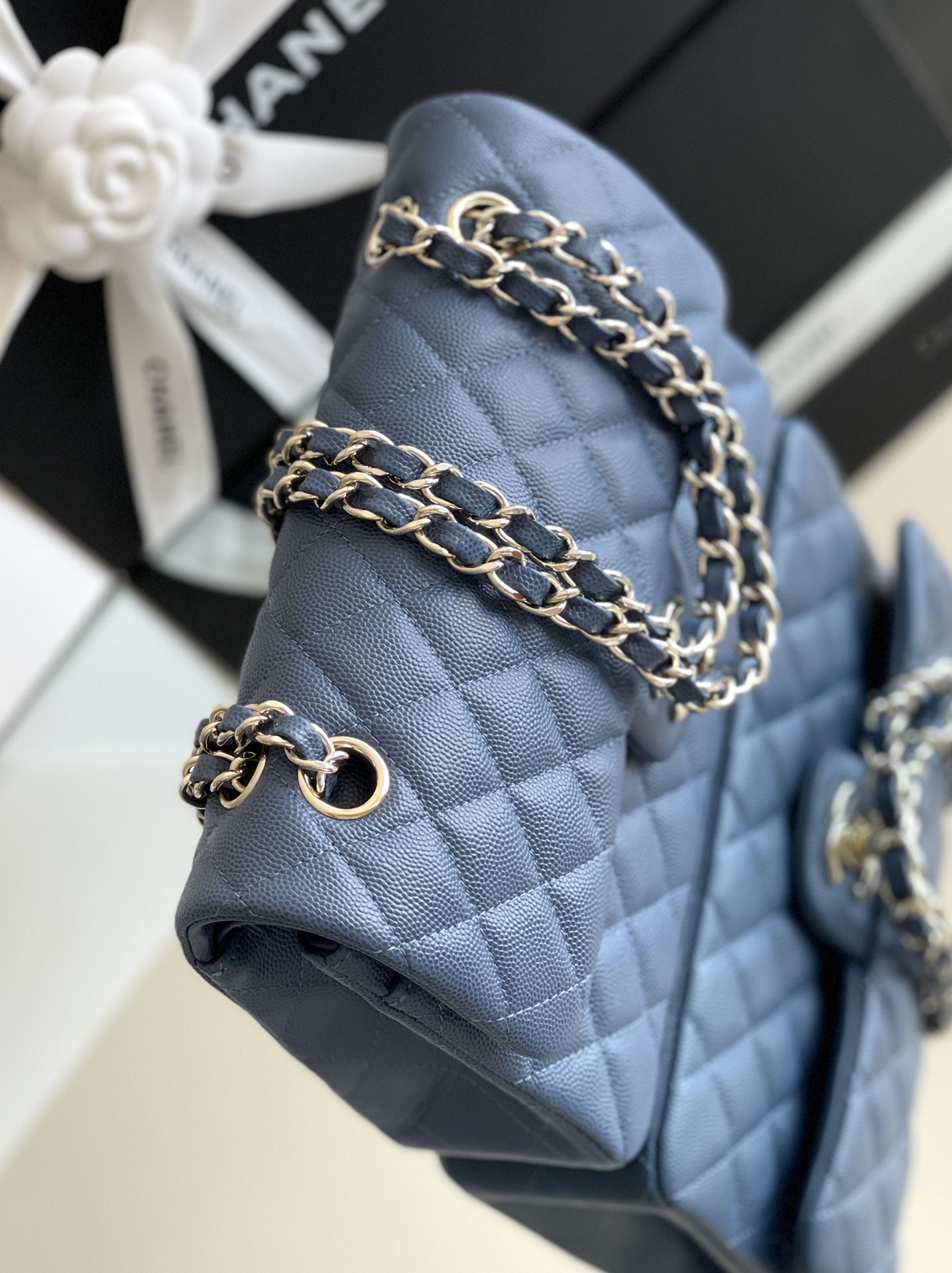 这款包包是AAAAA 1:1 质量 (非常棒). 使用了和原版一模一样的材料. 商标部分也保持了和香奈儿/Chanel一样. 图片拍摄是实物包包拍摄, 您所收到的实物保证和我们图片一模一样.