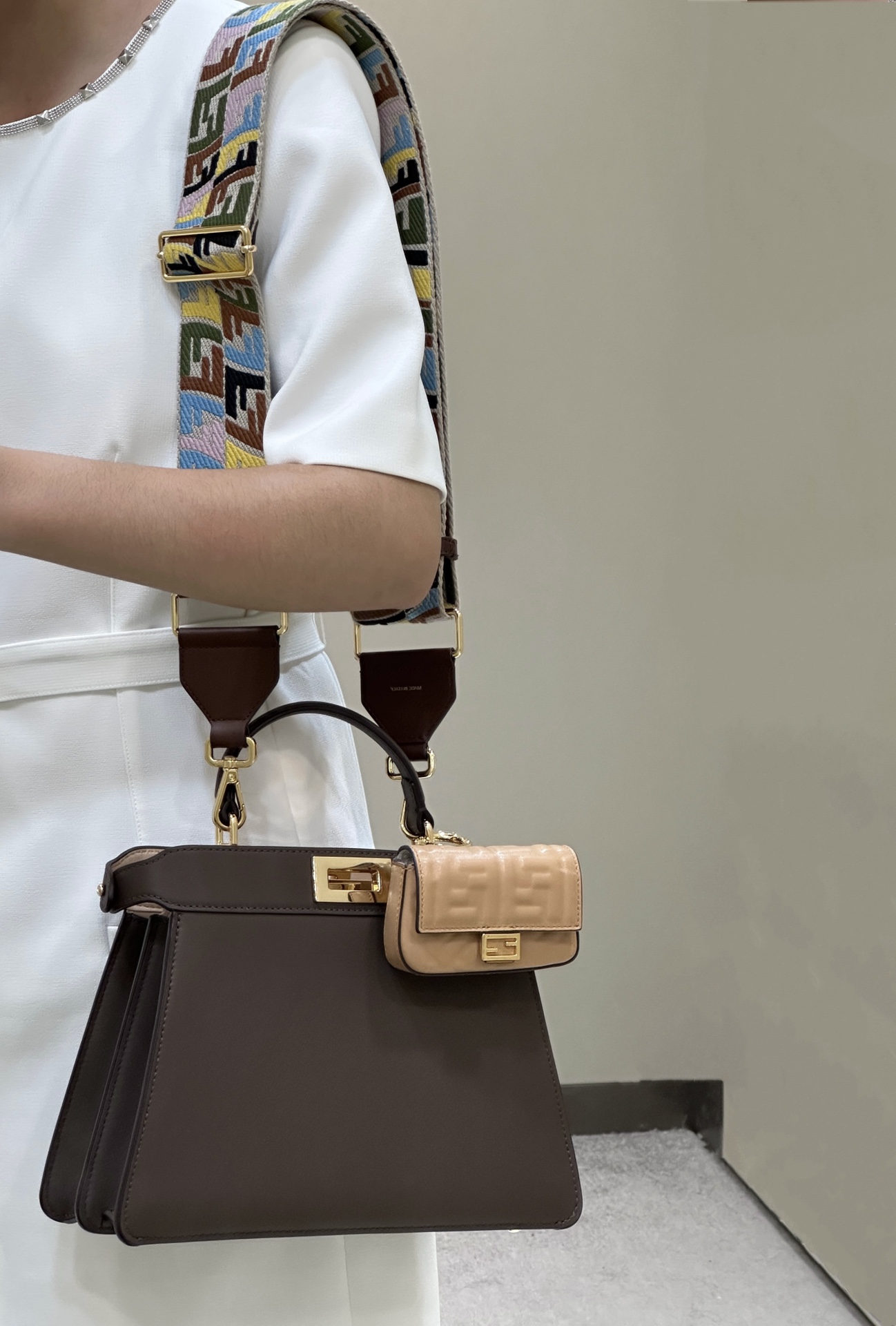 这款包包是AAAAA 1:1 质量 (非常棒). 使用了和原版一模一样的材料. 商标部分也保持了和芬迪/Fendi一样. 图片拍摄是实物包包拍摄, 您所收到的实物保证和我们图片一模一样.