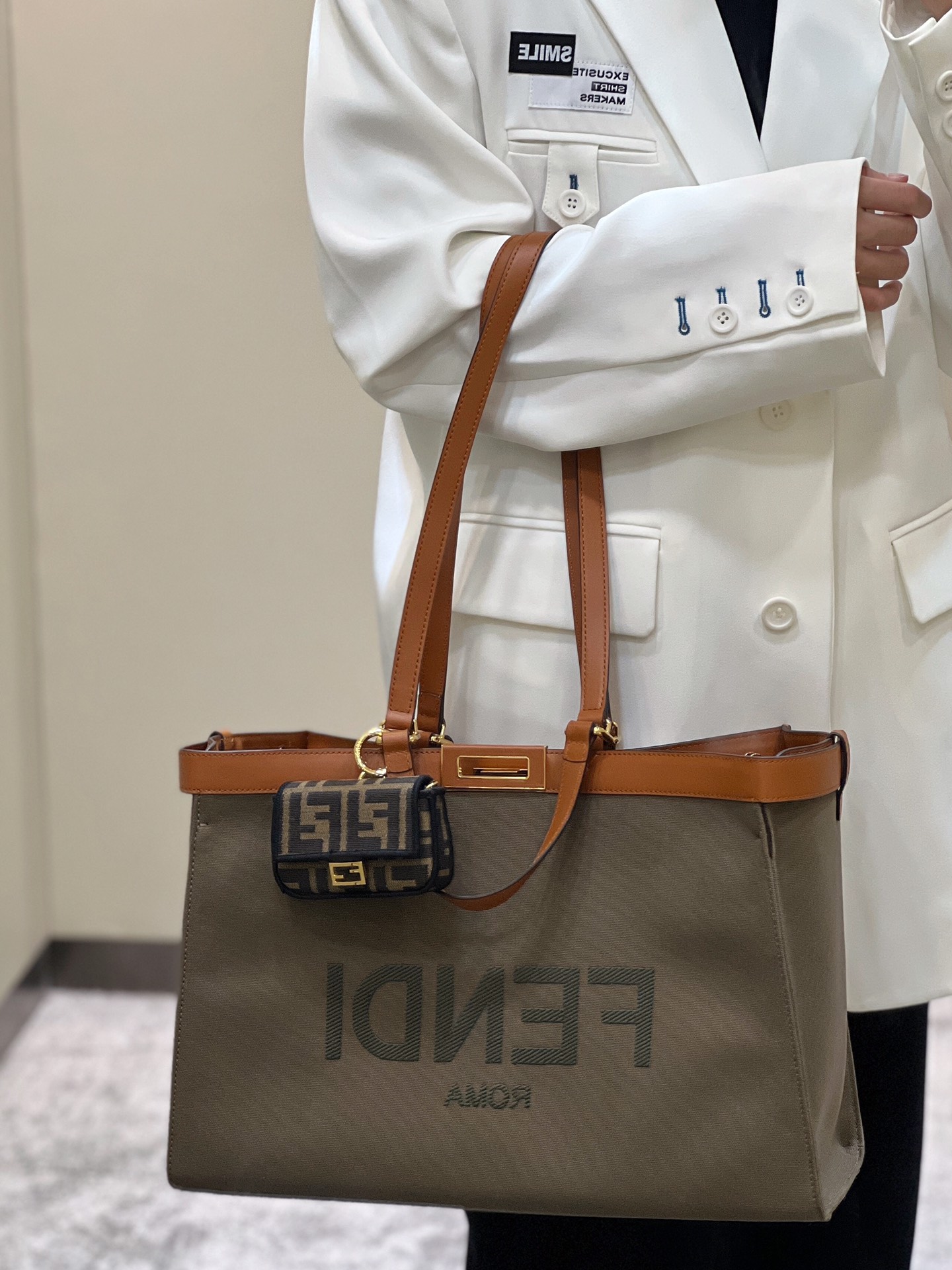 这款包包是AAAAA 1:1 质量 (非常棒). 使用了和原版一模一样的材料. 商标部分也保持了和芬迪/Fendi一样. 图片拍摄是实物包包拍摄, 您所收到的实物保证和我们图片一模一样.