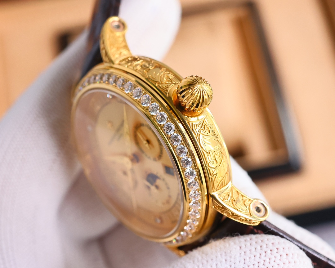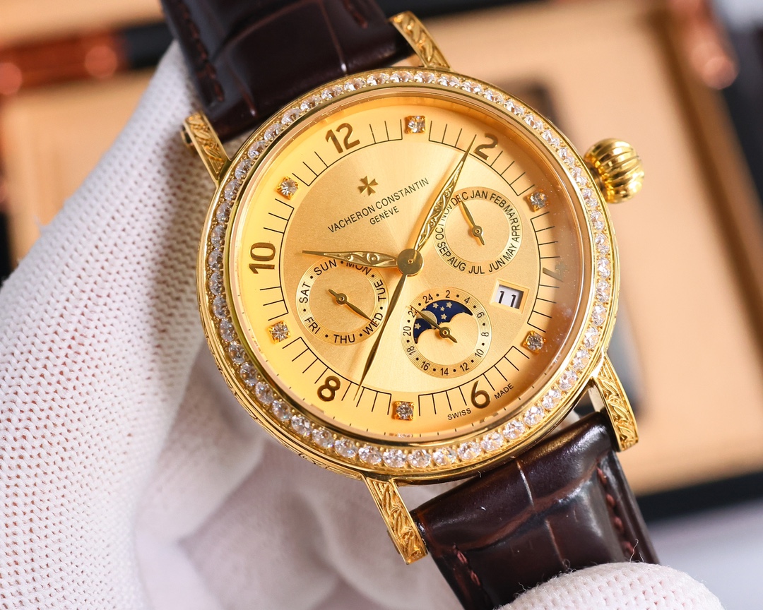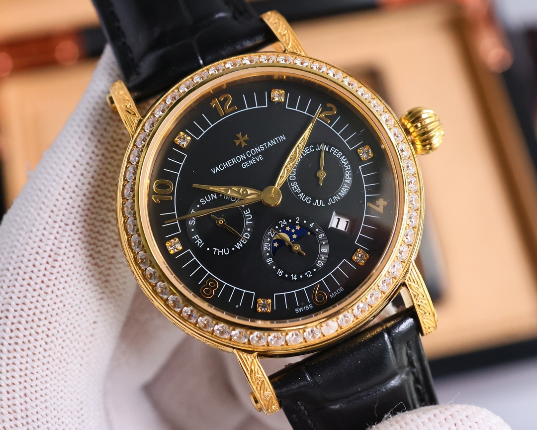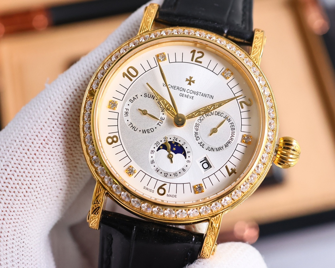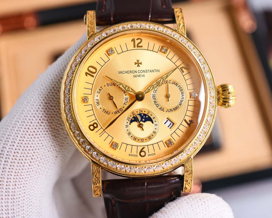 这款手表是AAAAA 1:1 质量 (非常棒). 使用了和原版一模一样的材料. 商标部分也保持了和江诗丹顿/Vacheron Constantin一样. 图片拍摄是实物手表拍摄, 您所收到的实物保证和我们图片一模一样.
