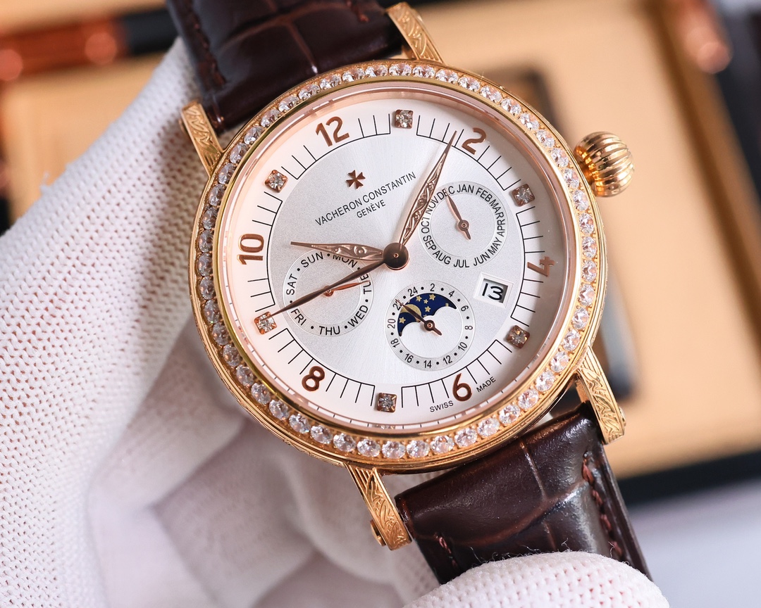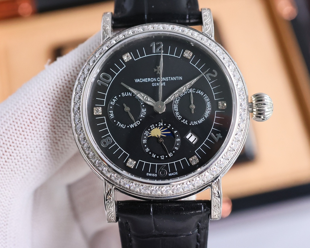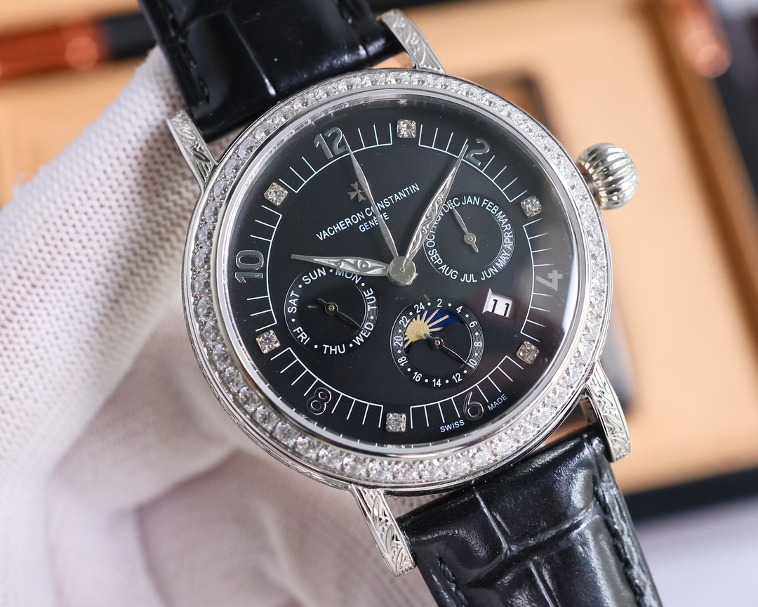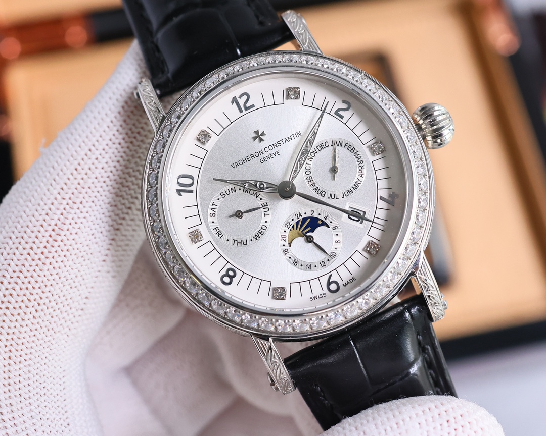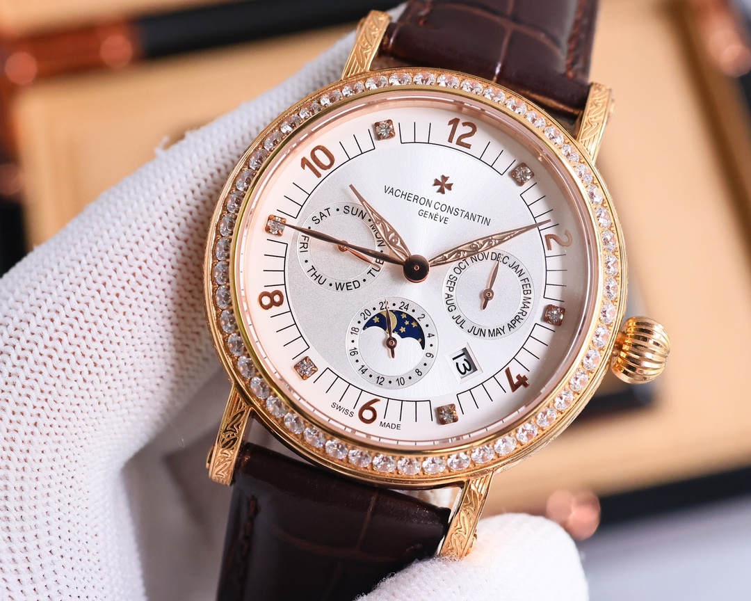 这款手表是AAAAA 1:1 质量 (非常棒). 使用了和原版一模一样的材料. 商标部分也保持了和江诗丹顿/Vacheron Constantin一样. 图片拍摄是实物手表拍摄, 您所收到的实物保证和我们图片一模一样.