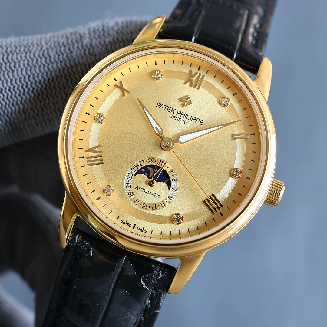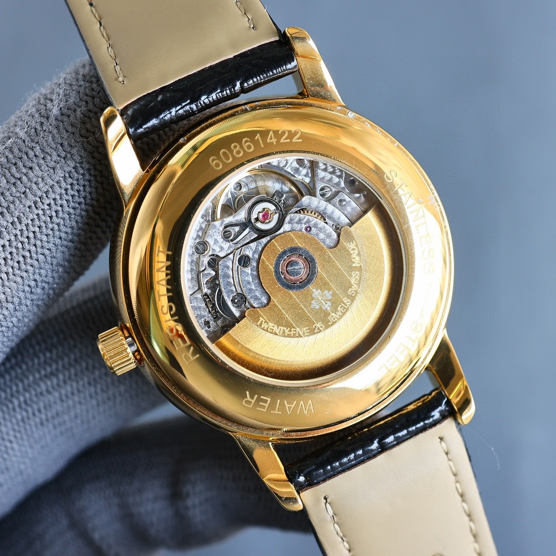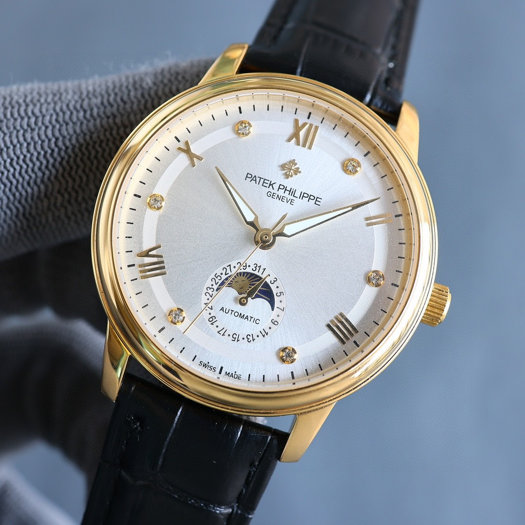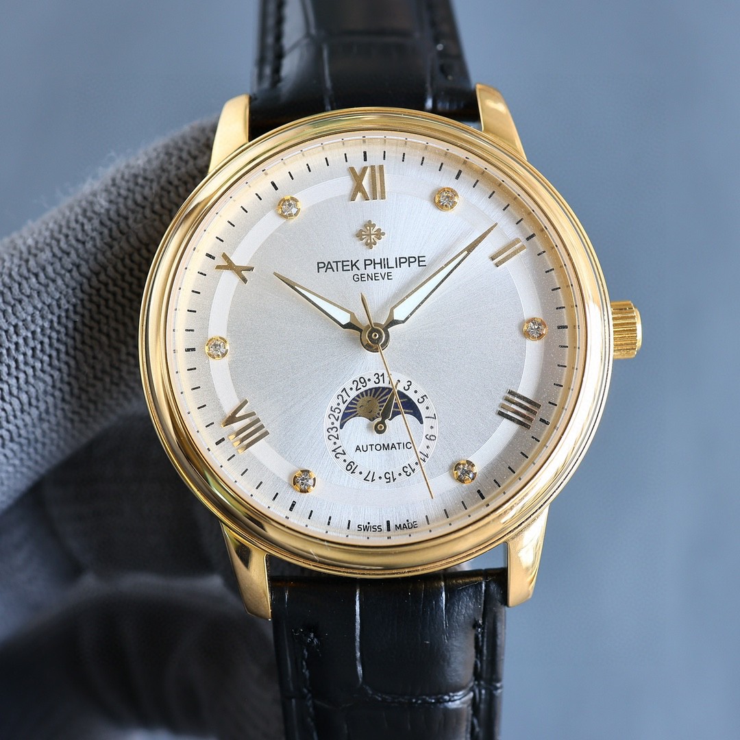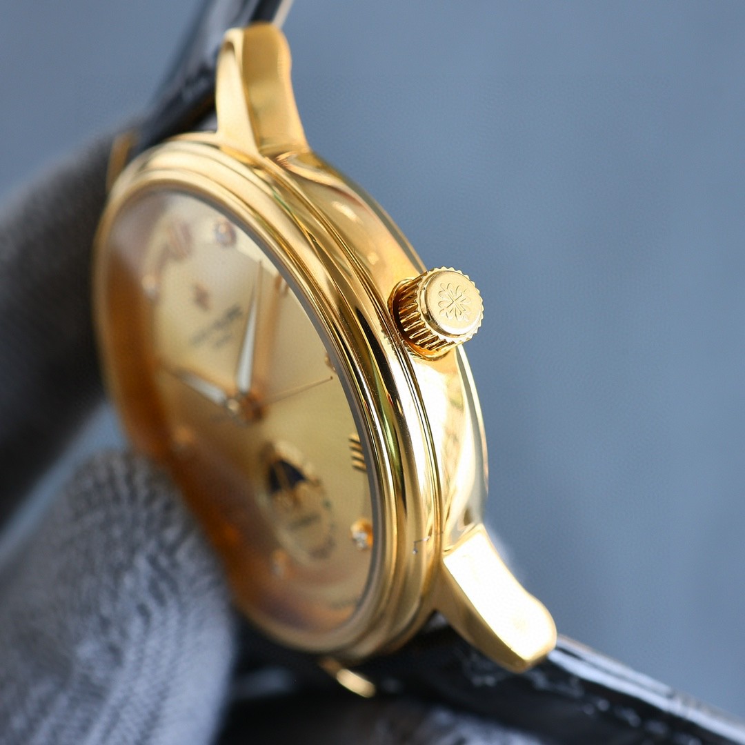 这款手表是AAAAA 1:1 质量 (非常棒). 使用了和原版一模一样的材料. 商标部分也保持了和百达翡丽/Patek Philippe一样. 图片拍摄是实物手表拍摄, 您所收到的实物保证和我们图片一模一样.