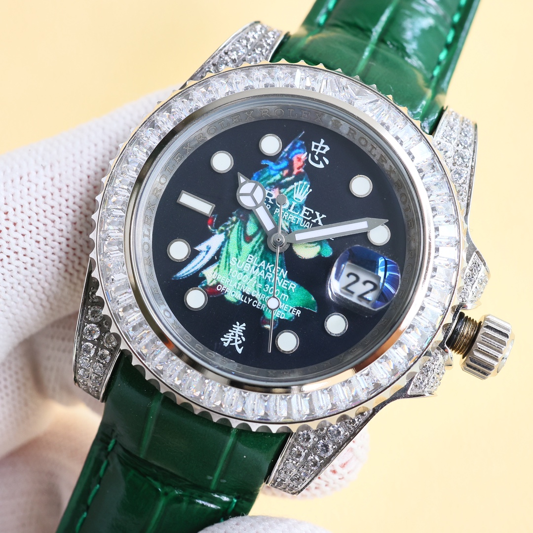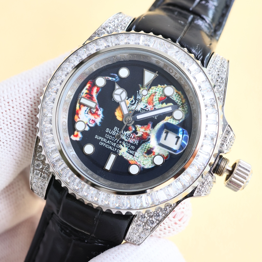 这款手表是AAAAA 1:1 质量 (非常棒). 使用了和原版一模一样的材料. 商标部分也保持了和劳力士/Rolex一样. 图片拍摄是实物手表拍摄, 您所收到的实物保证和我们图片一模一样.