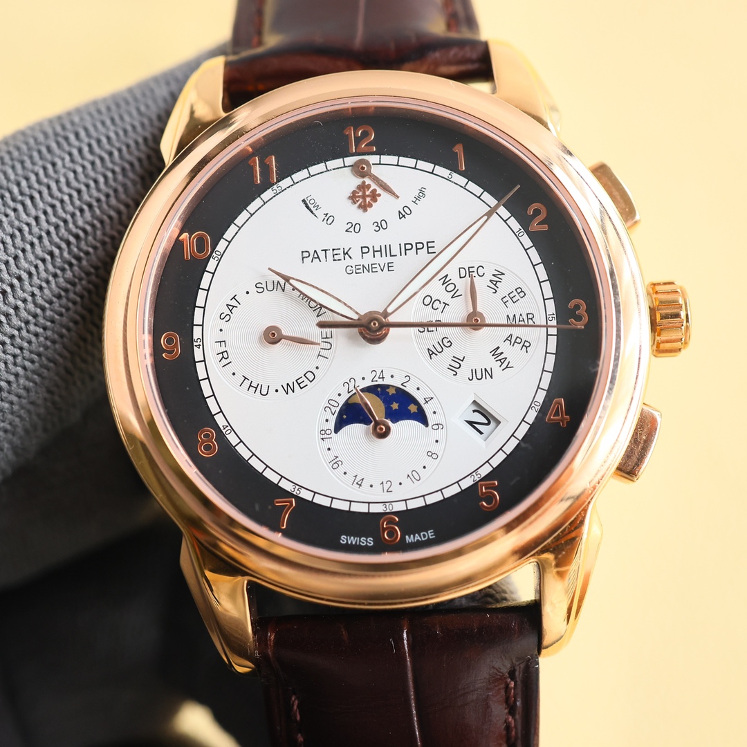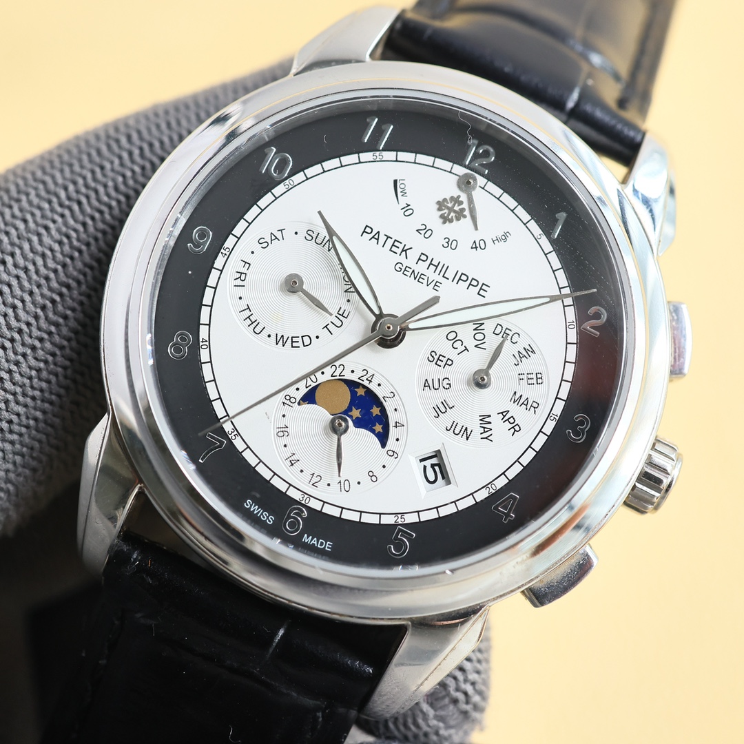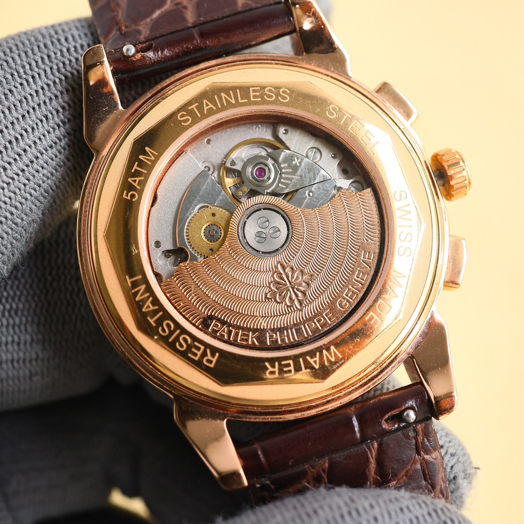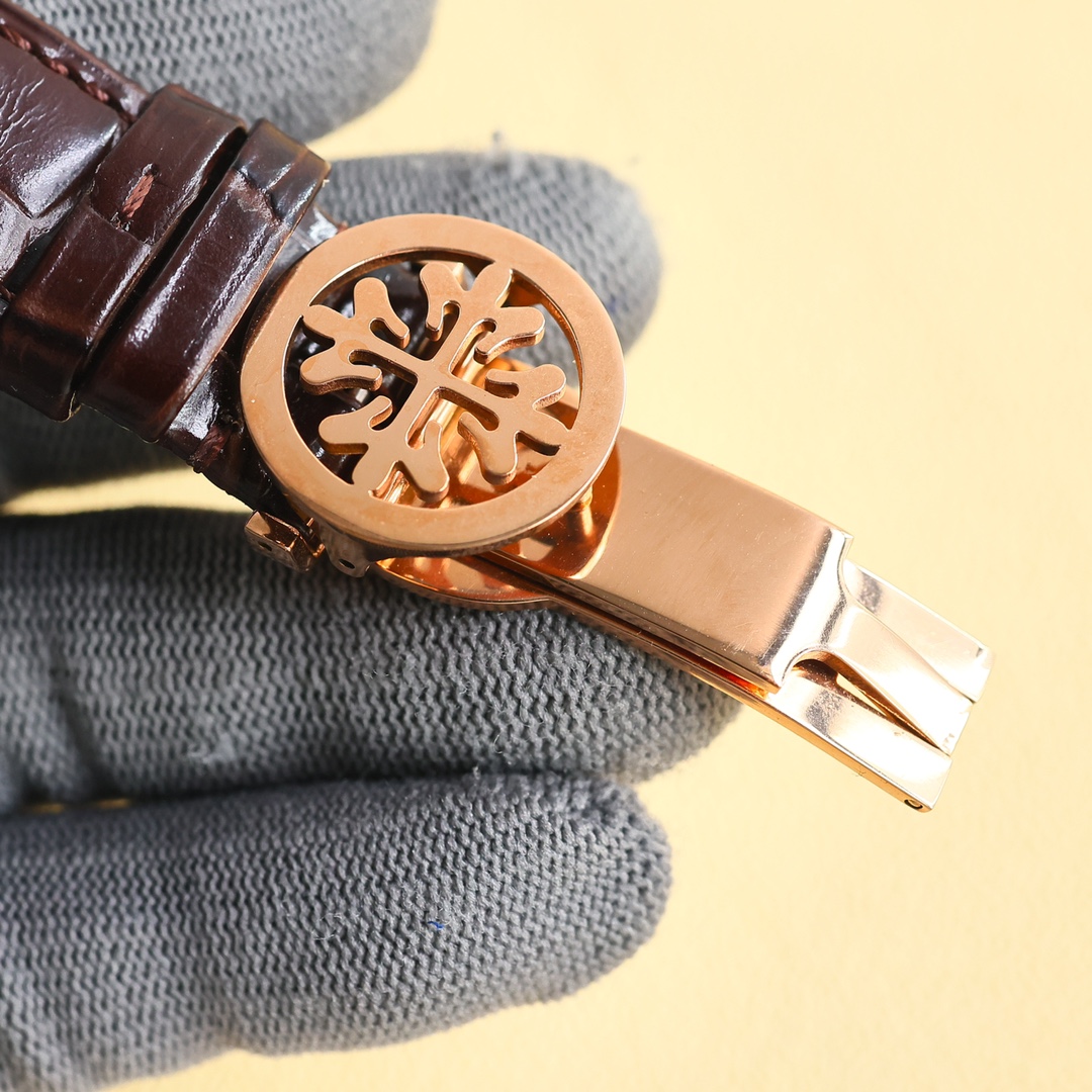 这款手表是AAAAA 1:1 质量 (非常棒). 使用了和原版一模一样的材料. 商标部分也保持了和百达翡丽/Patek Philippe一样. 图片拍摄是实物手表拍摄, 您所收到的实物保证和我们图片一模一样.