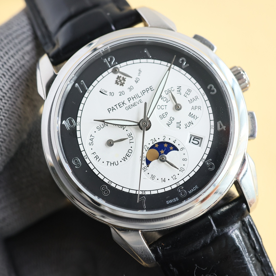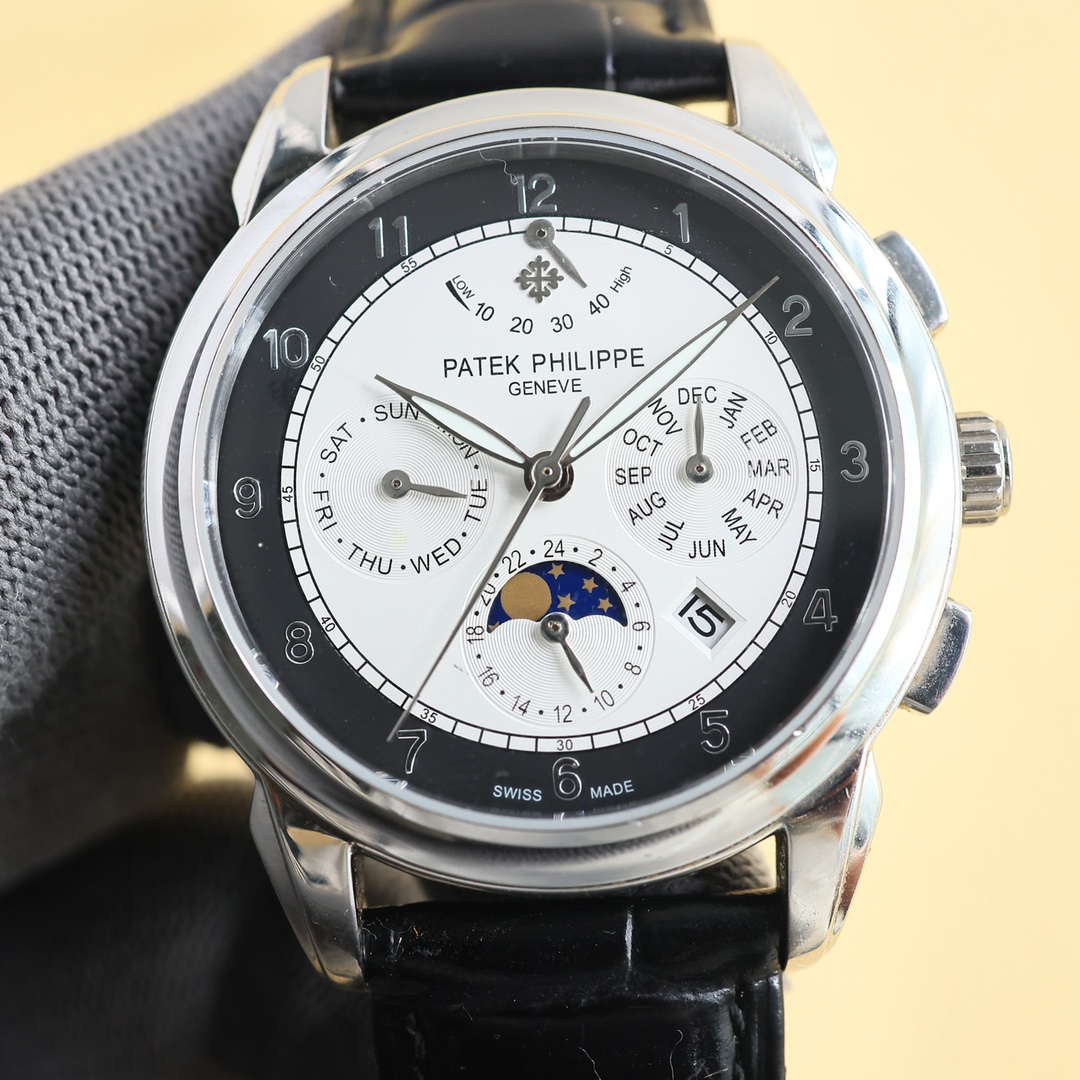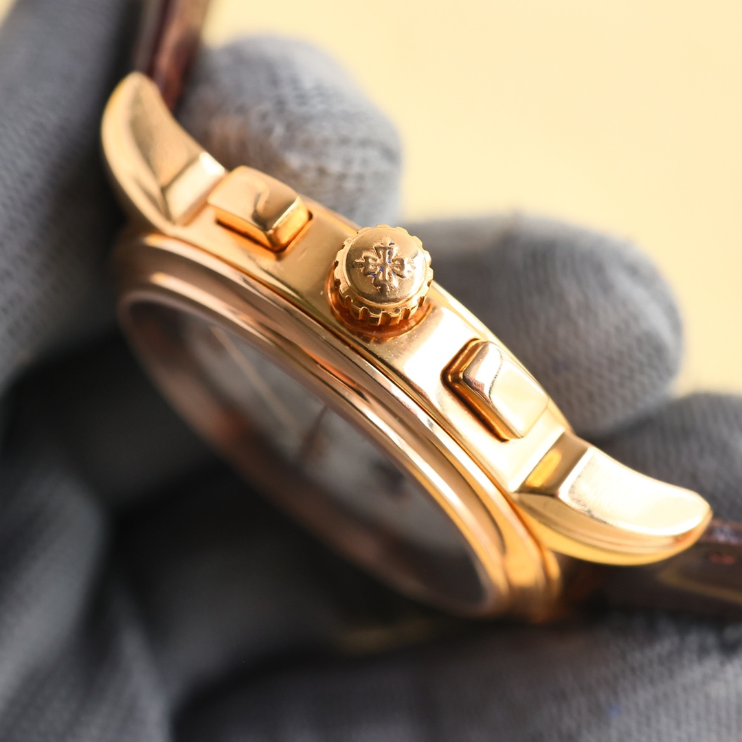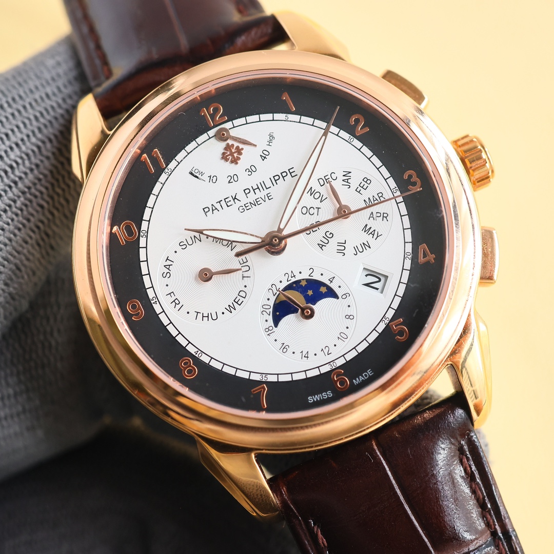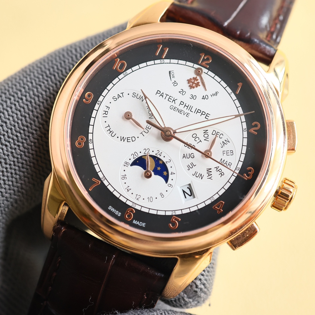 这款手表是AAAAA 1:1 质量 (非常棒). 使用了和原版一模一样的材料. 商标部分也保持了和百达翡丽/Patek Philippe一样. 图片拍摄是实物手表拍摄, 您所收到的实物保证和我们图片一模一样.