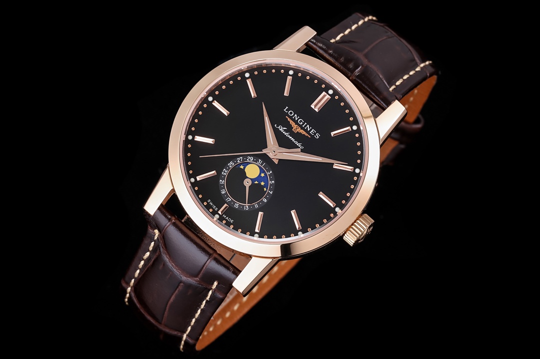 这款手表是AAAAA 1:1 质量 (非常棒). 使用了和原版一模一样的材料. 商标部分也保持了和浪琴/Longines一样. 图片拍摄是实物手表拍摄, 您所收到的实物保证和我们图片一模一样.