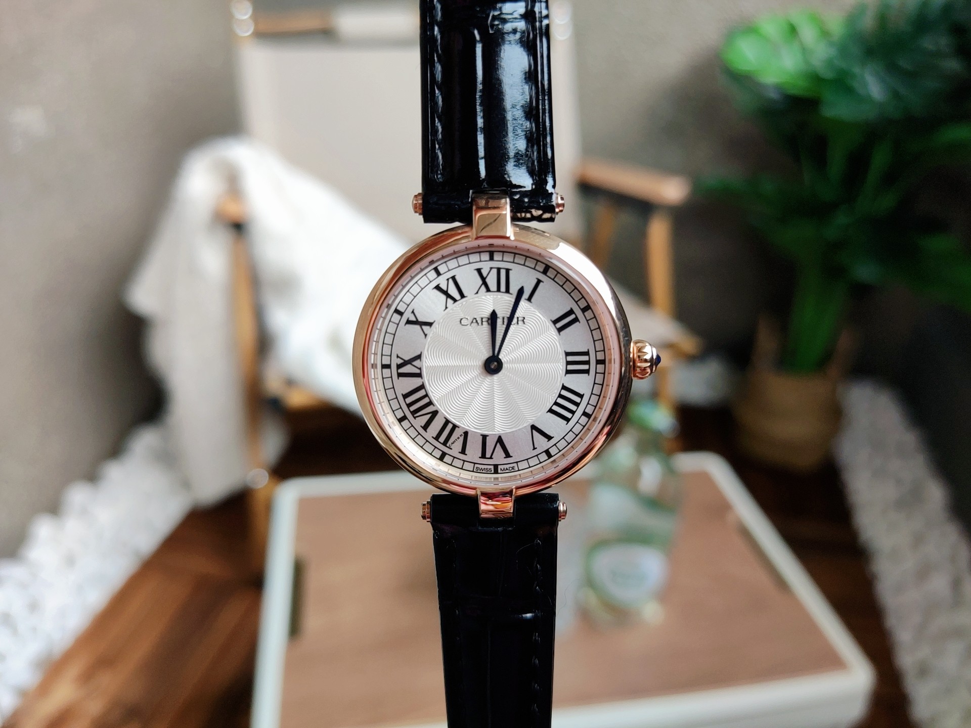 这款手表是AAAAA 1:1 质量 (非常棒). 使用了和原版一模一样的材料. 商标部分也保持了和卡地亚/Cartier一样. 图片拍摄是实物手表拍摄, 您所收到的实物保证和我们图片一模一样.