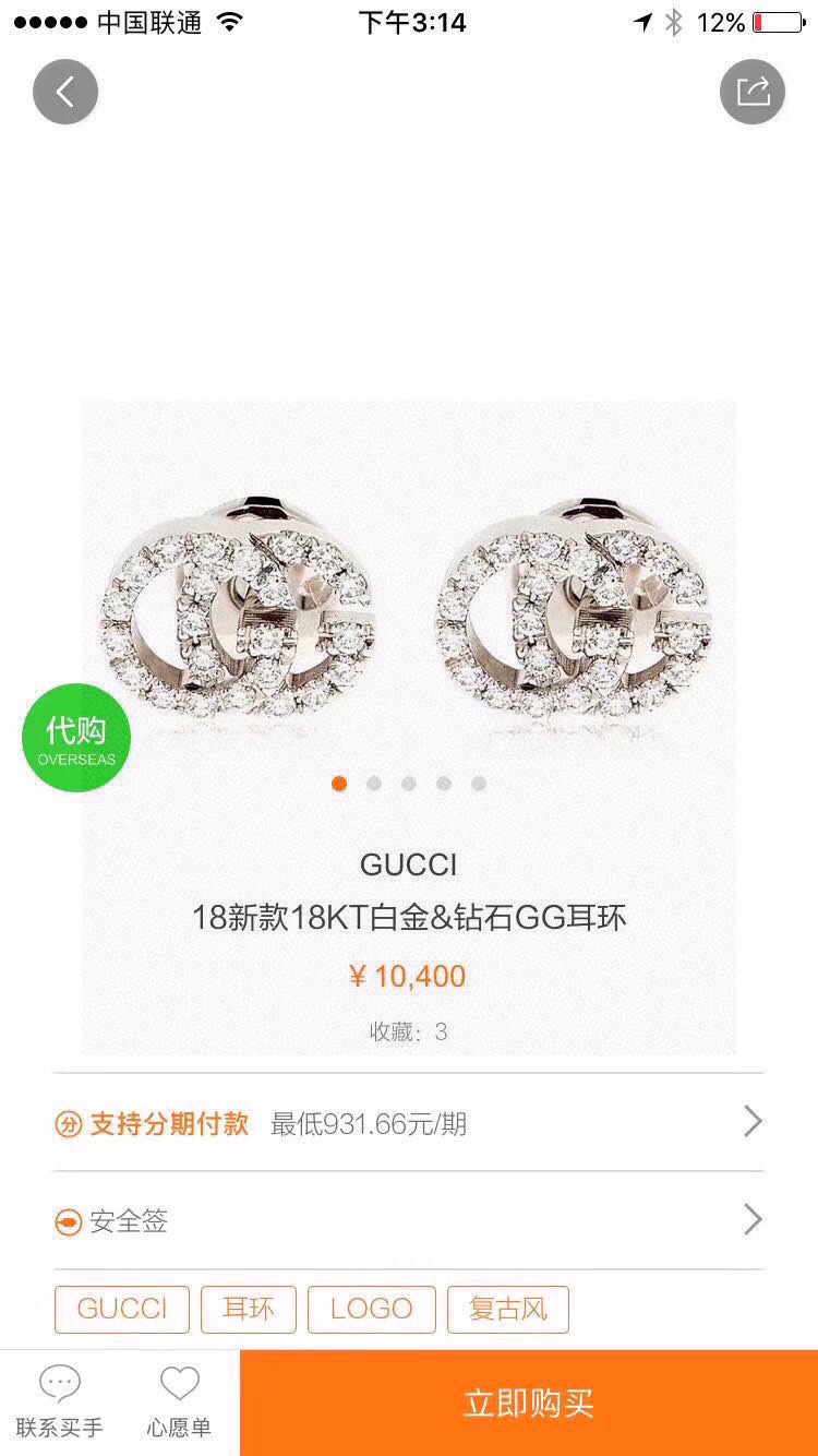 这款首饰是AAAAA 1:1 质量 (非常棒). 使用了和原版一模一样的材料. 商标部分也保持了和古奇/Gucci一样. 图片拍摄是实物首饰拍摄, 您所收到的实物保证和我们图片一模一样.