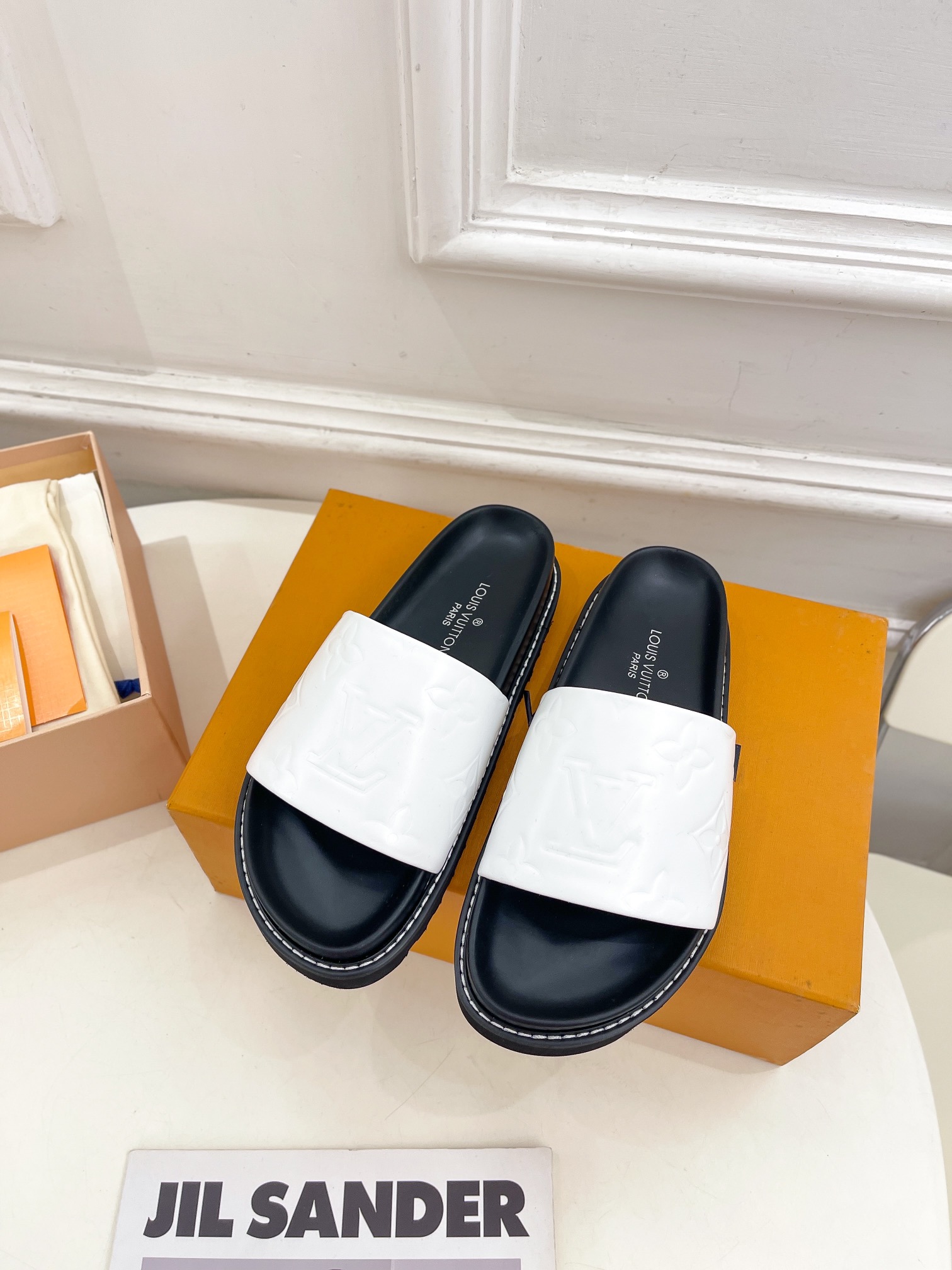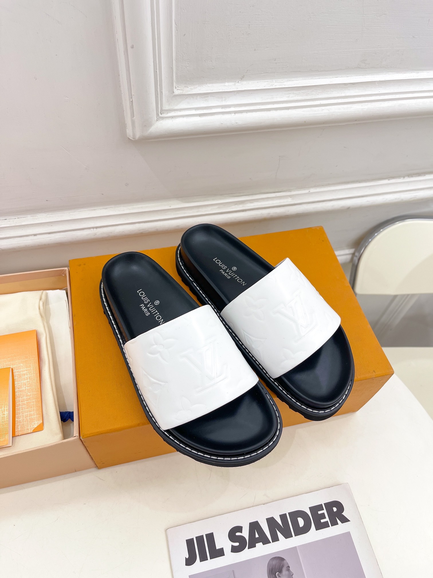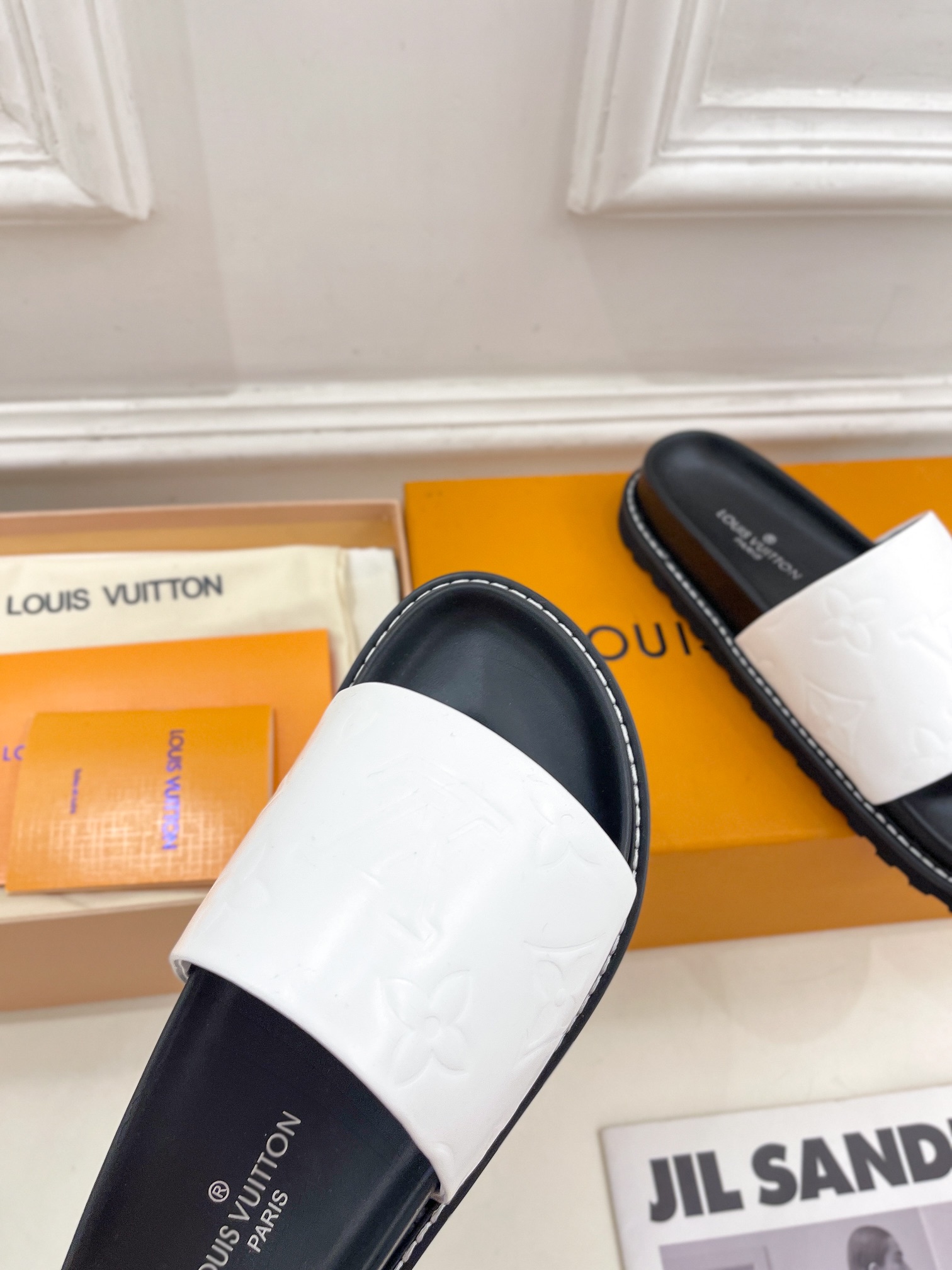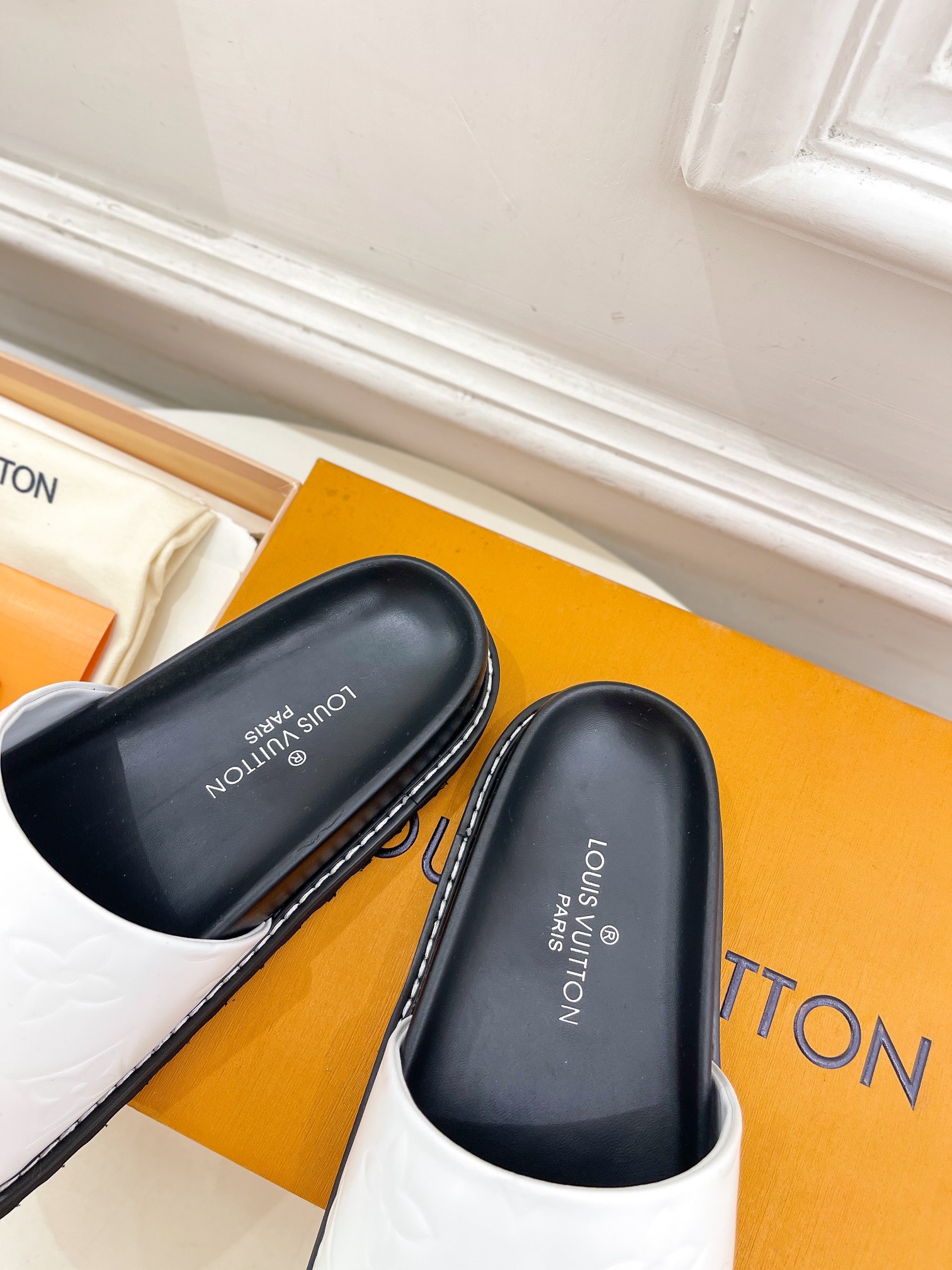 这款鞋子是AAAAA 1:1 质量 (非常棒). 使用了和原版一模一样的材料. 商标部分也保持了和路易威登/Louis Vuitton一样. 图片拍摄是实物鞋子拍摄, 您所收到的实物保证和我们图片一模一样.