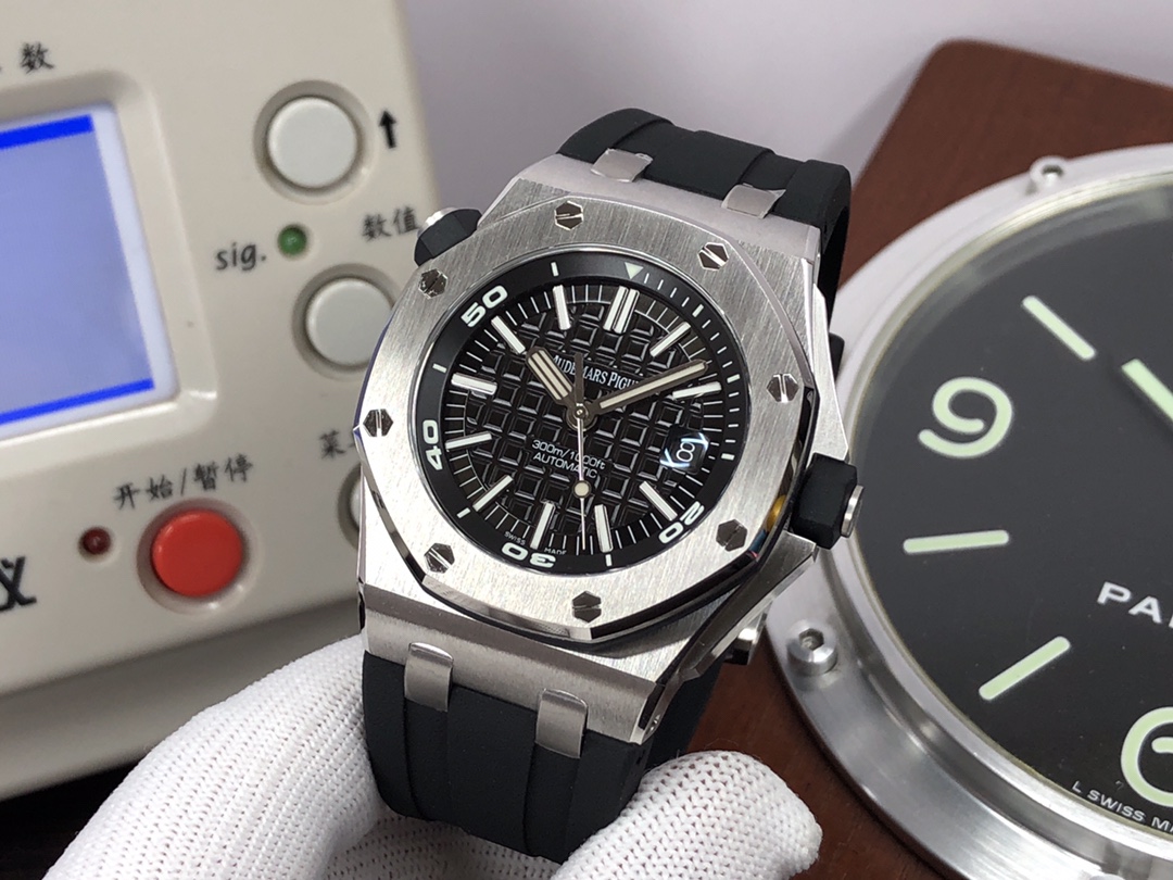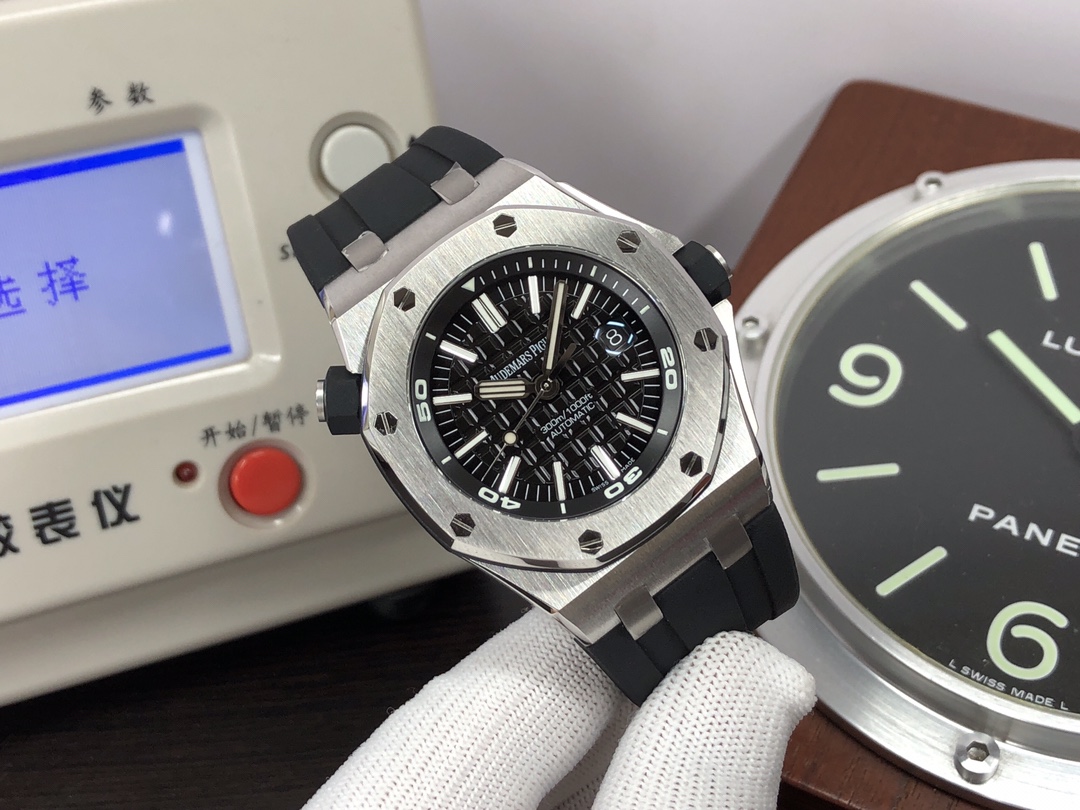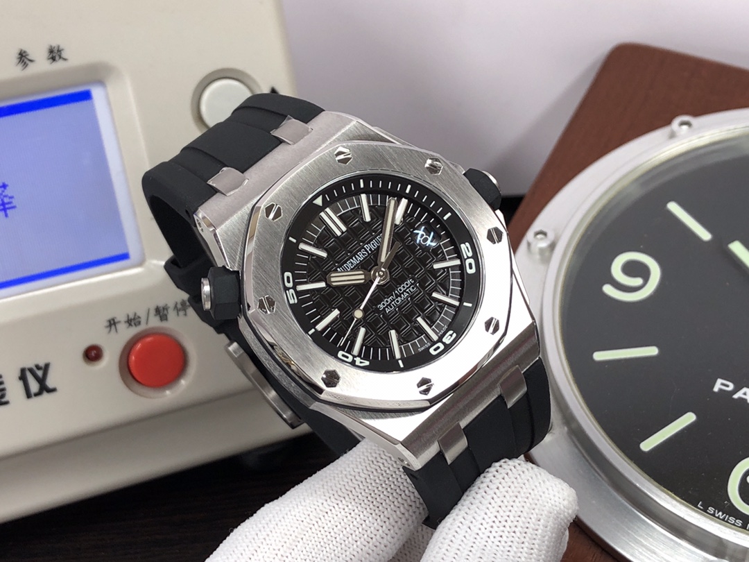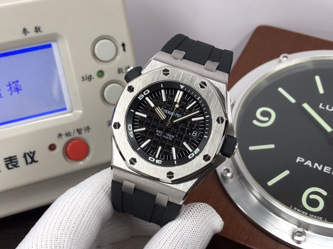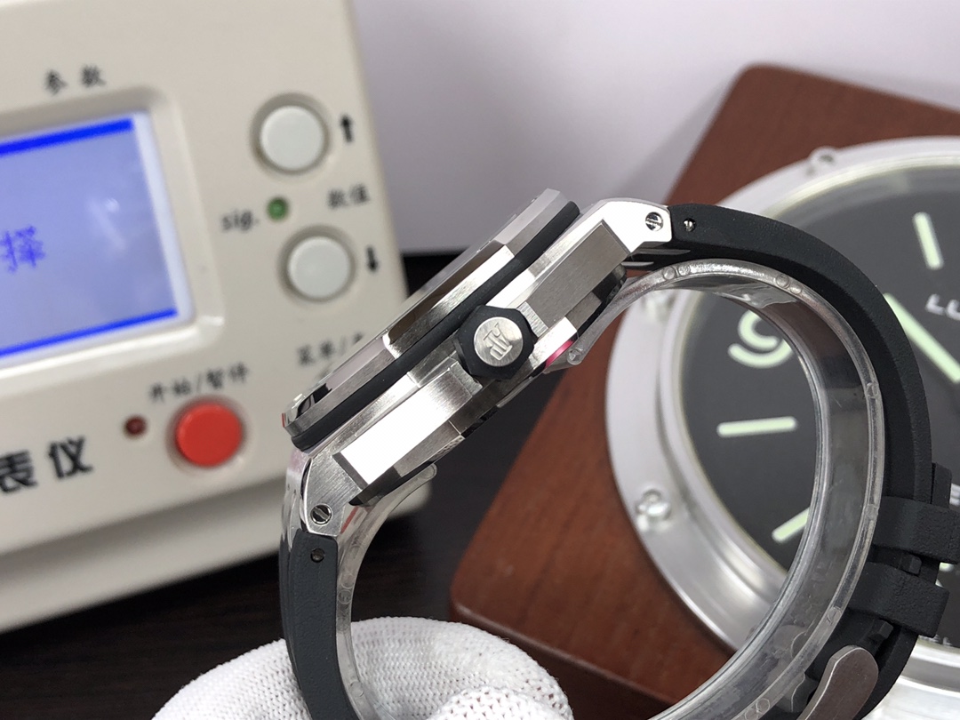 这款手表是AAAAA 1:1 质量 (非常棒). 使用了和原版一模一样的材料. 商标部分也保持了和爱彼/Audemars Piguet一样. 图片拍摄是实物手表拍摄, 您所收到的实物保证和我们图片一模一样.