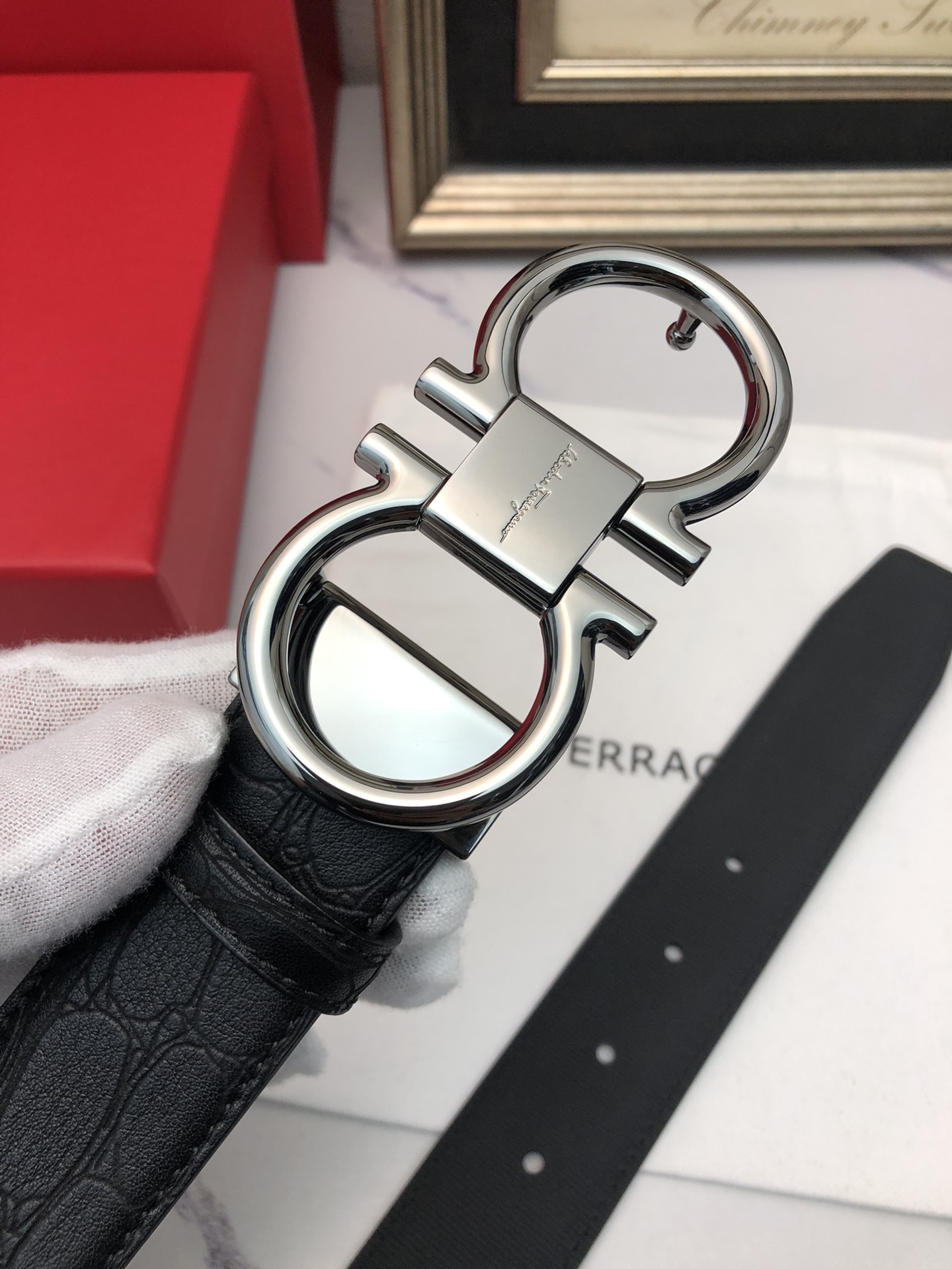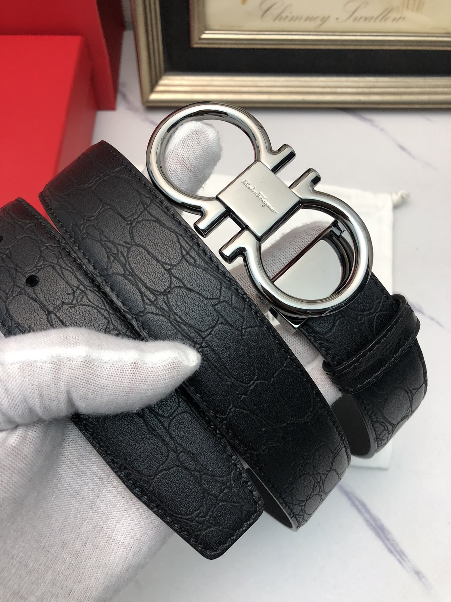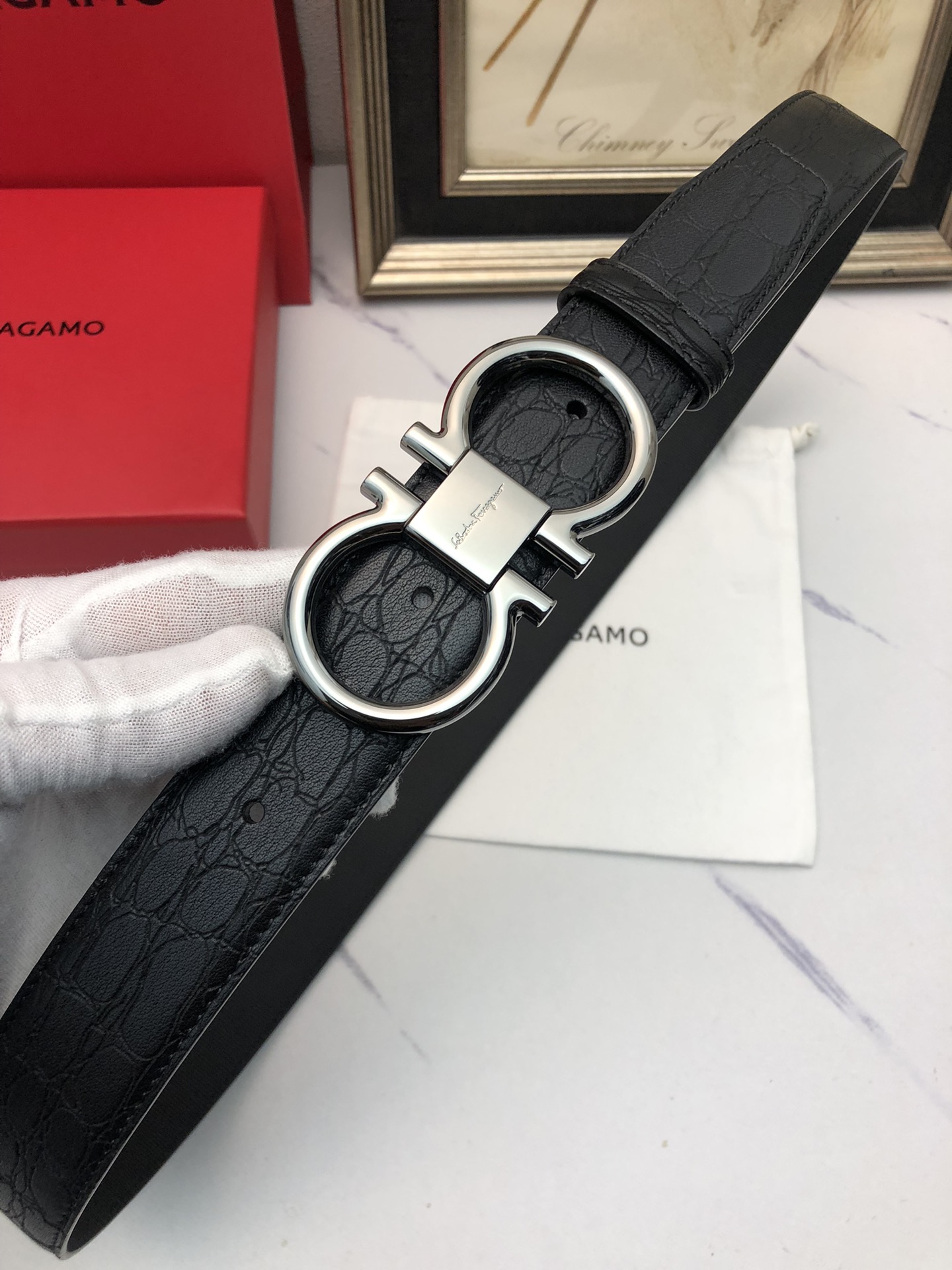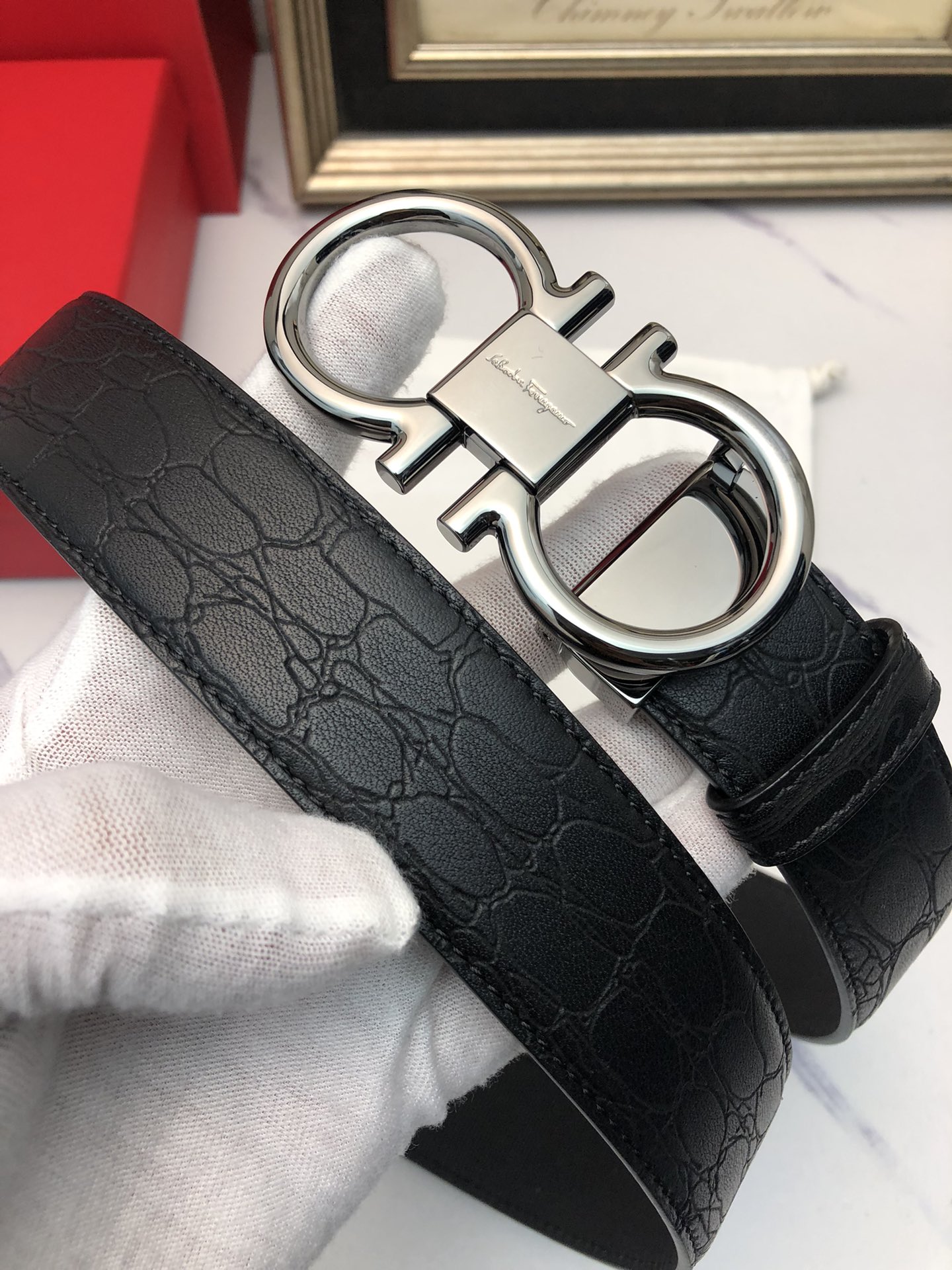 这款皮带是AAAAA 1:1 质量 (非常棒). 使用了和原版一模一样的材料. 商标部分也保持了和菲拉格慕/Salvatore Ferragamo一样. 图片拍摄是实物皮带拍摄, 您所收到的实物保证和我们图片一模一样.