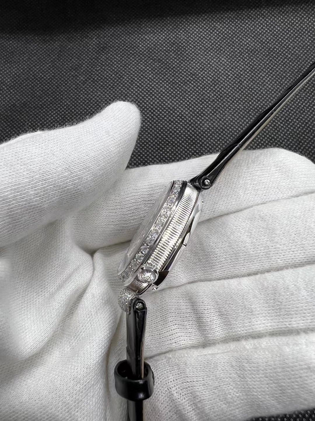 这款手表是AAAAA 1:1 质量 (非常棒). 使用了和原版一模一样的材料. 商标部分也保持了和施华洛世奇/Swarovski一样. 图片拍摄是实物手表拍摄, 您所收到的实物保证和我们图片一模一样.