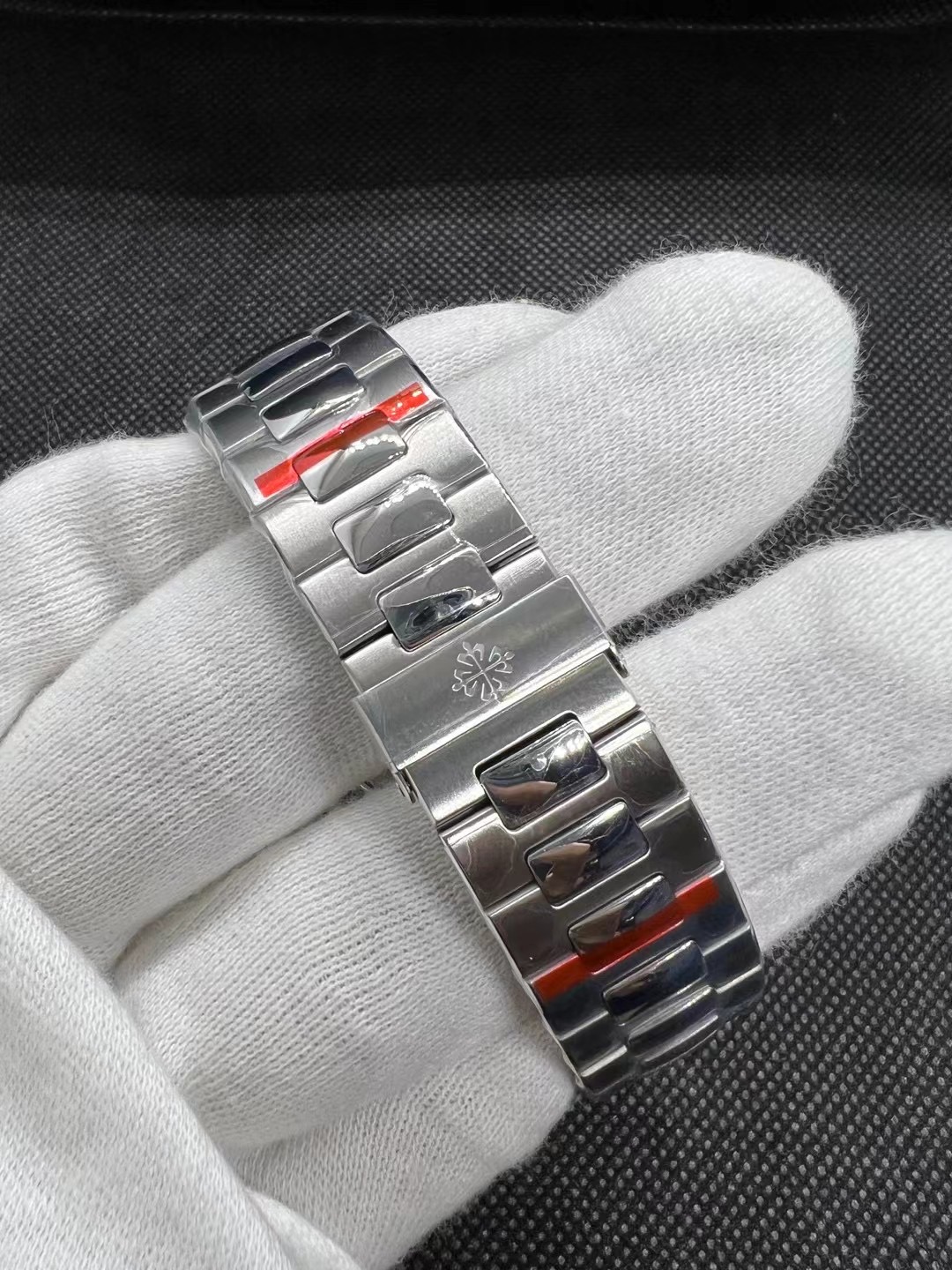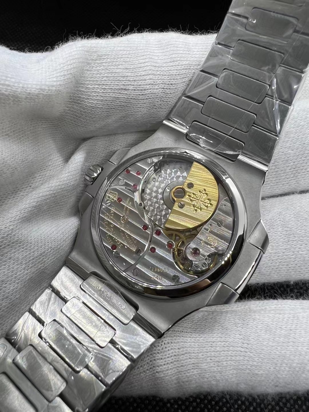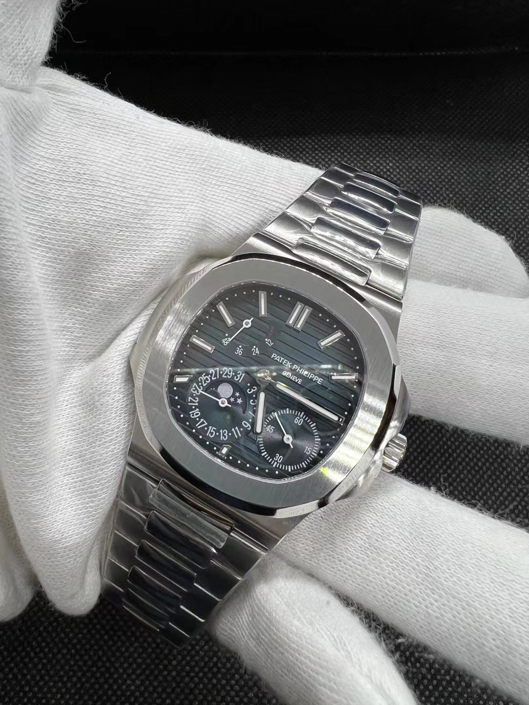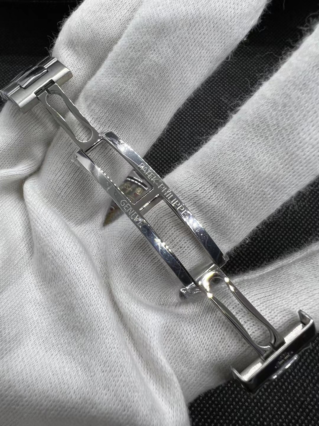 这款手表是AAAAA 1:1 质量 (非常棒). 使用了和原版一模一样的材料. 商标部分也保持了和百达翡丽/Patek Philippe一样. 图片拍摄是实物手表拍摄, 您所收到的实物保证和我们图片一模一样.
